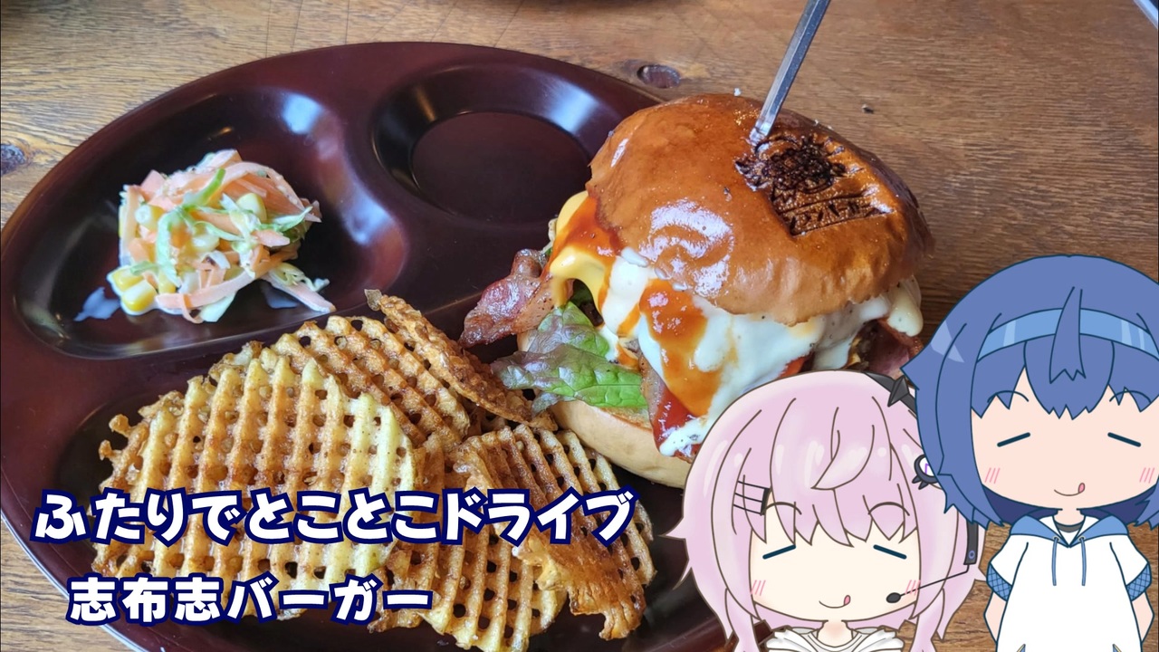 フィーちゃんと一緒に、志布志までドライブをしてきました。<br> せっかくなので、フィーちゃんオススメのハンバーガー屋さんでご飯を食べることにしました。<br><br><strong>■志布志バーガー</strong><br> 〒899-7102 鹿児島県志布志市志布志町帖6617−17<br> <a href="https://maps.app.goo.gl/nRzdKFGKr34raZKt8" target="_blank" rel="noopener nofollow">https://maps.app.goo.gl/nRzdKFGKr34raZKt8</a><br> <a href="https://www.instagram.com/shibushi_burger/" target="_blank" rel="noopener nofollow">https://www.instagram.com/shibushi_burger/</a><br> 志布志の海岸線にあるハンバーガー屋さんです。建物の外観がハンバーガーになっていて可愛いです。<br> その可愛さとは対照的に、頂けるハンバーガーは本格的です。<br> どれもボリューム満点で、ジューシー。満足度がとても高いハンバーガーです。<br><br>■BGM 森の踊り <a href="https://commons.nicovideo.jp/works/nc148115" target="_blank" rel="noopener">nc148115</a> <br>■立ち絵 すずきつづみ(自作) <a href="https://seiga.nicovideo.jp/seiga/im11033880" target="_blank" rel="noopener">im11033880</a>、フィーちゃん(自作) <a href="https://seiga.nicovideo.jp/seiga/im11348399" target="_blank" rel="noopener">im11348399</a><br>■音声 CeVIO すずきつづみ、©︎U-Stella Inc. フィーちゃん CV:今井麻夏<br />■車載動画 <a href="https://www.nicovideo.jp/series/5592" target="_blank" rel="noopener">series/5592</a><br> 番外編 <a href="https://www.nicovideo.jp/series/403721" target="_blank" rel="noopener">series/403721</a><br>■ユーザページ <a href="https://www.nicovideo.jp/user/347413" target="_blank" rel="noopener">user/347413</a>