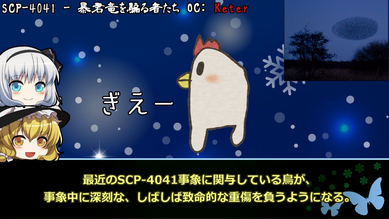 最近テーマがめんどくさくなってきてないか?<br><br>【SCP】<br>タイトル: SCP-6058 - クローニングマシン<br>原語版タイトル: SCP-6058 - Cloning Machine<br>訳者: MikuKaneko<br>原語版作者: stoner99<br>ソース: <a href="http://scp-jp.wikidot.com/scp-6058" target="_blank" rel="noopener nofollow">http://scp-jp.wikidot.com/scp-6058</a><br>原語版ソース: <a href="http://scp-wiki.wikidot.com/scp-6058" target="_blank" rel="noopener nofollow">http://scp-wiki.wikidot.com/scp-6058</a><br>ライセンス: CC BY-SA 3.0<br><br>タイトル: SCP-4041 - 暴君竜を騙る者たち<br>原語版タイトル: SCP-4041 - Impostors of the Tyrant Lizard King<br>訳者: C-Dives<br>原語版作者: Weryllium<br>ソース: <a href="http://scp-jp.wikidot.com/scp-4041" target="_blank" rel="noopener nofollow">http://scp-jp.wikidot.com/scp-4041</a><br>原語版ソース: <a href="http://scp-wiki.wikidot.com/scp-4041" target="_blank" rel="noopener nofollow">http://scp-wiki.wikidot.com/scp-4041</a><br>ライセンス: CC BY-SA 3.0<br><br>この動画のSCP財団からの引用はすべてCC BY-SA 3.0に基づきます。<br><br>東方project 上海アリス幻樂団 様<br><br>動画 <a href="https://www.nicovideo.jp/watch/sm40465457" target="_blank" rel="noopener nofollow">https://www.nicovideo.jp/watch/sm40465457</a><br>動画 <a href="https://www.nicovideo.jp/watch/sm40499092" target="_blank" rel="noopener nofollow">https://www.nicovideo.jp/watch/sm40499092</a>