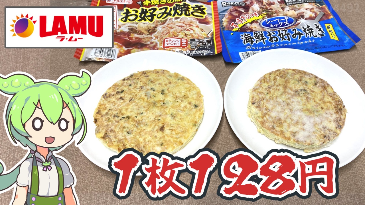 ラ・ムーのプライベートブランド、D-PRICEから冷凍お好み焼きの紹介です。 <br>今回の目玉はなんと言っても1枚128円という激安価格 <br>果たしてどんなお好み焼きなんでしょうか。 <br><br><br>【前回のラ・ムー動画】<br> ラ・ムーのD-PRICE「岡山名物 えびめし(184円)」2024.11.13<br><a href="https://www.nicovideo.jp/watch/sm44314299" target="_blank" rel="noopener nofollow">https://www.nicovideo.jp/watch/sm44314299</a><br>ラ・ムーの「クロワッサンたいやき 3個入り(298円)」2024.11.08<br><a href="https://www.nicovideo.jp/watch/sm44292573" target="_blank" rel="noopener nofollow">https://www.nicovideo.jp/watch/sm44292573</a><br><br>【参考】 <br>大黒天物産株式会社 <br><a href="https://www.e-dkt.co.jp/" target="_blank" rel="noopener nofollow">https://www.e-dkt.co.jp/</a> <br>だしが決め手のお好みソース(トップバリュ) <br><a href="https://www.topvalu.net/items/detail/4549741805568/" target="_blank" rel="noopener nofollow">https://www.topvalu.net/items/detail/4549741805568/</a> <br>味の素株式会社 公式X 2024.11.25 <br><a href="https://x.com/ajinomoto/status/1860821990908780961" target="_blank" rel="noopener nofollow">https://x.com/ajinomoto/status/1860821990908780961</a><br><br>【使用した素材】(※敬称略) <br>(合成音声)VOICEVOX/ずんだもん/四国めたん <br><a href="https://voicevox.hiroshiba.jp/" target="_blank" rel="noopener nofollow">https://voicevox.hiroshiba.jp/</a> <br>(立ち絵)坂本アヒル <br><a href="https://seiga.nicovideo.jp/seiga/im10788496?track" target="_blank" rel="noopener nofollow">https://seiga.nicovideo.jp/seiga/im10788496?track</a> <br>(楽曲)甘茶の音楽工房/「楽しい麦畑」「フルーツパフェ」「お城の舞踏会」 <br><a href="https://amachamusic.chagasi.co" target="_blank" rel="noopener nofollow">https://amachamusic.chagasi.co</a>