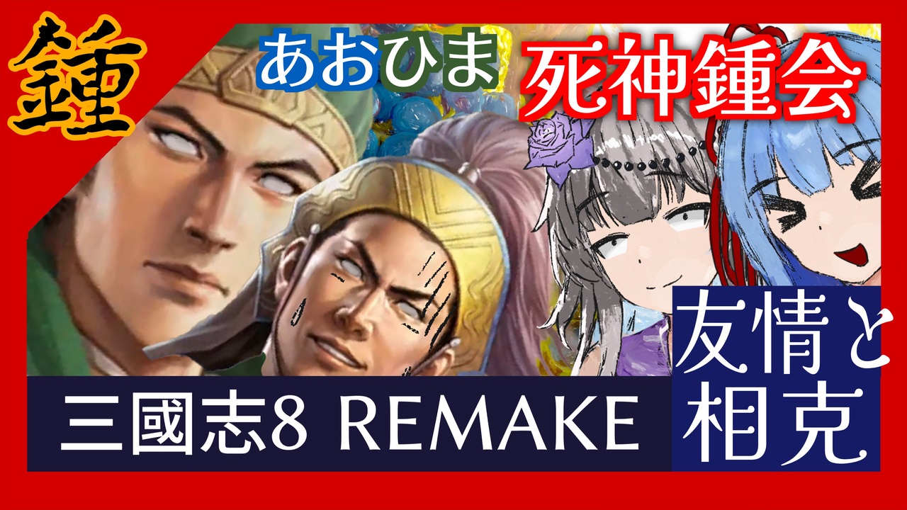 プレイヤーの葵ちゃんと冥鳴ひまりに駆り立てられて、死者の軍団を編成すべく三國志8 REMAKEの世界に死神の将軍として降り立った鍾会は、ゲームの仕様により姜維との死闘を強いられる。<br><br>前回動画→ <a href="https://www.nicovideo.jp/watch/sm44379910" class="watch">sm44379910</a><br>出演:<br> A.I.VOICE: 琴葉葵<br> VOICEVOX:冥鳴ひまり VOICEVOX Nemo(男声2, 男声3) VOICEVOX:麒ヶ島宗麟<br> CeVIO AI: すずきつづみ<br> VOICEPEAK: 宮舞モカ<br> Synthesizer V: 宮舞モカ AI<br><br>---<br>三國志8 REMAKE / ©コーエーテクモゲームス, 2024;<br> <a href="https://store.steampowered.com/app/2288150/8__REMAKE/" target="_blank" rel="noopener nofollow">https://store.steampowered.com/app/2288150/8__REMAKE/</a><br>天下無山-2.jpg / Joe, CC-BY-3.0; <br> <a href="https://commons.wikimedia.org/wiki/File:%E5%A4%A9%E4%B8%8B%E7%84%A1%E5%B1%B1-2.jpg" target="_blank" rel="noopener nofollow">https://commons.wikimedia.org/wiki/File:%E5%A4%A9%E4%B8%8B%E7%84%A1%E5%B1%B1-2.jpg</a><br>開始年: 263年<br>寿命: 長寿<br><br>YouTube版: <a href="https://youtu.be/JkdVLguBQoQ" target="_blank" rel="noopener nofollow">https://youtu.be/JkdVLguBQoQ</a><br><br><a target="_blank" href="https://qa.nicovideo.jp/faq/show/19424?site_domain=default" style="font-size: 13px;color: #657586; text-decoration: underline; line-height: 1.4">この動画は投稿者によって修正されました</a>