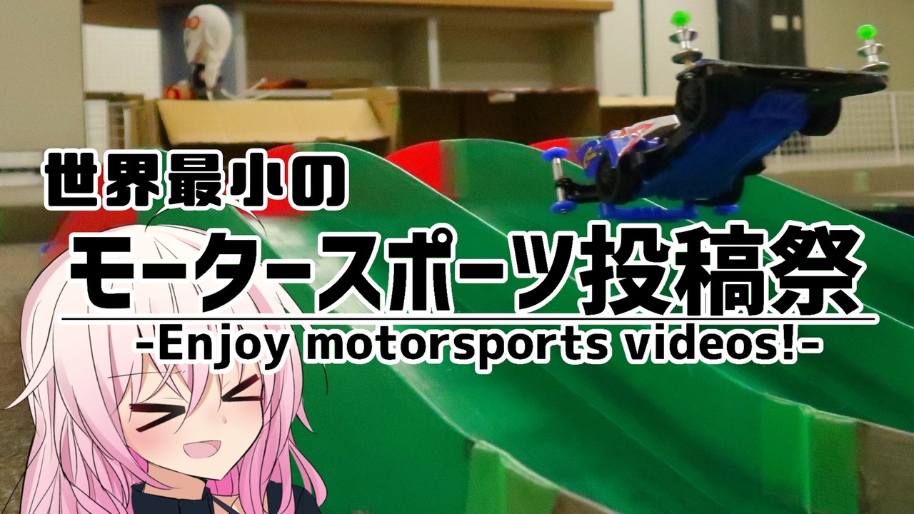 <span style="font-size: 16px;"><strong>「走らせてきた」は「走ってきた」でいいのか問題</strong></span><br>モータースポーツ投稿祭「走ってきたぜ」クラスにエントリーします。<br><br>車両製作から走行、コースに合わせたセッティングまで<br>手のひらサイズに収まる「世界最小のモータースポーツ」とも言われるミニ四駆。<br>ニコニコにはあの赤青の兄弟を思い出す方が多いと思いますが<br>今はあのころとは比べ物にならないくらい進化してきていたようです。<br><span style="font-size: 10px;">これは子供よか大人の方が熱中するわ…。</span><br><br>大会主催のユッケさん(<a href="https://www.nicovideo.jp/user/9008374" target="_blank" rel="noopener">user/9008374</a>)に多大な感謝を。<br><br>ボディの葵ちゃんは六炉ロロさんの立ち絵をお借りしました。<br>この場を借りてお礼申し上げます。<br><a href="https://seiga.nicovideo.jp/seiga/im11433247" target="_blank" rel="noopener nofollow">https://seiga.nicovideo.jp/seiga/im11433247</a><br><br><br>マイリス:<a href="https://www.nicovideo.jp/mylist/72933318" target="_blank" rel="noopener">mylist/72933318</a><br><br>動画の事とかしゃべってるTwitter<br><a href="https://twitter.com/nito_pvt" target="_blank" rel="noopener nofollow">https://twitter.com/nito_pvt</a>