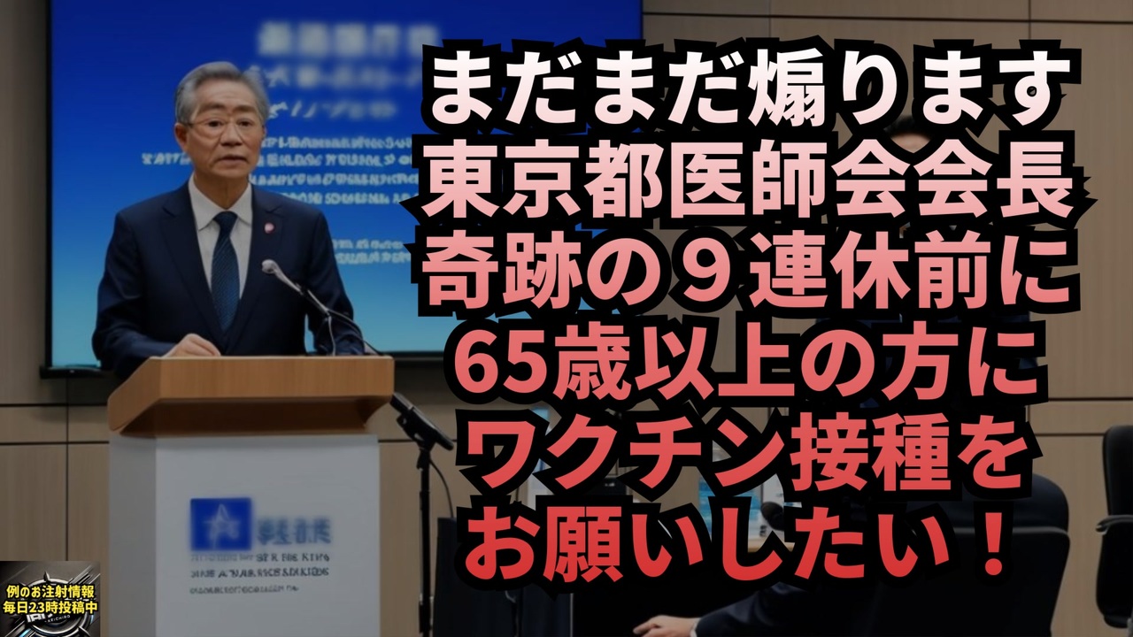 またコロナ流行を煽る!<br><br>そしてまだ、ワクチンを打たせようとする!<br><br>東京都医師会 “奇跡の9連休” でコロナ流行懸念「65歳以上の方にワクチン接種をお願いしたい」<br><br>記事<br><a href="https://x.gd/NcpdU" target="_blank" rel="noopener nofollow">https://x.gd/NcpdU</a><br><br>X(旧Twitter)<br><a href="https://x.gd/M47eS" target="_blank" rel="noopener nofollow">https://x.gd/M47eS</a><br><br><br>季節性インフルエンザ<br>重症化率0.08%<br>死亡率 0.09%<br>新型コロナウイルス<br>重症化率0.03%<br>死亡率 0.06%<br><a href="https://t.co/TPMlJcLfCa" target="_blank" rel="noopener nofollow">https://t.co/TPMlJcLfCa</a><br><br><br>打てば打つほど、感染拡大するワクチン<br>打てば打つほど重症化するコロナワクチン(mRNA)<br><a href="https://x.gd/SiKnA" target="_blank" rel="noopener nofollow">https://x.gd/SiKnA</a><br><br><br>南出賢一市長(大阪府泉大津市)<br>インフルエンザワクチン<br>1億8000万回打って、これまで死亡認定されたのは4名ですね。2012年から2021年と<br><br>新型コロナワクチン<br>1億9000万回打って死亡認定された65歳以上の数字は527名<br>これでも氷山の一角ですよね?桁が違うと思います。 <br><a href="https://t.co/zt7phrHmha" target="_blank" rel="noopener nofollow">https://t.co/zt7phrHmha</a><br><br><br>東京都医師会<br>南出市長<br>コロナワクチン<br>インフルエンザワクチン<br>ワクチン<br>新型コロナウイルス<br>65歳以上<br>ワクチン接種<br>インフルエンザ<br>死亡認定<br>mRNAワクチン<br><br><br>マイリンク<a href="https://lit.link/keiichiro8140" target="_blank" rel="noopener nofollow">https://lit.link/keiichiro8140</a><br><br><br />著作権、肖像権に配慮して作成しております。<br><br>◆気になったニュースの台本!?<br>メモ代わりに作った台本をそのままあげてます<br><a href="https://keiichiro8140.hatenablog.com/." target="_blank" rel="noopener nofollow">https://keiichiro8140.hatenablog.com/.</a><br><br><br>ここからはシリーズ紹介<br><br><br>◆ ワクチン解毒・デトックス<br><a href="https://x.gd/fZweg" target="_blank" rel="noopener nofollow">https://x.gd/fZweg</a><br><br>◆ウイリアム・マキス博士のがん治療(イベルメクチン・フェンベンダゾール等)<br><a href="https://x.gd/AtFYS" target="_blank" rel="noopener nofollow">https://x.gd/AtFYS</a><br><br>◆予防接種健康被害救済制度<br><a href="https://x.gd/0xK9x" target="_blank" rel="noopener nofollow">https://x.gd/0xK9x</a><br><br>◆気になったニュース #1501~<br><br>◆ 【ショートver】気になったニュース<br><a href="https://x.gd/7MxXC" target="_blank" rel="noopener nofollow">https://x.gd/7MxXC</a><br><br>◆ 気になったニュース #1001~<br><a href="https://x.gd/Lp8gv" target="_blank" rel="noopener nofollow">https://x.gd/Lp8gv</a><br><br>◆ 気になったニュース #501~<br><a href="https://x.gd/EmbS4" target="_blank" rel="noopener nofollow">https://x.gd/EmbS4</a><br><br>◆ 気になったニュース #1~#500<br><a href="https://x.gd/uPhNb" target="_blank" rel="noopener nofollow">https://x.gd/uPhNb</a><br><br>◆ X(旧Twitter)・テレグラムで気になった情報<br><a href="https://x.gd/YG6FT" target="_blank" rel="noopener nofollow">https://x.gd/YG6FT</a><br><br>◆ 日比谷5万人パレードデ⚪生放送アーカイブ動画<br><a href="https://x.gd/3CHJv" target="_blank" rel="noopener nofollow">https://x.gd/3CHJv</a><br><br>◆日比谷5万人パレード⚪モのマイリスト作ってみました<br><a href="https://nico.ms/mylist/76828848?ref=sp_other" target="_blank" rel="noopener nofollow">https://nico.ms/mylist/76828848?ref=sp_other</a><br><br>◆3.30 令和の百姓⚪⚪<br><a href="https://www.nicovideo.jp/series/511791?ref=garage_share_other" target="_blank" rel="noopener nofollow">https://www.nicovideo.jp/series/511791?ref=garage_share_other</a><br><br>◆ 及川幸久さんの【XNEWS】シリーズ<br><a href="https://x.gd/3k78K" target="_blank" rel="noopener nofollow">https://x.gd/3k78K</a><br><br>◆これまでの動画<a href="https://x.gd/sPXoJ" target="_blank" rel="noopener nofollow">https://x.gd/sPXoJ</a><br><br>◆もしも(BAN)の時のためのマイリンク集<a href="https://lit.link/K-16_News44" target="_blank" rel="noopener nofollow">https://lit.link/K-16_News44</a><br><br>