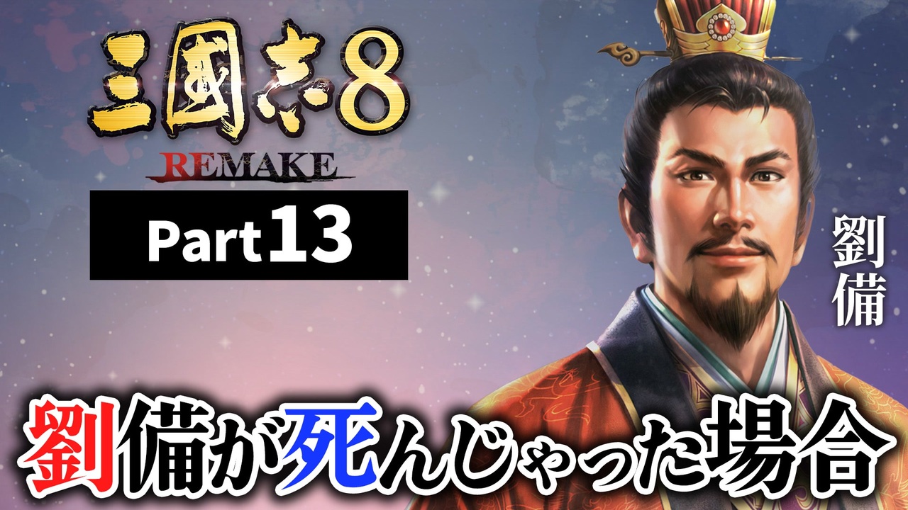 あらすじ茶番をスキップ➡ <a href="#" class="seekTime" data-seekTime="7:20" onclick="seekNicoPlayer('#7:20'); return false;">#7:20</a><br>次:新章part1 ▶<a href="https://www.nicovideo.jp/watch/sm44425922" class="watch">sm44425922</a><br>前:part12 ▶ <a href="https://www.nicovideo.jp/watch/sm44412989" class="watch">sm44412989</a><br>最初:先行part1▶<a href="https://www.nicovideo.jp/watch/sm44223701" class="watch">sm44223701</a><br><br>※あれ、投稿が遅いぞと感じられた方は、<br>下記にあるアシェのXにて報告をしていますので、<br>そちらをご確認ください。<br>――――――――――――――――――――――――――――――――――――――<br>千の武将の無限のドラマ。 <br>歴史シミュレーションゲーム『三國志Ⅷ』が20年の時を超えて、今甦る。<br>君主をはじめ、すべての武将を主人公に三国志の世界を楽しめる「全武将プレイ」が、より進化して登場! <br>武将同士の因縁により劇的に展開が変わる「宿命」や、多彩な物語や展開を選んで楽しむ「演義伝」、スピーディかつより奥深く生まれ変わった戦闘など、武将の人間性を描く追加要素も満載。<br>2Dと3Dの技術が融合した懐かしくも新しいビジュアル表現と、本作用に多数描き下ろされた武将グラフィックにより、新鮮な感覚でプレイが楽しめます。 <br>最多の登場武将とシナリオ数で描く「三國志」シリーズ最高の武将ドラマがここに。<br><br><br><『三國志8 REMAKE』製品情報> <br>対応ハード :PlayStation®5/PlayStation®4/Nintendo Switch™/Windows®(Steam®) <br>発売日 :2024年10月24日 <br>ジャンル :歴史シミュレーションゲーム <br>公式サイト <a href="https://www.gamecity.ne.jp/sangokushi8-re/" target="_blank" rel="noopener nofollow">https://www.gamecity.ne.jp/sangokushi8-re/</a><br><br> ©2001-2024 コーエーテクモゲームス All rights reserved.<br>――――――――――――――――――――――――――――――――――――――<br>⚒️ 使用アプリ・ツール <br>⚒️ゆっくりムービーメーカー4<br>――――――――――――――――――――――――――――――――――――――<br>□ SNS □<br>▶ X(アシェ):<a href="https://twitter.com/AcierRoi" target="_blank" rel="noopener nofollow">https://twitter.com/AcierRoi</a><br>▶ X(レシル):<a href="https://twitter.com/reciru/――――――――――――――――――――――――――――――――――――――" target="_blank" rel="noopener nofollow">https://twitter.com/reciru/――――――――――――――――――――――――――――――――――――――</a><br>#三國志 #三国志 #三國志8リメイク