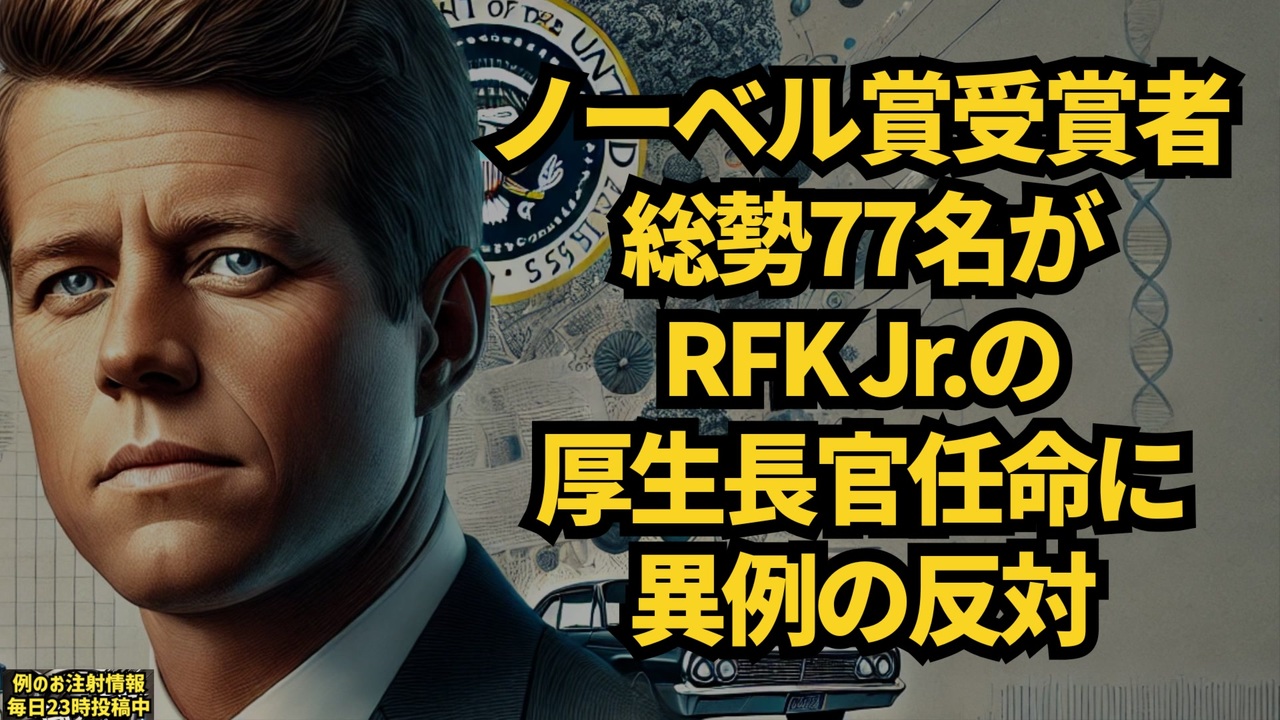 知らない方の為に投げておきます<br>経済産業省は、燃料油価格の激変を緩和するために実施していたガソリンや軽油、灯油などへの補助金について、令和6年12月19日以降、段階的に補助率を引き下げる方針を発表しました<br>状況を見ながらの対応となります<br><a href="https://t.co/pcabBHubf1" target="_blank" rel="noopener nofollow">https://t.co/pcabBHubf1</a><br><br><br>75 人以上のノーベル賞受賞者が、R.F. ケネディJr を保健福祉省長官として承認しないよう上院議員に求める書簡に署名をした<br><br>ノーベル賞受賞者が集まって閣僚の選出に反対するのは史上初<br><br>Alex Jones『6つの戦争を始めて平和賞を受賞したオバマもその一人か?ノーベル賞を受賞するという事は死のカルトのお墨付きだ』<br><a href="https://x.gd/lC2ff" target="_blank" rel="noopener nofollow">https://x.gd/lC2ff</a><br><br><br>「ノーベル賞受賞者77人が、RFKJrの厚生長官への承認に反対するよう上院に求める書簡に著名した」という記事。<br><a href="https://x.gd/DIWWT" target="_blank" rel="noopener nofollow">https://x.gd/DIWWT</a><br><br>ノーベル賞の権威を守る目的もあるだろうが、ほとんどは「mRNAワクチンは良いもの」と思い込んでいるのだろう。<br>医学洗脳が社会に深く根を張っている証拠である。<br><a href="https://x.gd/QPXQ0" target="_blank" rel="noopener nofollow">https://x.gd/QPXQ0</a><br><br><br>ノーベル平和賞受賞者75人。ケネディがHSSの長官になるのに反対書簡を上院議員に出した。<br><br>コメントー日本でもそうであったがノーベル平和賞受賞者らが新型コロナワクチンを奨励した結果多くが死んだ。<br><br>ノーベル平和賞受賞者75人は自分達が無能であり、生物兵器を医薬と勘違いして人類に前例のない被害を出したことを自ら認めたくないよう。ケネディが色々暴露するのを恐れているのが明白である。<br><br>政治活動にでていることにより逆に恥をさらしているように見える。現実を認めたくないという非科学と政治による隠蔽を望んでいるからである。またエリート科学者らが利権団体である側面が浮彫になった。所詮は研究費を貰う補助金ビジネスなのかな?そしてアイドルを作り偶像崇拝で儲ける。<br><a href="https://x.gd/jedFV" target="_blank" rel="noopener nofollow">https://x.gd/jedFV</a><br><br><br>厚生長官のケネディ指名に反対するノーベル賞受賞者のリスト(2024年12月9日)と、2020年5月21日にDaszakの助成金停止に反対した77名のノーベル賞受賞者のリストを比較したもの。<br><br>両者では49人(緑色)が共通する。 <a href="https://t.co/RwuczPluQI" target="_blank" rel="noopener nofollow">https://t.co/RwuczPluQI</a><br><br><br>マイリンク<a href="https://lit.link/keiichiro8140" target="_blank" rel="noopener nofollow">https://lit.link/keiichiro8140</a><br><br><br><br />著作権、肖像権に配慮して作成しております。<br><br>◆気になったニュースの台本!?<br>メモ代わりに作った台本をそのままあげてます<br><a href="https://keiichiro8140.hatenablog.com/." target="_blank" rel="noopener nofollow">https://keiichiro8140.hatenablog.com/.</a><br><br><br>ここからはシリーズ紹介<br><br><br>◆ ワクチン解毒・デトックス<br><a href="https://x.gd/fZweg" target="_blank" rel="noopener nofollow">https://x.gd/fZweg</a><br><br>◆ウイリアム・マキス博士のがん治療(イベルメクチン・フェンベンダゾール等)<br><a href="https://x.gd/AtFYS" target="_blank" rel="noopener nofollow">https://x.gd/AtFYS</a><br><br>◆予防接種健康被害救済制度<br><a href="https://x.gd/0xK9x" target="_blank" rel="noopener nofollow">https://x.gd/0xK9x</a><br><br>◆気になったニュース #1501~<br><br>◆ 【ショートver】気になったニュース<br><a href="https://x.gd/7MxXC" target="_blank" rel="noopener nofollow">https://x.gd/7MxXC</a><br><br>◆ 気になったニュース #1001~<br><a href="https://x.gd/Lp8gv" target="_blank" rel="noopener nofollow">https://x.gd/Lp8gv</a><br><br>◆ 気になったニュース #501~<br><a href="https://x.gd/EmbS4" target="_blank" rel="noopener nofollow">https://x.gd/EmbS4</a><br><br>◆ 気になったニュース #1~#500<br><a href="https://x.gd/uPhNb" target="_blank" rel="noopener nofollow">https://x.gd/uPhNb</a><br><br>◆ X(旧Twitter)・テレグラムで気になった情報<br><a href="https://x.gd/YG6FT" target="_blank" rel="noopener nofollow">https://x.gd/YG6FT</a><br><br>◆ 日比谷5万人パレードデ⚪生放送アーカイブ動画<br><a href="https://x.gd/3CHJv" target="_blank" rel="noopener nofollow">https://x.gd/3CHJv</a><br><br>◆日比谷5万人パレード⚪モのマイリスト作ってみました<br><a href="https://nico.ms/mylist/76828848?ref=sp_other" target="_blank" rel="noopener nofollow">https://nico.ms/mylist/76828848?ref=sp_other</a><br><br>◆3.30 令和の百姓⚪⚪<br><a href="https://www.nicovideo.jp/series/511791?ref=garage_share_other" target="_blank" rel="noopener nofollow">https://www.nicovideo.jp/series/511791?ref=garage_share_other</a><br><br>◆ 及川幸久さんの【XNEWS】シリーズ<br><a href="https://x.gd/3k78K" target="_blank" rel="noopener nofollow">https://x.gd/3k78K</a><br><br>◆これまでの動画<a href="https://x.gd/sPXoJ" target="_blank" rel="noopener nofollow">https://x.gd/sPXoJ</a><br><br>◆もしも(BAN)の時のためのマイリンク集<a href="https://lit.link/K-16_News44" target="_blank" rel="noopener nofollow">https://lit.link/K-16_News44</a><br><br>