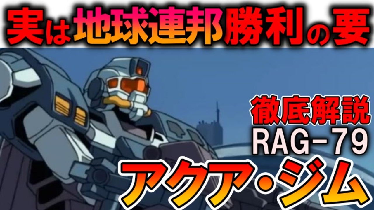 【ズゴックなんて敵じゃない!】RAG-79アクア・ジム。連邦の水陸両用MSがジオンの傑作機たちに勝てた理由を徹底解説【機動戦士ガンダム】<br><br>機動戦士ガンダムMSVなどに登場するMS、RAG-79アクア・ジムを解説、考察していきます。 <br>今回は解説と考察が同じくらいです。<br><br>※大変申し訳ありません。MS全集2の68ページを再確認したところ動画内の『電撃戦』は間違いで、『雷撃戦』が正しい表記でした。<br>以後、気をつけますm(_ _)m<br><br>いいねに次回予告的なものも。<br><br>そう言えばやってなかったことに気づいたので急遽アクアジム解説になりました。<br>改めて調べ直すと新しい発見がいっぱいで、動画作りながらなるほどーとなって楽しかったです。<br>水中用ガンダムもいつか・・・。<br><br>現在連載中の小説はこちら:<br>異世界アイドル革命!死に戻り悪役令嬢は閃いた『こいつら全員アイドルにしてしまおう!』<br><a href="https://kakuyomu.jp/works/16817330662598051943" target="_blank" rel="noopener nofollow">https://kakuyomu.jp/works/16817330662598051943</a><br><br>質問、などありましたらこちらにも<br><a href="https://twitter.com/@i4S0LHspdgzBTor" target="_blank" rel="noopener nofollow">https://twitter.com/@i4S0LHspdgzBTor</a><br><br>清見元康名義でカクヨム、小説家になろう、たいあっぷなどに投稿しています。<br>もし良ければ応援お願いしますm(_ _)m<br><a href="https://kakuyomu.jp/users/GariD/works" target="_blank" rel="noopener nofollow">https://kakuyomu.jp/users/GariD/works</a><br><br>以前の作品(短編シリアス):<br>転生した厄災の大魔女はやがて聖女と呼ばれる<br><a href="https://ncode.syosetu.com/n0827ha/" target="_blank" rel="noopener nofollow">https://ncode.syosetu.com/n0827ha/</a><br><br>A.I.VOICE:結月ゆかり<br>VOICEVOX:ずんだもん<br><br>使用させていただいたずんだもん:<br>ずんだもん mini Deluxe(立ち絵) ver1.2<br><a href="https://seiga.nicovideo.jp/seiga/im10794509" target="_blank" rel="noopener nofollow">https://seiga.nicovideo.jp/seiga/im10794509</a><br><br>いつも広告、コメントありがとうございます。<br>励みになりますm(_ _)m<br>