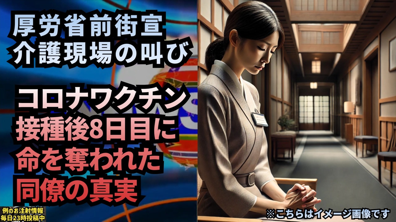 ファイザー<br>逆から読むと「Rezifp」となり、ヘブライ語に由来し、レシェフまたはバーナー、疫病と冥界の神を意味します。<br>偶然など何もありません。 <a href="https://t.co/OOmN4VrFxk" target="_blank" rel="noopener nofollow">https://t.co/OOmN4VrFxk</a><br><br><br>わたしはコロナ禍で福祉施設に勤めていました。ウイルスが怖くて、無症状感染で利用者を危険にさらす恐怖から、みんなワクチンを打ちました。<br>わたしの同僚も最後まで悩みましたが、「ウイルスを持ち込んで利用者を死なせる方が嫌だ」と接種を決断。<br>彼女は接種後「体調が悪い」と毎日連絡をくれていましたが、2回目接種から8日目、電話が途絶えました。<br>同僚が確認すると彼女は倒れており、救命措置も虚しく亡くなりました。<br><br>彼女はこう言っていました。「もしわたしがワクチンで死んだら、その危険性をみんなに知ってほしい」と。<br>彼女の家族は悲しみで心を閉ざし、救済認定申請も叶わず、誰も責任を取ってくれません。<br><br>「思いやりワクチン」と宣伝され、厚労省もテレビも「打つべき」と言いましたが、この結果をどう思っていますか?彼女の命を返してください!<br><br>福祉や医療に携わる者がどれほど利用者の命を守るために努力してきたか、知っていますか?優しい同僚を奪ったワクチンを、今すぐやめてください!<br><br>厚労省前街宣・福祉施設の女性<br><a href="https://x.com/kazu_uracorona/status/1867815335161999370?t=q5zAVmE_R5Mnhr-jpG9ckQ&s=19" target="_blank" rel="noopener nofollow">https://x.com/kazu_uracorona/status/1867815335161999370?t=q5zAVmE_R5Mnhr-jpG9ckQ&s=19</a><br><br><br>接種後8日目に命を奪われた同僚の真実 厚労省が無視する福祉現場の叫び<br><br><br>マイリンク<a href="https://lit.link/keiichiro8140" target="_blank" rel="noopener nofollow">https://lit.link/keiichiro8140</a><br><br><br />著作権、肖像権に配慮して作成しております。<br><br>◆気になったニュースの台本!?<br>メモ代わりに作った台本をそのままあげてます<br><a href="https://keiichiro8140.hatenablog.com/." target="_blank" rel="noopener nofollow">https://keiichiro8140.hatenablog.com/.</a><br><br><br>ここからはシリーズ紹介<br><br><br>◆ ワクチン解毒・デトックス<br><a href="https://x.gd/fZweg" target="_blank" rel="noopener nofollow">https://x.gd/fZweg</a><br><br>◆ウイリアム・マキス博士のがん治療(イベルメクチン・フェンベンダゾール等)<br><a href="https://x.gd/AtFYS" target="_blank" rel="noopener nofollow">https://x.gd/AtFYS</a><br><br>◆予防接種健康被害救済制度<br><a href="https://x.gd/0xK9x" target="_blank" rel="noopener nofollow">https://x.gd/0xK9x</a><br><br>◆気になったニュース #1501~<br><br>◆ 【ショートver】気になったニュース<br><a href="https://x.gd/7MxXC" target="_blank" rel="noopener nofollow">https://x.gd/7MxXC</a><br><br>◆ 気になったニュース #1001~<br><a href="https://x.gd/Lp8gv" target="_blank" rel="noopener nofollow">https://x.gd/Lp8gv</a><br><br>◆ 気になったニュース #501~<br><a href="https://x.gd/EmbS4" target="_blank" rel="noopener nofollow">https://x.gd/EmbS4</a><br><br>◆ 気になったニュース #1~#500<br><a href="https://x.gd/uPhNb" target="_blank" rel="noopener nofollow">https://x.gd/uPhNb</a><br><br>◆ X(旧Twitter)・テレグラムで気になった情報<br><a href="https://x.gd/YG6FT" target="_blank" rel="noopener nofollow">https://x.gd/YG6FT</a><br><br>◆ 日比谷5万人パレードデ⚪生放送アーカイブ動画<br><a href="https://x.gd/3CHJv" target="_blank" rel="noopener nofollow">https://x.gd/3CHJv</a><br><br>◆日比谷5万人パレード⚪モのマイリスト作ってみました<br><a href="https://nico.ms/mylist/76828848?ref=sp_other" target="_blank" rel="noopener nofollow">https://nico.ms/mylist/76828848?ref=sp_other</a><br><br>◆3.30 令和の百姓⚪⚪<br><a href="https://www.nicovideo.jp/series/511791?ref=garage_share_other" target="_blank" rel="noopener nofollow">https://www.nicovideo.jp/series/511791?ref=garage_share_other</a><br><br>◆ 及川幸久さんの【XNEWS】シリーズ<br><a href="https://x.gd/3k78K" target="_blank" rel="noopener nofollow">https://x.gd/3k78K</a><br><br>◆これまでの動画<a href="https://x.gd/sPXoJ" target="_blank" rel="noopener nofollow">https://x.gd/sPXoJ</a><br><br>◆もしも(BAN)の時のためのマイリンク集<a href="https://lit.link/K-16_News44" target="_blank" rel="noopener nofollow">https://lit.link/K-16_News44</a><br><br>