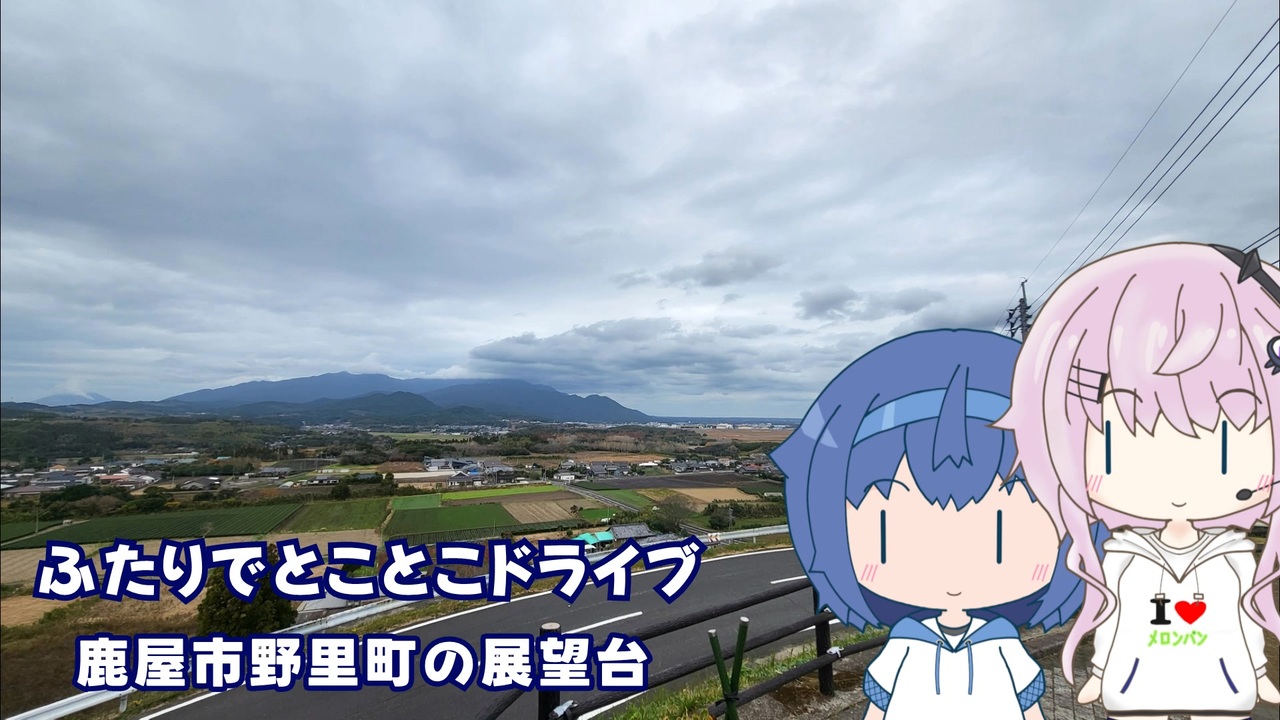 フィーちゃんと一緒に、志布志までドライブをしてきた帰りに、少し寄り道をしてきました。<br><br><strong>■野里町の展望台</strong><br> 〒893-0055 鹿児島県鹿屋市野里町3535<br> <a href="https://maps.app.goo.gl/HMGh5tFedoUknoDG6" target="_blank" rel="noopener nofollow">https://maps.app.goo.gl/HMGh5tFedoUknoDG6</a> <br> 鹿屋航空基地からばら園に向かう坂の途中にある展望台です。眺望が良いと聞いていて、以前から行ってみたいと思っていたんですよね。<br> 飛行機の離着陸も見えて、なかなか面白かったです。<br><br>■BGM 森の踊り <a href="https://commons.nicovideo.jp/works/nc148115" target="_blank" rel="noopener">nc148115</a> <br>■立ち絵 すずきつづみ(自作) <a href="https://seiga.nicovideo.jp/seiga/im11033880" target="_blank" rel="noopener">im11033880</a> フィーちゃん(自作) <a href="https://seiga.nicovideo.jp/seiga/im11348399" target="_blank" rel="noopener">im11348399</a><br>■音声 CeVIO すずきつづみ、©︎U-Stella Inc. フィーちゃん CV:今井麻夏<br />■車載動画 <a href="https://www.nicovideo.jp/series/5592" target="_blank" rel="noopener">series/5592</a><br> 番外編 <a href="https://www.nicovideo.jp/series/403721" target="_blank" rel="noopener">series/403721</a><br>■ユーザページ <a href="https://www.nicovideo.jp/user/347413" target="_blank" rel="noopener">user/347413</a>
