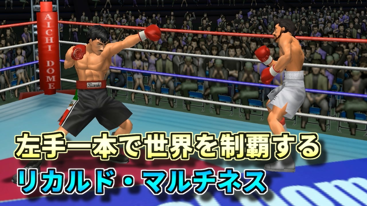 左を制する者は世界を制す。をAIリカルドに実演してもらいました。<br>と言ってもAIなので物理的に右腕を封印してみました。<br>これまでの流れで言うと改造された方が負けるので、伊達さん勝ちフラグ?<br><br>1戦目は、右腕封印リカルド・マルチネス VS 伊達英二<br>2戦目は、左腕封印リカルド・マルチネス VS 伊達英二<br>になります。<br><br>動画内で改造されている内容<br>・腕の長さ0cm<br />動画に「いいね!」「マイリスト登録」よろしくお願いします。<br><br>・おすすめ<br>[TAS]Grand Theft Auto 3 Part1→<a href="https://www.nicovideo.jp/watch/sm14718961" class="watch">sm14718961</a><br>[TAS]MaxPayne デッドターゲット Part1→<a href="https://www.nicovideo.jp/watch/sm15093299" class="watch">sm15093299</a><br>[TAS]michigan Part1→<a href="https://www.nicovideo.jp/watch/sm18393230" class="watch">sm18393230</a><br><br>サポート頂けると励みになります<br>魔界塔士のサポーターになる→<a href="https://creator-support.nicovideo.jp/registration/15153622" target="_blank" rel="noopener nofollow">https://creator-support.nicovideo.jp/registration/15153622</a><br><br>TAS動画まとめ→<a href="https://koeiprogenitor.com/tas/matome/" target="_blank" rel="noopener nofollow">https://koeiprogenitor.com/tas/matome/</a><br>つべ→<a href="https://www.youtube.com/user/koeiprogenitor1/" target="_blank" rel="noopener nofollow">https://www.youtube.com/user/koeiprogenitor1/</a><br>インスタ→<a href="https://www.instagram.com/makaitoshi" target="_blank" rel="noopener nofollow">https://www.instagram.com/makaitoshi</a><br><br>本編→シリーズ一覧見てね<br>