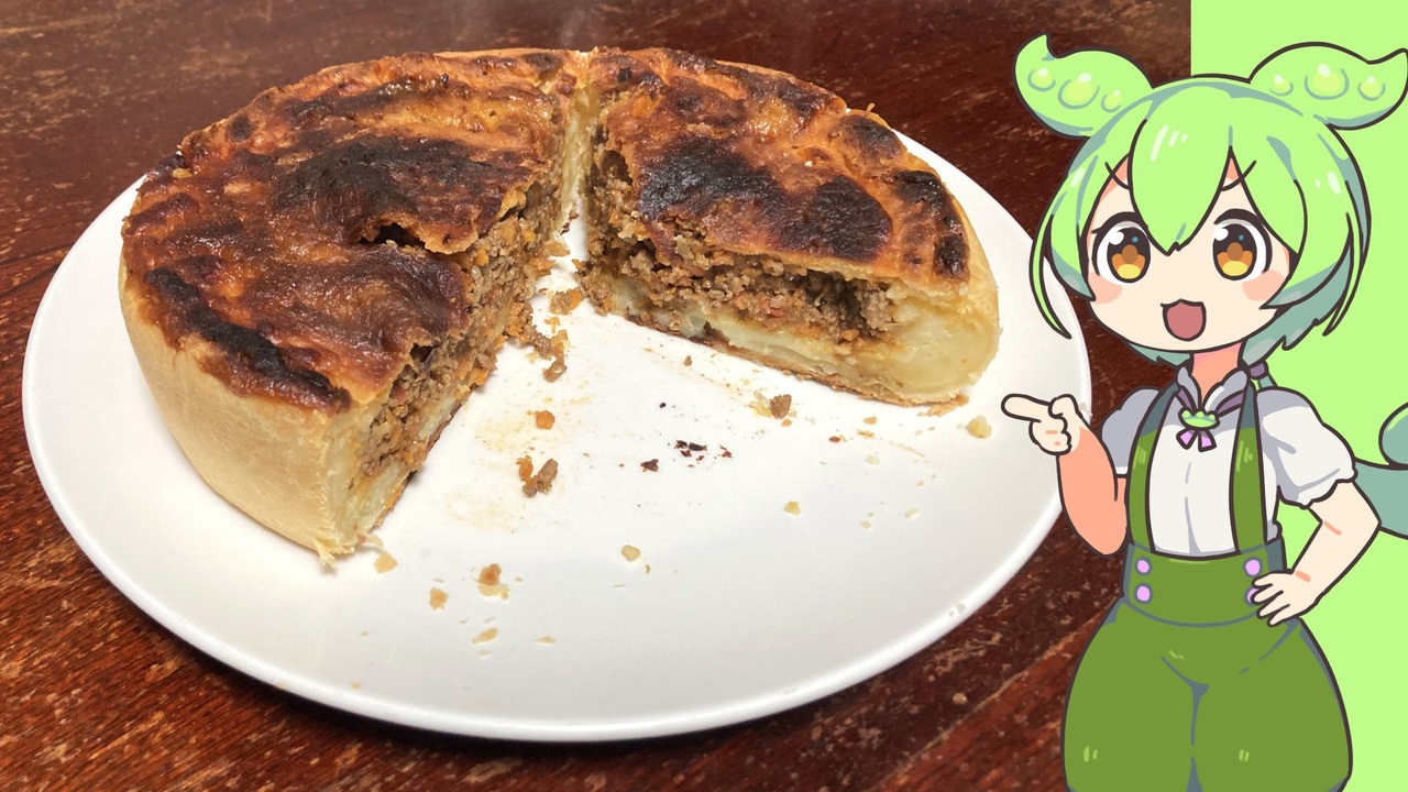 野菜のソースは前前前前前前前回の動画見て<br>→ <a href="https://www.nicovideo.jp/watch/sm44259383" class="watch">sm44259383</a><br><br>前回→<a href="https://www.nicovideo.jp/watch/sm44405181" class="watch">sm44405181</a> 次回→<a href="https://www.nicovideo.jp/watch/sm44450999" class="watch">sm44450999</a><br><br>【材料】<br>・ひき肉<br>・じゃがいも<br>・パイ生地<br>・なんか良い感じのスパイス<br /><br>レシピとか質問とか雑多に募集中<br><a href="https://marshmallow-qa.com/pwilzcacj1j87mz?t=6PAejL&utm_medium=url_text&utm_source=promotion" target="_blank" rel="noopener nofollow">https://marshmallow-qa.com/pwilzcacj1j87mz?t=6PAejL&utm_medium=url_text&utm_source=promotion</a><br><br>限界マイリスト<br><a href="https://www.nicovideo.jp/series/379506" target="_blank" rel="noopener nofollow">https://www.nicovideo.jp/series/379506</a><br><br>利用させてもらったもの<br>・ VOICEVOX:ずんだもん<br>立ち絵<br>・坂本アヒル氏<br><a href="https://seiga.nicovideo.jp/seiga/im10788496" target="_blank" rel="noopener nofollow">https://seiga.nicovideo.jp/seiga/im10788496</a><br>BGM<br>・ニコニコモンズ<br><a href="https://commons.nicovideo.jp/material/nc97718" target="_blank" rel="noopener nofollow">https://commons.nicovideo.jp/material/nc97718</a><br>各ずんだもん素材<br>・ずんだおばけ氏<br><a href="https://www.nicovideo.jp/user/124111720?rf=nvpc&rp=watch&ra=video_information" target="_blank" rel="noopener nofollow">https://www.nicovideo.jp/user/124111720?rf=nvpc&rp=watch&ra=video_information</a> <a href="https://www.youtube.com/@ZundaGhost" target="_blank" rel="noopener nofollow">https://www.youtube.com/@ZundaGhost</a><br>SE<br>・効果音ラボ<br><br>見てくれて感謝!<br>いいね・コメント・フォロー。マイリストも下さった方<br>ありがとうございます<br>・救援物資欲しいモノリスト<br><a href="https://www.amazon.co.jp/hz/wishlist/ls/2Q8W3EKKLTRVS?ref_=wl_fv_le" target="_blank" rel="noopener nofollow">https://www.amazon.co.jp/hz/wishlist/ls/2Q8W3EKKLTRVS?ref_=wl_fv_le</a><br>・お手紙とか干し芋から送れないものはこちら<br><a href="https://ouen55.com/sentwin5496/" target="_blank" rel="noopener nofollow">https://ouen55.com/sentwin5496/</a><br>