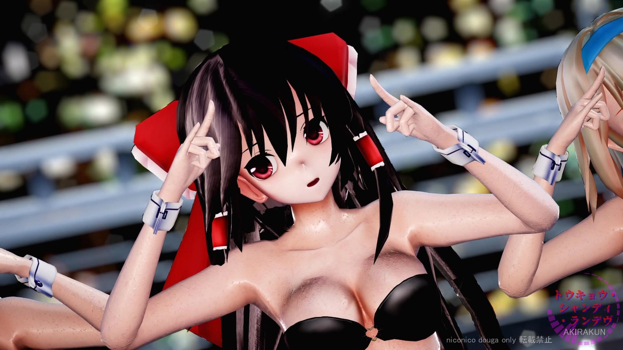 霊夢・魔理沙・アリス・鈴仙・妖夢・早苗・文の7人踊ってもらいました。この作品は「東方project」の2次創作です。現在、作成リクエストは受け付けていません。<br><br><br>【楽曲】:「トウキョウ・シャンディ・ランデヴ」:MAISONdes 様<br> <a href="https://youtu.be/NFMmSOWPj_k?si=VwbBmuv1RkF5ngrT" target="_blank" rel="noopener nofollow">https://youtu.be/NFMmSOWPj_k?si=VwbBmuv1RkF5ngrT</a><br><br>【トレス元】:仮面ライアー217様<br> <a href="https://youtu.be/LX0czynxg1Q?si=3DDUCylhaWXzxAsy" target="_blank" rel="noopener nofollow">https://youtu.be/LX0czynxg1Q?si=3DDUCylhaWXzxAsy</a><br><br>【モーション・カメラ】:P-nez 様 <a href="https://www.nicovideo.jp/watch/sm44159502" class="watch">sm44159502</a><br><br><br>■スカイドーム<br>ゴールドナイト NN6:怪獣対若大将P様 <a href="https://seiga.nicovideo.jp/seiga/im5559486" target="_blank" rel="noopener">im5559486</a><br><br>■ステージ<br>空港デッキ風ステージ:スイカ様 <a href="https://seiga.nicovideo.jp/seiga/im11522001" target="_blank" rel="noopener">im11522001</a><br><br>■モデル<br>霊夢、魔理沙、アリス:にがもん様、しえら様<br>FL改_鈴仙・U・イナバ_v4.10:フリック様<br>東風谷早苗:kaoru様 <br>魂魄妖夢、射命丸文:アールビット様<br>衣装:アールビット様<br><br>■エフェクト<br>Ray-mmd-1.5.2:Rui様<br>初心者マテリアル:さらしな様<br>肌マテリアル:MARUSU様<br>AutoLuminous4:そぼろ様<br>空中に漂う埃:化身バレッタ様<br>ikBokeh_v020a:ikeno様<br><br><br>MikuMikuDance:樋口優様<br>MMEffect :舞力介入P様<br>PMDE、PmxE:極北P様<br>AviUtl :KENくん様<br>・Aviutl + x264guiExでエンコード:rigaya様<br>Ut Video Codec Suite:ゆーむP様<br>上海アリス幻楽団・東方project(ZUN様)<br><br><br>mylist ③<a href="https://www.nicovideo.jp/mylist/75586824" target="_blank" rel="noopener">mylist/75586824</a> ② <a href="https://www.nicovideo.jp/mylist/72970530" target="_blank" rel="noopener">mylist/72970530</a> ① <a href="https://www.nicovideo.jp/mylist/63690967" target="_blank" rel="noopener">mylist/63690967</a> 旧 <a href="https://www.nicovideo.jp/mylist/61238351" target="_blank" rel="noopener">mylist/61238351</a><br><br> ※動画の転載は禁止です。<br>Attention,Unauthorized reproduction prohibited!!