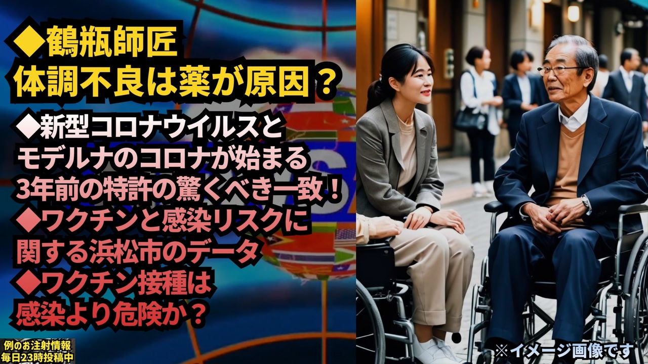 科学者らは、 パンデミックが始まる3年前にモデルナ社が特許を取得した配列と一致するDNAの小さな塊がウイルスに含まれていることを発見した<br><br>パンデミックが始まる3年前のことだと、もう一度読み返してみてください<br>ファウチを逮捕しろ<br>Read that twice: ‘3 years BEFORE the Pandemic began’. ARREST Fauci.<br><a href="https://x.gd/9bfHU" target="_blank" rel="noopener nofollow">https://x.gd/9bfHU</a><br><br><br>薬が原因だと、本人談<br><br>体調不良の原因については、「たぶん、薬やと思うね。風邪ひきの薬やけど」と考察<br><br>笑福亭鶴瓶、体調不良で歩行困難&車椅子移動していた 原因・現状も説明(モデルプレス)<br>#Yahooニュース<br><a href="https://x.com/JINKOUZOUKA_jp/status/1868605060500054431?t=DMUWJQZvFJOVoaScE2Dqog&s=19" target="_blank" rel="noopener nofollow">https://x.com/JINKOUZOUKA_jp/status/1868605060500054431?t=DMUWJQZvFJOVoaScE2Dqog&s=19</a><br><br>2023年に弟子の笑瓶、実の姉、兄を亡くし、自身も帯状疱疹で悩んだ鶴瓶。コロワクのせいだと思っていても公言できない異常な世の中<br><a href="https://x.com/mooncave3/status/1868811878660817274?t=oMKcVujSZNqhzUThA8wyTQ&s=19" target="_blank" rel="noopener nofollow">https://x.com/mooncave3/status/1868811878660817274?t=oMKcVujSZNqhzUThA8wyTQ&s=19</a><br><br><br>浜松市データは当時、打っても打たなくても同じじゃん!むしろ打ったほうが、、、と答え合わせのようなデータでした。<br><a href="https://t.co/aOtZmW6if8" target="_blank" rel="noopener nofollow">https://t.co/aOtZmW6if8</a><br><br><br>岡田正彦 新潟大学医学部元教授<br>2024.12.16<br><br>「コロナ感染とワクチン接種:どちらが危険?」<br>スパイク蛋白は、新型コロナに感染した場合よりも、ワクチンを接種したほうが遥かに大量に、かつ遥かに長く血液中に残ることがわかってきた<br>okada-masahiko.sakura.ne.jp<br><br><a href="https://x.com/ma_pion/status/1868449823260897605?t=1JGdf2ORr3gY6WfA2g5I_w&s=19" target="_blank" rel="noopener nofollow">https://x.com/ma_pion/status/1868449823260897605?t=1JGdf2ORr3gY6WfA2g5I_w&s=19</a><br><br><br>新型コロナウイルス<br>コロナワクチン<br>ワクチン<br>笑福亭鶴瓶<br>モデルナ<br>遺伝子配列<br>パンデミックの3年前<br>モデルナ特許<br>パンデミックの真実<br>スパイクタンパク<br>浜松市データ<br><br>岡田正彦教授<br>アンソニー・ファウチ<br>武漢研究所<br>ウイルス流出<br>機能獲得実験<br>笑福亭笑瓶<br><br>マイリンク<a href="https://lit.link/keiichiro8140" target="_blank" rel="noopener nofollow">https://lit.link/keiichiro8140</a><br><br><br />著作権、肖像権に配慮して作成しております。<br><br>◆気になったニュースの台本!?<br>メモ代わりに作った台本をそのままあげてます<br><a href="https://keiichiro8140.hatenablog.com/." target="_blank" rel="noopener nofollow">https://keiichiro8140.hatenablog.com/.</a><br><br><br>ここからはシリーズ紹介<br><br><br>◆ ワクチン解毒・デトックス<br><a href="https://x.gd/fZweg" target="_blank" rel="noopener nofollow">https://x.gd/fZweg</a><br><br>◆ウイリアム・マキス博士のがん治療(イベルメクチン・フェンベンダゾール等)<br><a href="https://x.gd/AtFYS" target="_blank" rel="noopener nofollow">https://x.gd/AtFYS</a><br><br>◆予防接種健康被害救済制度<br><a href="https://x.gd/0xK9x" target="_blank" rel="noopener nofollow">https://x.gd/0xK9x</a><br><br>◆気になったニュース #1501~<br><br>◆ 【ショートver】気になったニュース<br><a href="https://x.gd/7MxXC" target="_blank" rel="noopener nofollow">https://x.gd/7MxXC</a><br><br>◆ 気になったニュース #1001~<br><a href="https://x.gd/Lp8gv" target="_blank" rel="noopener nofollow">https://x.gd/Lp8gv</a><br><br>◆ 気になったニュース #501~<br><a href="https://x.gd/EmbS4" target="_blank" rel="noopener nofollow">https://x.gd/EmbS4</a><br><br>◆ 気になったニュース #1~#500<br><a href="https://x.gd/uPhNb" target="_blank" rel="noopener nofollow">https://x.gd/uPhNb</a><br><br>◆ X(旧Twitter)・テレグラムで気になった情報<br><a href="https://x.gd/YG6FT" target="_blank" rel="noopener nofollow">https://x.gd/YG6FT</a><br><br>◆ 日比谷5万人パレードデ⚪生放送アーカイブ動画<br><a href="https://x.gd/3CHJv" target="_blank" rel="noopener nofollow">https://x.gd/3CHJv</a><br><br>◆日比谷5万人パレード⚪モのマイリスト作ってみました<br><a href="https://nico.ms/mylist/76828848?ref=sp_other" target="_blank" rel="noopener nofollow">https://nico.ms/mylist/76828848?ref=sp_other</a><br><br>◆3.30 令和の百姓⚪⚪<br><a href="https://www.nicovideo.jp/series/511791?ref=garage_share_other" target="_blank" rel="noopener nofollow">https://www.nicovideo.jp/series/511791?ref=garage_share_other</a><br><br>◆ 及川幸久さんの【XNEWS】シリーズ<br><a href="https://x.gd/3k78K" target="_blank" rel="noopener nofollow">https://x.gd/3k78K</a><br><br>◆これまでの動画<a href="https://x.gd/sPXoJ" target="_blank" rel="noopener nofollow">https://x.gd/sPXoJ</a><br><br>◆もしも(BAN)の時のためのマイリンク集<a href="https://lit.link/K-16_News44" target="_blank" rel="noopener nofollow">https://lit.link/K-16_News44</a><br><br>
