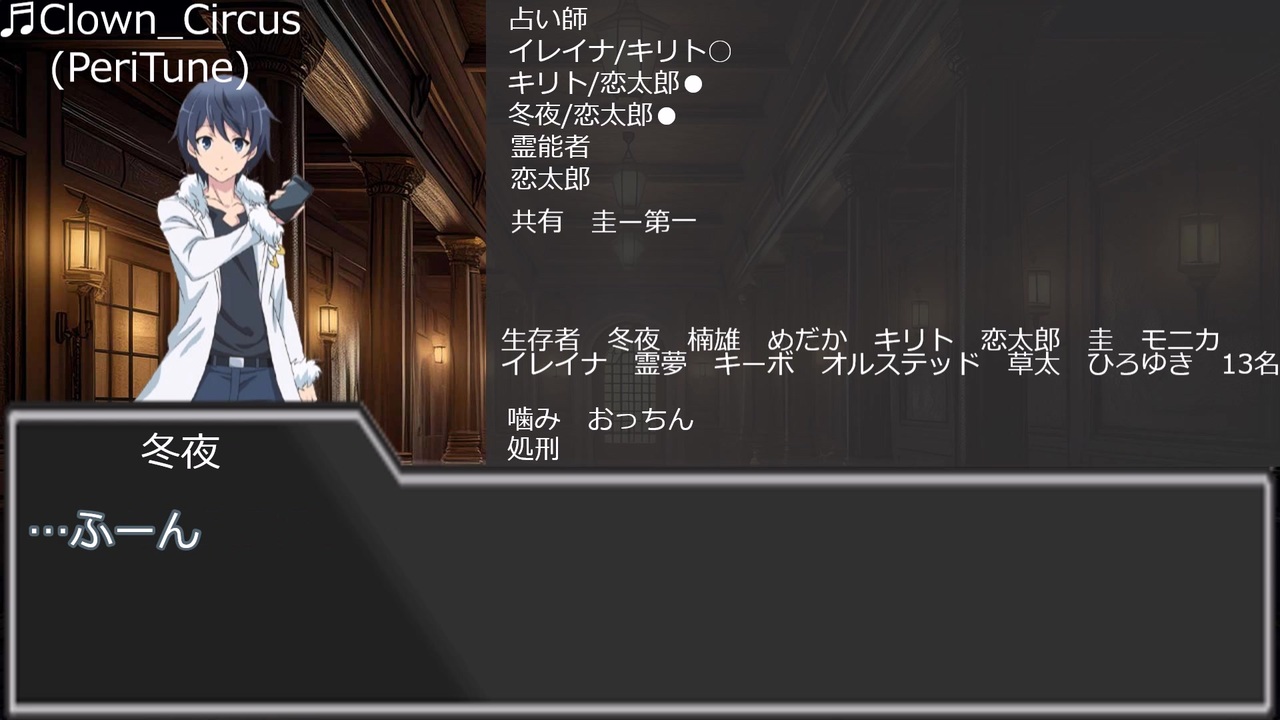 キャラ選過去一苦しんだ<br>あと一応サムネホイホイ<br><br>14D猫:村2/占1/霊1/狩1/猫1/共2/狼3/信1/狐1/背1<br><br>3日目:<a href="https://www.nicovideo.jp/watch/sm44438690" class="watch">sm44438690</a><br><br>ライバル:<a href="https://www.nicovideo.jp/series/476248" target="_blank" rel="noopener">series/476248</a><br>ラスボス :<a href="https://www.nicovideo.jp/series/463566" target="_blank" rel="noopener">series/463566</a><br>ヒロイン:<a href="https://www.nicovideo.jp/series/445998" target="_blank" rel="noopener">series/445998</a><br>異世界:<a href="https://www.nicovideo.jp/series/437627" target="_blank" rel="noopener">series/437627</a><br><br>Voiced by <a href="https://CoeFont.cloud" target="_blank" rel="noopener nofollow">https://CoeFont.cloud</a>