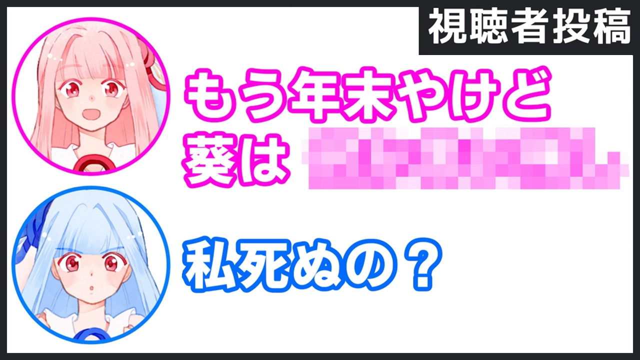 2024年末SPとして募集したふたセリフ集の前編です<br>募集についての動画→<a href="https://www.nicovideo.jp/watch/sm44355113" class="watch">sm44355113</a> (現在募集は終了しています)<br>今年もたくさんのご参加ありがとうございました!<br>みんなが案を送ってくれるのでなかなか最終回を迎えられません<br><br>(ネタの一文を丸々サムネに使うと、該当部分見ている時退屈にさせちゃうのが嫌なのでサムネのセリフを一部伏せてます)<br><br>視聴者投稿2024①(ヒメミコ)→<a href="https://www.nicovideo.jp/watch/sm44450627" class="watch">sm44450627</a><br>視聴者投稿2024②(琴葉茜葵)→ココ<br>視聴者投稿2024③(ヒメミコ)→<a href="https://www.nicovideo.jp/watch/sm44450652" class="watch">sm44450652</a><br>視聴者投稿2024④(琴葉茜葵)→<a href="https://www.nicovideo.jp/watch/sm44444667" class="watch">sm44444667</a> <br><br>前→<a href="https://www.nicovideo.jp/watch/sm44423385" class="watch">sm44423385</a><br><br>前回の視聴者投稿ふたセリフ→<a href="https://www.nicovideo.jp/watch/sm43172546" class="watch">sm43172546</a><br>いいねでさらに視聴者さんのネタが1つ見られます(じぇらーと様提供)<br><br>Twitter→<a href="https://twitter.com/0kashl_poke" target="_blank" rel="noopener nofollow">https://twitter.com/0kashl_poke</a><br>ふたセリフ【琴葉姉妹】→<a href="https://www.nicovideo.jp/series/313949" target="_blank" rel="noopener">series/313949</a><br>原作者さんのふたセリフ【鳴花ヒメ・ミコト】→<a href="https://www.nicovideo.jp/series/299667" target="_blank" rel="noopener">series/299667</a>