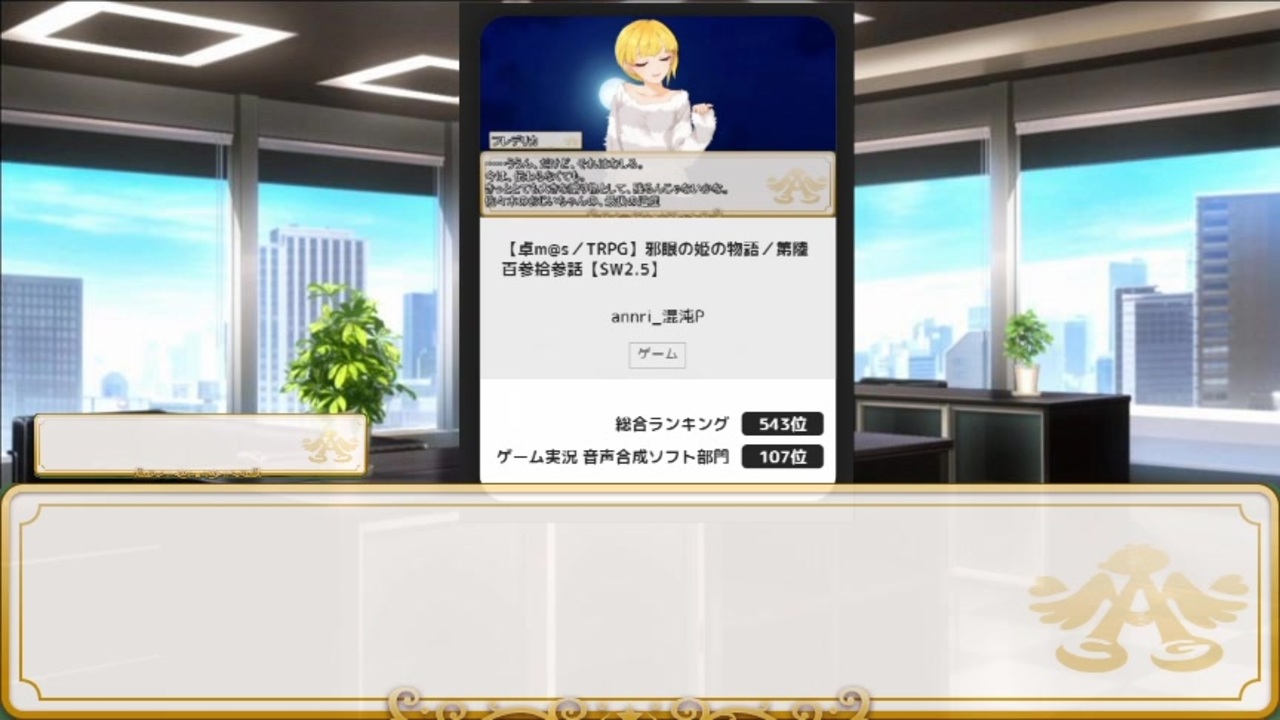 とりあえず箱は200開けました。<br>++じゃなくて+の方回ってるおかげで妖精粉もいっぱいゲット<br> <br>Part1集 <a href="https://www.nicovideo.jp/mylist/55224999" target="_blank" rel="noopener">mylist/55224999</a><br>邪眼姫 <a href="https://www.nicovideo.jp/mylist/57578029" target="_blank" rel="noopener">mylist/57578029</a> 邪眼姫2<a href="https://www.nicovideo.jp/mylist/73996621" target="_blank" rel="noopener">mylist/73996621</a><br>オリジナル要素などた混沌Pソドワまとめwiki(工事中) <a href="https://w.atwiki.jp/kontonpsw2/" target="_blank" rel="noopener nofollow">https://w.atwiki.jp/kontonpsw2/</a><br>前:<a href="https://www.nicovideo.jp/watch/sm44423804" class="watch">sm44423804</a> 次:<a href="https://www.nicovideo.jp/watch/sm44451274" class="watch">sm44451274</a><br><br>ボイボクレジット<br>VOICEVOX:櫻歌ミコ/VOICEVOX:中国うさぎ/VOICEVOX:猫使ビィ/VOICEVOX:九州そら/VOICEVOX:琴詠ニア/VOICEVOX:剣崎雌雄<br><br />本作は、「グループSNE」及び「株式会社KADOKAWA」が権利を有する<br>『ソード・ワールド2.0/2.5』の、二次創作です。<br>(C)GroupSNE<br>(C)KADOKAWA<br>