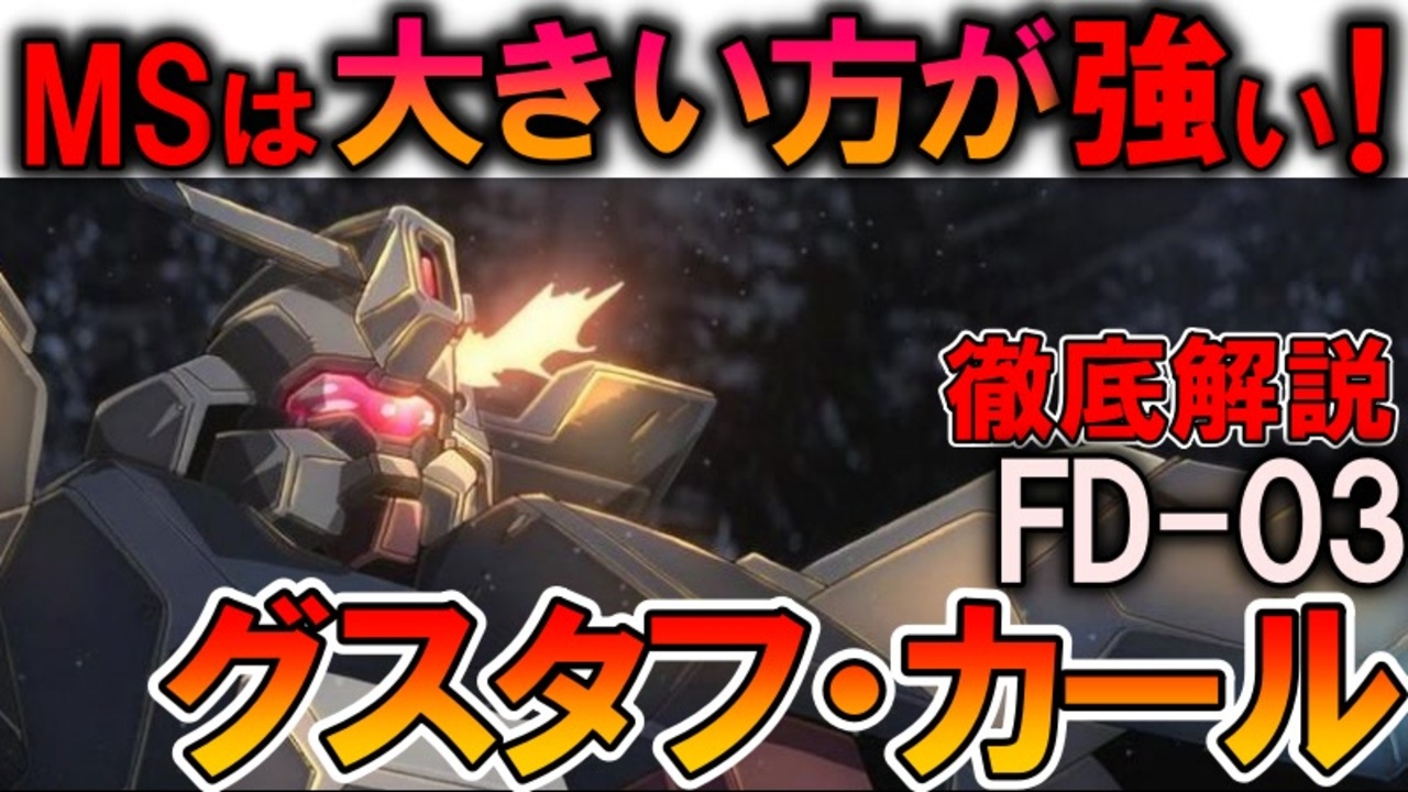 【実は未来のMSより優秀?】FD-03グスタフ・カール。本当は凄い優秀な傑作機なのに消えてしまった悲しい理由を徹底解説【閃光のハサウェイ】 <br><br>機動戦士ガンダム閃光のハサウェイなどに登場するMS、FD-03グスタフ・カールを解説、考察していきます。 <br>今回は解説と考察が同じくらいです。<br>いいねに次回予告的なものも。<br><br>独占って怖いなぁと改めて思いました。<br>お金は人を狂わせるんですかね。<br>それとも最初から気高い理想は建前で、お金が最優先だったんですかね。<br><br>現在連載中の小説を見てくださる方はこちら:<br>異世界アイドル革命!死に戻り悪役令嬢は閃いた『こいつら全員アイドルにしてしまおう!』<br>※初期コンセプトは死に戻ったガルマがシャアを救うにはどうしたら良いのか的な物語を全部女の子でやった感じです。<br>※ここが駄目、もっとこうしたらなどのアドバイスも大歓迎です<br><a href="https://kakuyomu.jp/works/16817330662598051943" target="_blank" rel="noopener nofollow">https://kakuyomu.jp/works/16817330662598051943</a><br><br>質問、などありましたらこちらにも<br><a href="https://twitter.com/@i4S0LHspdgzBTor" target="_blank" rel="noopener nofollow">https://twitter.com/@i4S0LHspdgzBTor</a><br><br>清見元康名義でカクヨム、小説家になろう、たいあっぷなどに投稿しています。<br>もし良ければ応援お願いしますm(_ _)m<br><a href="https://kakuyomu.jp/users/GariD/works" target="_blank" rel="noopener nofollow">https://kakuyomu.jp/users/GariD/works</a><br><br>以前の作品(短編シリアス):<br>転生した厄災の大魔女はやがて聖女と呼ばれる<br><a href="https://ncode.syosetu.com/n0827ha/" target="_blank" rel="noopener nofollow">https://ncode.syosetu.com/n0827ha/</a><br><br>A.I.VOICE:結月ゆかり<br>VOICEVOX:ずんだもん<br><br>使用させていただいたずんだもん:<br>ずんだもん mini Deluxe(立ち絵) ver1.2<br><a href="https://seiga.nicovideo.jp/seiga/im10794509" target="_blank" rel="noopener nofollow">https://seiga.nicovideo.jp/seiga/im10794509</a><br><br>いつも広告、コメントありがとうございます。<br>励みになりますm(_ _)m<br>
