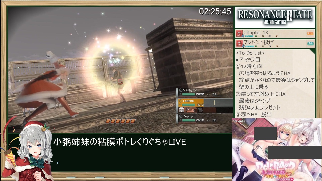 ねぇヴァシュロン<br>「Now what we need is a trampoline」<br>ってどういう意味?<br><br>【GAME】 <br>Resonance of fate(レゾナンスオブフェイト)<br>Steam版(エンドオブエタニティの海外版)<br><br>【レギュレーション】<br>・計測区間:START GAME~クリアデータセーブ説明文表示<br>・難易度:NORMAL<br><br>【<a href="https://www.nicovideo.jp/mylist/76936875" target="_blank" rel="noopener">mylist/76936875</a>】 <br>PREV≫<a href="https://www.nicovideo.jp/watch/sm44401830" class="watch">sm44401830</a><br>NEXT≫<a href="https://www.nicovideo.jp/watch/sm44486707" class="watch">sm44486707</a><br>≪前作RTA≫<br>【VALKYRIE PROFILE】プラチナトロフィー取得RTA_4:26:47_Part.1<br>≫<a href="https://www.nicovideo.jp/watch/sm42393086" class="watch">sm42393086</a><br><br>≪前走≫<br>END OF ETERNITY 4K/HD EDITION RTA_3:36:50_Part.1<br>≫<a href="https://www.nicovideo.jp/watch/sm37506037" class="watch">sm37506037</a><br><br>Other Cielo’s Title <br>【<a href="https://www.nicovideo.jp/mylist/50418741" target="_blank" rel="noopener">mylist/50418741</a> 】<br><br>twitter <a href="https://twitter.com/Cielo_Polo" target="_blank" rel="noopener nofollow">https://twitter.com/Cielo_Polo</a><br>