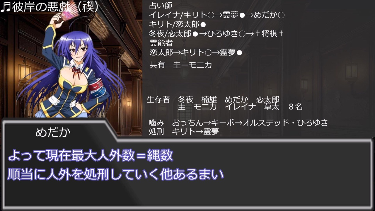 ついに将棋COが…!?<br>遅れてサーセン<br><br>14D猫:村2/占1/霊1/狩1/猫1/共2/狼3/信1/狐1/背1<br><br>3日目:<a href="https://www.nicovideo.jp/watch/sm44438690" class="watch">sm44438690</a><br>5日目:<a href="https://www.nicovideo.jp/watch/sm44452076" class="watch">sm44452076</a><br><br>ライバル:<a href="https://www.nicovideo.jp/series/476248" target="_blank" rel="noopener">series/476248</a><br>ラスボス :<a href="https://www.nicovideo.jp/series/463566" target="_blank" rel="noopener">series/463566</a><br>ヒロイン:<a href="https://www.nicovideo.jp/series/445998" target="_blank" rel="noopener">series/445998</a><br>異世界:<a href="https://www.nicovideo.jp/series/437627" target="_blank" rel="noopener">series/437627</a>