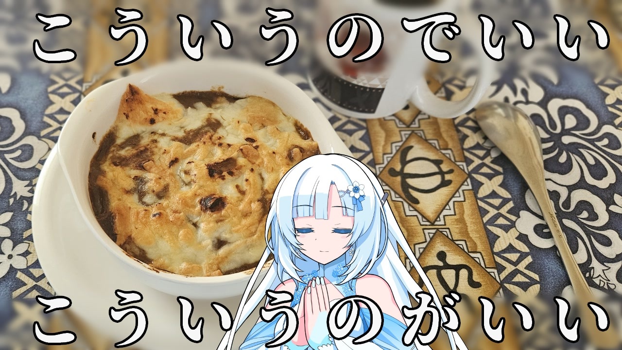 ほとんど料理しなくたって、美味しい料理は食べられる。 <br>こういうのでいい、こういうのがいい。<br><br>YouTubeチャンネル<br><a href="https://www.youtube.com/@Kaina1122" target="_blank" rel="noopener nofollow">https://www.youtube.com/@Kaina1122</a><br><br><a href="https://www.nicovideo.jp/watch/sm44452364" class="watch">sm44452364</a> ← 前 次 → <a href="https://www.nicovideo.jp/watch/sm44859465" class="watch">sm44859465</a><br><br>Twitter<br>告知用:<a href="https://x.com/AbaBabA_Kaina" target="_blank" rel="noopener nofollow">https://x.com/AbaBabA_Kaina</a><br>趣味~:<a href="https://x.com/AbaBabA_double" target="_blank" rel="noopener nofollow">https://x.com/AbaBabA_double</a><br>-----------------------------------------<br>【立ち絵】 <br>WhiteCUL:moiky 様 <br><a href="https://seiga.nicovideo.jp/seiga/im11047926" target="_blank" rel="noopener nofollow">https://seiga.nicovideo.jp/seiga/im11047926</a><br><br>【音声】<br>VOICEVOX:WhiteCUL <br><br>【BGM】<br>騒音のない世界 様<br><a href="https://www.nicovideo.jp/user/93555972" target="_blank" rel="noopener nofollow">https://www.nicovideo.jp/user/93555972</a>
