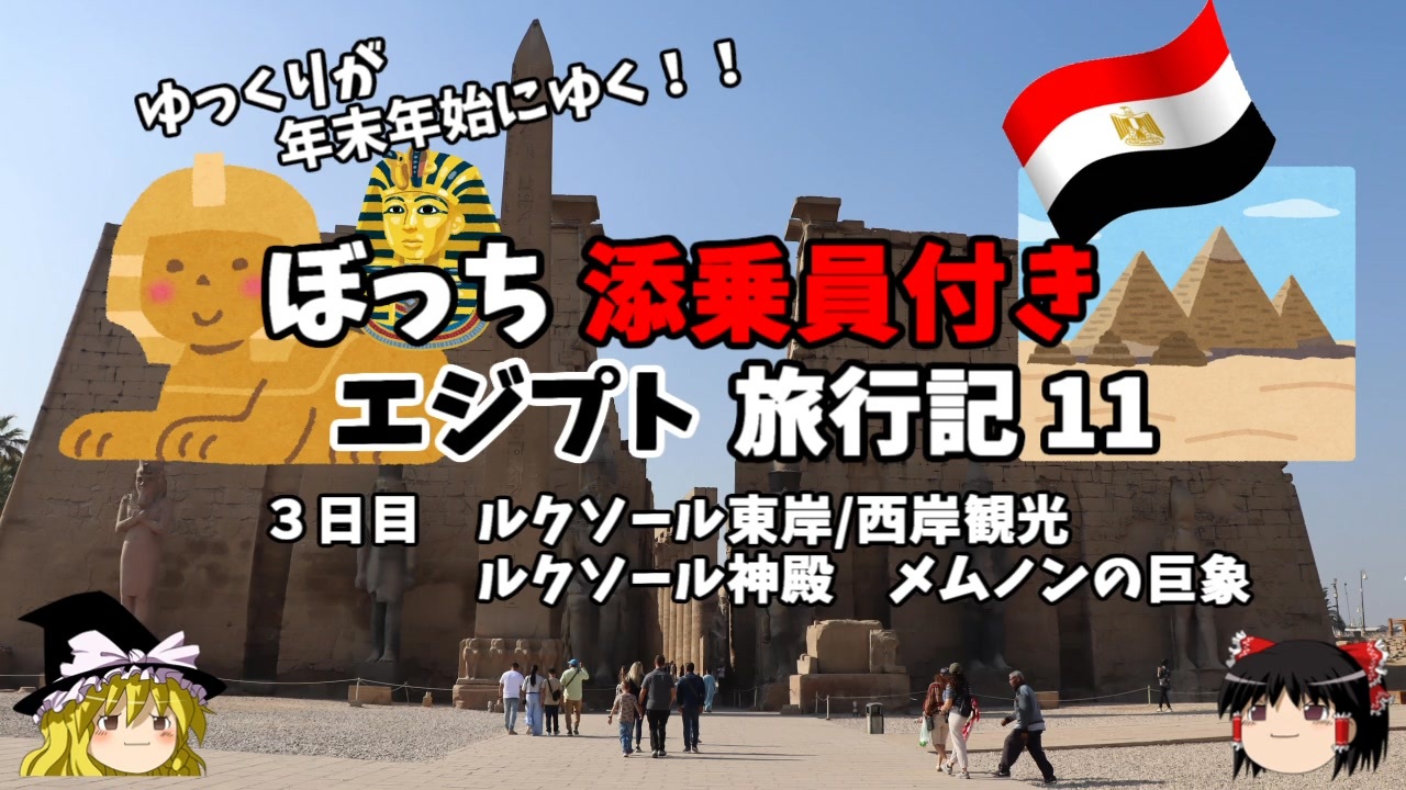 <span style="color: #ff0000; font-size: medium;"><u>※Youtubeで1話分、先行配信中 </u></span><br><span style="color: #0000ff; font-size: medium;"> <a href="http://www.youtube.com/c/なめこのぼっち旅" target="_blank" rel="noopener nofollow">http://www.youtube.com/c/なめこのぼっち旅</a></span><br><br><br>2023~2024年の年末年始にエジプト旅行に行ってきました!<br>その模様をお伝えします!<br><br><span style="color: #ff0000;">コミュニティー→co2910020</span><br><br>twitter→<a href="https://twitter.com/ryontan" target="_blank" rel="noopener nofollow">https://twitter.com/ryontan</a><br><br><a href="https://www.nicovideo.jp/watch/sm44452699" class="watch">sm44452699</a>← 前回 <span style="color: #ff0000;">次回 → <a href="https://www.nicovideo.jp/watch/sm44515062" class="watch">sm44515062</a></span><br><br>今作 エジプト旅行記→<a href="https://www.nicovideo.jp/mylist/77227599" target="_blank" rel="noopener">mylist/77227599</a><br>前作 飛鳥Ⅱクルーズ乗船記→<a href="https://www.nicovideo.jp/mylist/75717836" target="_blank" rel="noopener">mylist/75717836</a><br>北海道車中泊旅行記→<a href="https://www.nicovideo.jp/mylist/73483035" target="_blank" rel="noopener">mylist/73483035</a><br>モルディブ旅行記→<a href="https://www.nicovideo.jp/mylist/72339602" target="_blank" rel="noopener">mylist/72339602</a><br>東欧旅行記→<a href="https://www.nicovideo.jp/mylist/70339665" target="_blank" rel="noopener">mylist/70339665</a><br>解説・雑談系→<a href="https://www.nicovideo.jp/mylist/63171869" target="_blank" rel="noopener">mylist/63171869</a><br>スイス旅行記<span style="color: #000000; font-size: 14px;">→</span><a href="https://www.nicovideo.jp/mylist/68347869" target="_blank" rel="noopener">mylist/68347869</a><br>スペイン周遊記→<a href="https://www.nicovideo.jp/mylist/64537827" target="_blank" rel="noopener">mylist/64537827</a><br>韓国トルコ旅行記→<a href="https://www.nicovideo.jp/mylist/63654428" target="_blank" rel="noopener">mylist/63654428</a><br>車中泊旅行記→<a href="https://www.nicovideo.jp/mylist/54706524" target="_blank" rel="noopener">mylist/54706524</a><br>久米島(沖縄)旅行記→<a href="https://www.nicovideo.jp/mylist/63059251" target="_blank" rel="noopener">mylist/63059251</a><br>イギリスタイ旅行記→<a href="https://www.nicovideo.jp/mylist/60044833" target="_blank" rel="noopener">mylist/60044833</a><br>クルーズ旅行記→<a href="https://www.nicovideo.jp/mylist/57397685" target="_blank" rel="noopener">mylist/57397685</a><br>ドイツ周遊記→<a href="https://www.nicovideo.jp/mylist/54938346" target="_blank" rel="noopener">mylist/54938346</a><br>北海道旅行記→<a href="https://www.nicovideo.jp/mylist/52618057" target="_blank" rel="noopener">mylist/52618057</a><br>アメリカ横断記→<a href="https://www.nicovideo.jp/mylist/48621785" target="_blank" rel="noopener">mylist/48621785</a><br>イタリア周遊記→<a href="https://www.nicovideo.jp/mylist/45763559" target="_blank" rel="noopener">mylist/45763559</a><br>NY旅行記→<a href="https://www.nicovideo.jp/mylist/44343854" target="_blank" rel="noopener">mylist/44343854</a>