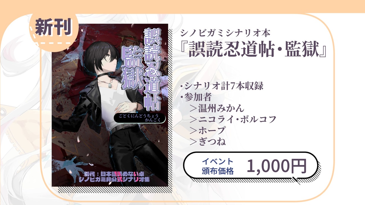 <span style="font-size: 18px;"><strong>誤読忍道帖・監獄⇒<a href="https://nihonngoyomenai.booth.pm/items/6325173" target="_blank" rel="noopener nofollow">https://nihonngoyomenai.booth.pm/items/6325173</a></strong></span><br>表紙イラスト:クレタ様 本文デザイン:らいむ理事長様<br><span style="font-size: 18px;"><strong>メルセナリー⇒<a href="https://nihonngoyomenai.booth.pm/items/6208738" target="_blank" rel="noopener nofollow">https://nihonngoyomenai.booth.pm/items/6208738</a></strong></span><br><br>投稿したTRPG動画第一話集→<a href="https://www.nicovideo.jp/mylist/53857218" target="_blank" rel="noopener">mylist/53857218</a> <br>Twitter→<a href="https://twitter.com/nikoraiTRPG" target="_blank" rel="noopener nofollow">https://twitter.com/nikoraiTRPG</a><br>YouTubeチャンネル→<a href="https://www.youtube.com/channel/UCx75tsELw0rmXG5i2_sXf4g?view_as=subscriber" target="_blank" rel="noopener nofollow">https://www.youtube.com/channel/UCx75tsELw0rmXG5i2_sXf4g?view_as=subscriber</a><br>BOOTH:<a href="https://nihonngoyomenai.booth.pm/" target="_blank" rel="noopener nofollow">https://nihonngoyomenai.booth.pm/</a><br>メロブ:<a href="https://www.melonbooks.co.jp/circle/index.php?circle_id=101170" target="_blank" rel="noopener nofollow">https://www.melonbooks.co.jp/circle/index.php?circle_id=101170</a><br><br><span style="color: #000000; font-size: 14px;">お借りした素材元様<br>ニコニココモンズの皆様 </span>