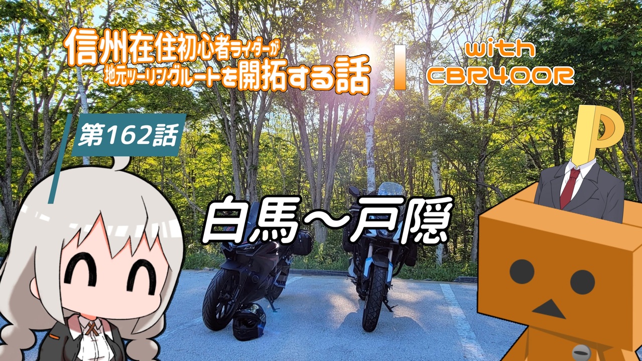またもマスツー回! 日本一周前半戦の最中だった謎のPとランデブー。信州の良さをわからせるつもりが逆に返り討ちに。孤立無援のふぁーは果たして無事に400Rのもとにたどりつけるのか!? な回です。<br><br> 第9シーズンも無事完走しました。ありがとうございました(*´∪`)<br>しばらくおやすみします。さがさないでください()<br><br>■行ったところ<br> だいず食堂 パチョコ<br> <a href="https://maps.app.goo.gl/6QYAcGenZPCeCnzr7" target="_blank" rel="noopener nofollow">https://maps.app.goo.gl/6QYAcGenZPCeCnzr7</a><br> 鷹狩山 展望台<br> <a href="https://maps.app.goo.gl/5YiGeHUUWMqX3A99A" target="_blank" rel="noopener nofollow">https://maps.app.goo.gl/5YiGeHUUWMqX3A99A</a><br> 雨降宮嶺方諏訪社<br> <a href="https://maps.app.goo.gl/Yq56XQrCCo6ie1mR8" target="_blank" rel="noopener nofollow">https://maps.app.goo.gl/Yq56XQrCCo6ie1mR8</a><br> 大望峠展望台<br> <a href="https://maps.app.goo.gl/vpyHDB22TZPwjzS3A" target="_blank" rel="noopener nofollow">https://maps.app.goo.gl/vpyHDB22TZPwjzS3A</a><br> 戸隠神社 奥社<br> <a href="https://maps.app.goo.gl/EfDHVzNkqbZAmStH8" target="_blank" rel="noopener nofollow">https://maps.app.goo.gl/EfDHVzNkqbZAmStH8</a><br> わっちゃんバーガー自販機<br> <a href="https://maps.app.goo.gl/5Gb8h1d8S2vd8U7v6" target="_blank" rel="noopener nofollow">https://maps.app.goo.gl/5Gb8h1d8S2vd8U7v6</a><br><br>■謎のプロデューサー<br> ナカガワP さん <a href="https://www.nicovideo.jp/user/37251" target="_blank" rel="noopener">user/37251</a><br> 【日本一周'24】#00 無職と化した車載主が(略 <a href="https://www.nicovideo.jp/watch/sm43565168" class="watch">sm43565168</a><br> 【野外料理祭2】ノーイベント グッドバイク #06 <a href="https://www.nicovideo.jp/watch/sm43029519" class="watch">sm43029519</a><br><br><br> ふぁーれん <a href="https://twitter.com/fahren_fuwarin" target="_blank" rel="noopener nofollow">https://twitter.com/fahren_fuwarin</a><br><br> これまでの軌跡(マイマップ) <a href="https://www.google.com/maps/d/edit?mid=19pGGBMRUavXn_s0VEMjKAgSUhufdxcwF&usp=sharing" target="_blank" rel="noopener nofollow">https://www.google.com/maps/d/edit?mid=19pGGBMRUavXn_s0VEMjKAgSUhufdxcwF&usp=sharing</a><br><br><br>■第1話 <a href="https://www.nicovideo.jp/watch/sm37440916" class="watch">sm37440916</a><br>■第161話 <a href="https://www.nicovideo.jp/watch/sm44448263" class="watch">sm44448263</a> ← ここ → ■第163話 <a href="https://www.nicovideo.jp/watch/sm44626955" class="watch">sm44626955</a>