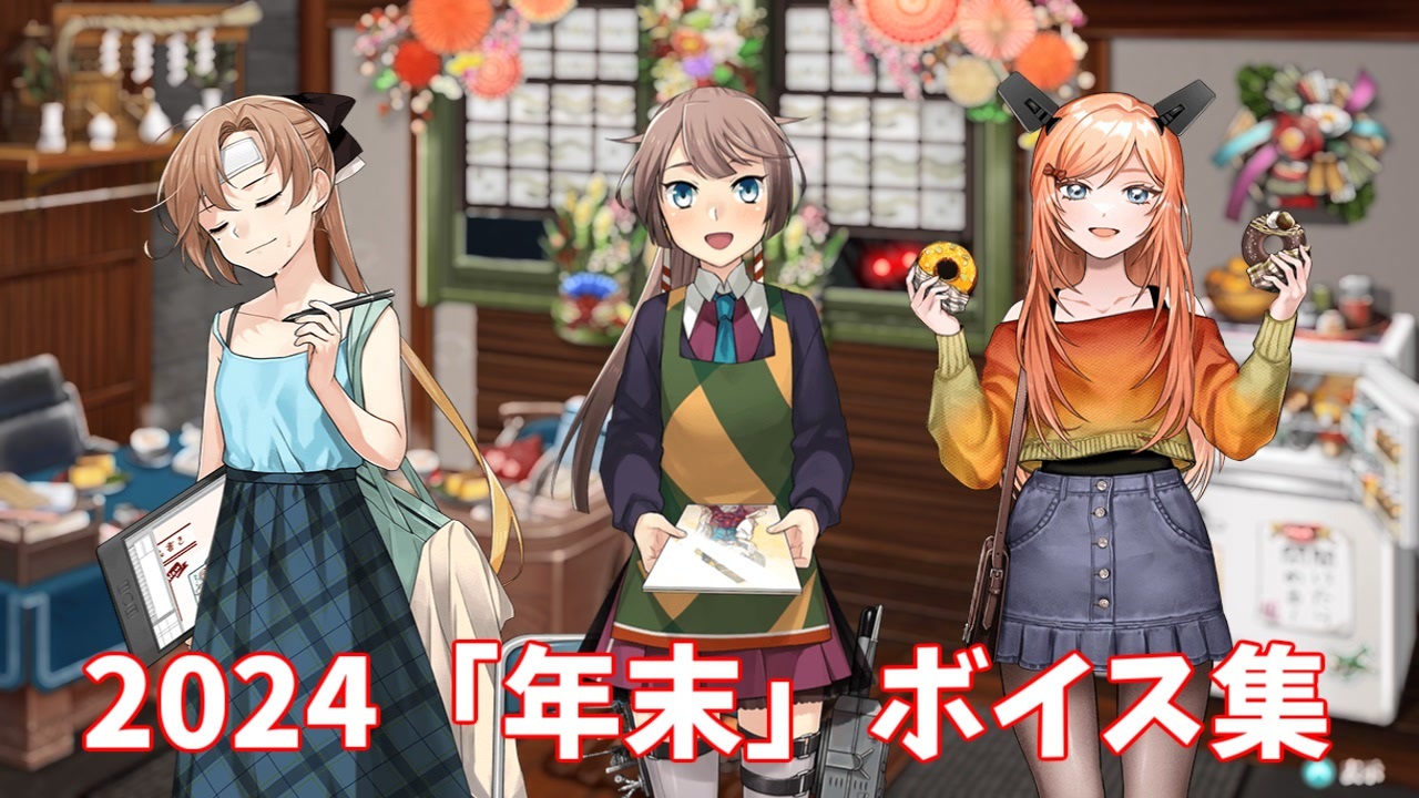13隻の新規「年末」ボイス集です。今年もご視聴・コメント・広告等の応援、ありがとうございました。<br>2023年の「年末」ボイスはこちら→ <a href="https://www.nicovideo.jp/watch/sm43202412" class="watch">sm43202412</a> <br><br>年末ボイス(図鑑No.順)<br>(大和 秋雲 風雲 藤波 Drum Valiant 平安丸 Phoenix Mogador Gloire Lexington 伊36 伊41)<br><br>【新規絵】<br>(Salmon)<br> <br>前|藤波改二 追加ボイス&2024「クリスマス」ボイス集 (12/3アップデート) <a href="https://www.nicovideo.jp/watch/sm44398659" class="watch">sm44398659</a> <br><strong>次|2024「年末」ボイス集② & 2025「新春」ボイス集 (1/1アップデート) </strong><a href="https://www.nicovideo.jp/watch/sm44495722" class="watch">sm44495722</a><br><br>艦これ追加ボイス集 マイリスト(<a href="https://www.nicovideo.jp/mylist/40513442" target="_blank" rel="noopener">mylist/40513442</a>)<br>シリーズ(<a href="https://www.nicovideo.jp/series/34200" target="_blank" rel="noopener">series/34200</a>)<br><br>Youtubeでも活動しています。<br>チャンネル <a href="https://www.youtube.com/channel/UCTYYB9O7hiQlH6Ee-Xxlbpg" target="_blank" rel="noopener nofollow">https://www.youtube.com/channel/UCTYYB9O7hiQlH6Ee-Xxlbpg</a>