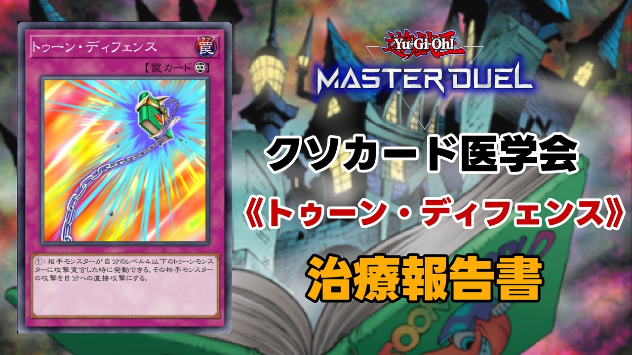 パルミジャーノ根岸です。<br>11月は投稿できずすみませんでした。<br>治療は毎日考えているんですが、1ヵ月で思いつかなかったらこうなります。<br><br>今回はだいぶあっさりした動画なのでご了承を<br><br><br><br>コメントいっぱいありがとう<br>いいねはちょっとした裏話<br><br>※クソカードやカードの治療の定義はありません、対戦相手や別投稿者など、私以外へ批判はお控えください<br><br>いままでの動画のコメントの返信と裏話note:<a href="https://note.com/parmigiano_negi/all" target="_blank" rel="noopener nofollow">https://note.com/parmigiano_negi/all</a><br>※年始ちょっと更新するかも<br><br>あまくだりさんリスペクト動画です<br>本家様:<a href="https://www.nicovideo.jp/user/82678858/series/321504" target="_blank" rel="noopener nofollow">https://www.nicovideo.jp/user/82678858/series/321504</a><br><br>撮影協力<br>ヌケニン@いのちのたま さん(今回の実践相手):<a href="https://www.nicovideo.jp/user/123266797?ref=videowatch_creatorinfo_user" target="_blank" rel="noopener nofollow">https://www.nicovideo.jp/user/123266797?ref=videowatch_creatorinfo_user</a><br>治療動画は必見です。<br><br>年末年始も治療のことを考えてそうな非公式医学会サーバーはこちら<br>→<a href="https://discord.gg/pejHy5mQFT" target="_blank" rel="noopener nofollow">https://discord.gg/pejHy5mQFT</a><br><br>使用音源:ニコニ・コモンズ 効果音ラボ<br>編集ソフト:ゆっくりムービーメーカー4Lite<br>VOICEVOX:春日部つむぎ<br><br>使用楽曲1:知育玩具<br>楽曲提供:うぃむのいん<br><br>使用楽曲2:picoっとね☆<br>楽曲提供:んぃん<br><br><br>カード画像は遊戯王マスターデュエルのものを使用しています。<br><br>投稿者Twitter:<a href="https://twitter.com/cheeseandfamily?s=20" target="_blank" rel="noopener nofollow">https://twitter.com/cheeseandfamily?s=20</a><br>生存確認はこちら。<br><br>広告をしてくださった方:うぃむのいんさん、ianさん、壁に目ありさん、もういませんさん、アキアカネさん、F_tyuniさん、FLATさん、Grassさん、nanashiさん、Precisさん、Ignition Beastさん、nexusさん<br>ありがとうございます!<br><br>前回:<a href="https://www.nicovideo.jp/watch/sm43727826" class="watch">sm43727826</a><br>次回:<a href="https://www.nicovideo.jp/watch/sm44554894" class="watch">sm44554894</a>