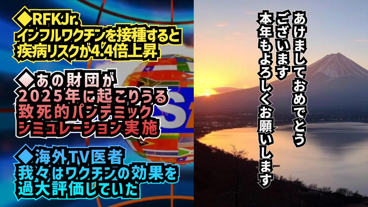 「人道に対する罪」<br><br>「インフルエンザワクチンを接種すると、病気になるリスクが4.4倍高まるのです。<br><br>この事実は、ペンタゴンが公開した論文にも記されています。」<br>ロバート・F・ケネディ・ジュニア<br><a href="https://x.com/liz_churchill10/status/1873461377547092084?t=mGtepxAYApZMF8K_afC2ow&s=19" target="_blank" rel="noopener nofollow">https://x.com/liz_churchill10/status/1873461377547092084?t=mGtepxAYApZMF8K_afC2ow&s=19</a><br><br><br>ビル・アンド・メリンダ・ゲイツ財団は、ジョンズ・ホプキンズ健康安全保障センターと世界保健機関(WHO)との協力の下、2025年に起こりうる致死的なパンデミックを想定したシミュレーション「カタストロフィック・コンテイジョン」を実施しました。<br><br>今回のシミュレーションでは、「SEERS」と呼ばれるエンテロウイルスによって引き起こされるアウトブレイクが、COVID-19よりも高い致死率を持ち、特に子供に大きな影響を与えるという設定でした。<br><br>パネルでは、COVID-19危機からの教訓を検討し、社会の統制、プロパガンダ、そして教会の閉鎖といった論争の多いトピックについて議論されました。<br>曰本語<br><a href="https://x.com/AaronOtsuka/status/1873508671160017333?t=Jj-nI8E9_n0WLa4Q_ALpiA&s=19" target="_blank" rel="noopener nofollow">https://x.com/AaronOtsuka/status/1873508671160017333?t=Jj-nI8E9_n0WLa4Q_ALpiA&s=19</a><br>英語<br><a href="https://x.com/ShadowofEzra/status/1873453919625765043?t=NDBsS1AP-WpVJYNDfQKKFA&s=19" target="_blank" rel="noopener nofollow">https://x.com/ShadowofEzra/status/1873453919625765043?t=NDBsS1AP-WpVJYNDfQKKFA&s=19</a><br><br>※サイバー攻撃中、やる気失せて台本だけ書いていたっぽいです<br>SEERS<br><a href="https://keiichiro8140.hatenablog.com/entry/2024/07/07/102359" target="_blank" rel="noopener nofollow">https://keiichiro8140.hatenablog.com/entry/2024/07/07/102359</a><br><br>「なんてひどい嘘つきなんだ!」<br><br>「私は、このワクチンが感染を防ぐものではないと知っていましたし、私たちはワクチンの効果を過大評価していたと思います」<br>デボラ・バークス博士<br><br>彼女はかつて「コロナワクチンは重症化を防ぐ」と主張していましたが、その後、「亡くなった人の50%はワクチン接種を受けていた」と発言しました。<br><a href="https://x.com/liz_churchill10/status/1873840806827876695?t=Aea4NWyTb45UE1kqJ1t4mQ&s=09" target="_blank" rel="noopener nofollow">https://x.com/liz_churchill10/status/1873840806827876695?t=Aea4NWyTb45UE1kqJ1t4mQ&s=09</a><br><br><br />著作権、肖像権に配慮して作成しております。<br><br>◆気になったニュースの台本!?<br>メモ代わりに作った台本をそのままあげてます<br><a href="https://keiichiro8140.hatenablog.com/." target="_blank" rel="noopener nofollow">https://keiichiro8140.hatenablog.com/.</a><br><br><br>ここからはシリーズ紹介<br><br><br>◆ ワクチン解毒・デトックス<br><a href="https://x.gd/fZweg" target="_blank" rel="noopener nofollow">https://x.gd/fZweg</a><br><br>◆ウイリアム・マキス博士のがん治療(イベルメクチン・フェンベンダゾール等)<br><a href="https://x.gd/AtFYS" target="_blank" rel="noopener nofollow">https://x.gd/AtFYS</a><br><br>◆予防接種健康被害救済制度<br><a href="https://x.gd/0xK9x" target="_blank" rel="noopener nofollow">https://x.gd/0xK9x</a><br><br>◆気になったニュース #1501~<br><br>◆ 【ショートver】気になったニュース<br><a href="https://x.gd/7MxXC" target="_blank" rel="noopener nofollow">https://x.gd/7MxXC</a><br><br>◆ 気になったニュース #1001~<br><a href="https://x.gd/Lp8gv" target="_blank" rel="noopener nofollow">https://x.gd/Lp8gv</a><br><br>◆ 気になったニュース #501~<br><a href="https://x.gd/EmbS4" target="_blank" rel="noopener nofollow">https://x.gd/EmbS4</a><br><br>◆ 気になったニュース #1~#500<br><a href="https://x.gd/uPhNb" target="_blank" rel="noopener nofollow">https://x.gd/uPhNb</a><br><br>◆ X(旧Twitter)・テレグラムで気になった情報<br><a href="https://x.gd/YG6FT" target="_blank" rel="noopener nofollow">https://x.gd/YG6FT</a><br><br>◆ 日比谷5万人パレードデ⚪生放送アーカイブ動画<br><a href="https://x.gd/3CHJv" target="_blank" rel="noopener nofollow">https://x.gd/3CHJv</a><br><br>◆日比谷5万人パレード⚪モのマイリスト作ってみました<br><a href="https://nico.ms/mylist/76828848?ref=sp_other" target="_blank" rel="noopener nofollow">https://nico.ms/mylist/76828848?ref=sp_other</a><br><br>◆3.30 令和の百姓⚪⚪<br><a href="https://www.nicovideo.jp/series/511791?ref=garage_share_other" target="_blank" rel="noopener nofollow">https://www.nicovideo.jp/series/511791?ref=garage_share_other</a><br><br>◆ 及川幸久さんの【XNEWS】シリーズ<br><a href="https://x.gd/3k78K" target="_blank" rel="noopener nofollow">https://x.gd/3k78K</a><br><br>◆これまでの動画<a href="https://x.gd/sPXoJ" target="_blank" rel="noopener nofollow">https://x.gd/sPXoJ</a><br><br>◆もしも(BAN)の時のためのマイリンク集<a href="https://lit.link/K-16_News44" target="_blank" rel="noopener nofollow">https://lit.link/K-16_News44</a><br><br>