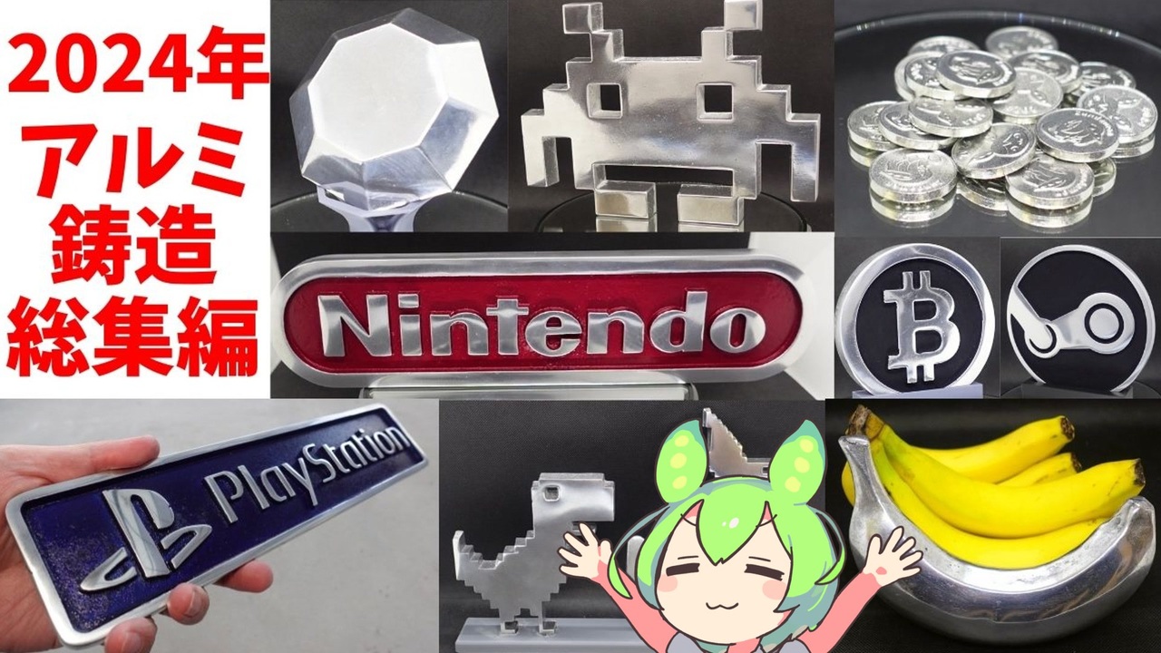 2024年も動画のご視聴ありがとうございました! <br>来年も応援よろしくお願いします!<br><br>前回の動画<br><br>【鋳造】アルミを溶かしてバナナを作る【ずんだもん】<br><a href="https://www.nicovideo.jp/watch/sm44470924" target="_blank" rel="noopener nofollow">https://www.nicovideo.jp/watch/sm44470924</a><br><br>マイリスト<br><a href="https://www.nicovideo.jp/mylist/73255145" target="_blank" rel="noopener">mylist/73255145</a><br><br>動画内で作ったもの <br>【BOOTH】<br><a href="https://ma-kuimono.booth.pm/" target="_blank" rel="noopener nofollow">https://ma-kuimono.booth.pm/</a><br><br>ほしい物リスト<br><a href="https://www.amazon.jp/hz/wishlist/ls/D6BZ2PH408XE?ref_=wl_share" target="_blank" rel="noopener nofollow">https://www.amazon.jp/hz/wishlist/ls/D6BZ2PH408XE?ref_=wl_share</a><br><br>YouTube<br><a href="https://www.youtube.com/@ma-kuimono" target="_blank" rel="noopener nofollow">https://www.youtube.com/@ma-kuimono</a><br><br>X【Twitter】<br><a href="https://twitter.com/ma_kuimono" target="_blank" rel="noopener nofollow">https://twitter.com/ma_kuimono</a><br><br>その他リンクまとめ<br><a href="https://lit.link/makuimono" target="_blank" rel="noopener nofollow">https://lit.link/makuimono</a><br><br>VOICEVOX:ずんだもん<br>立ち絵:坂本アヒル