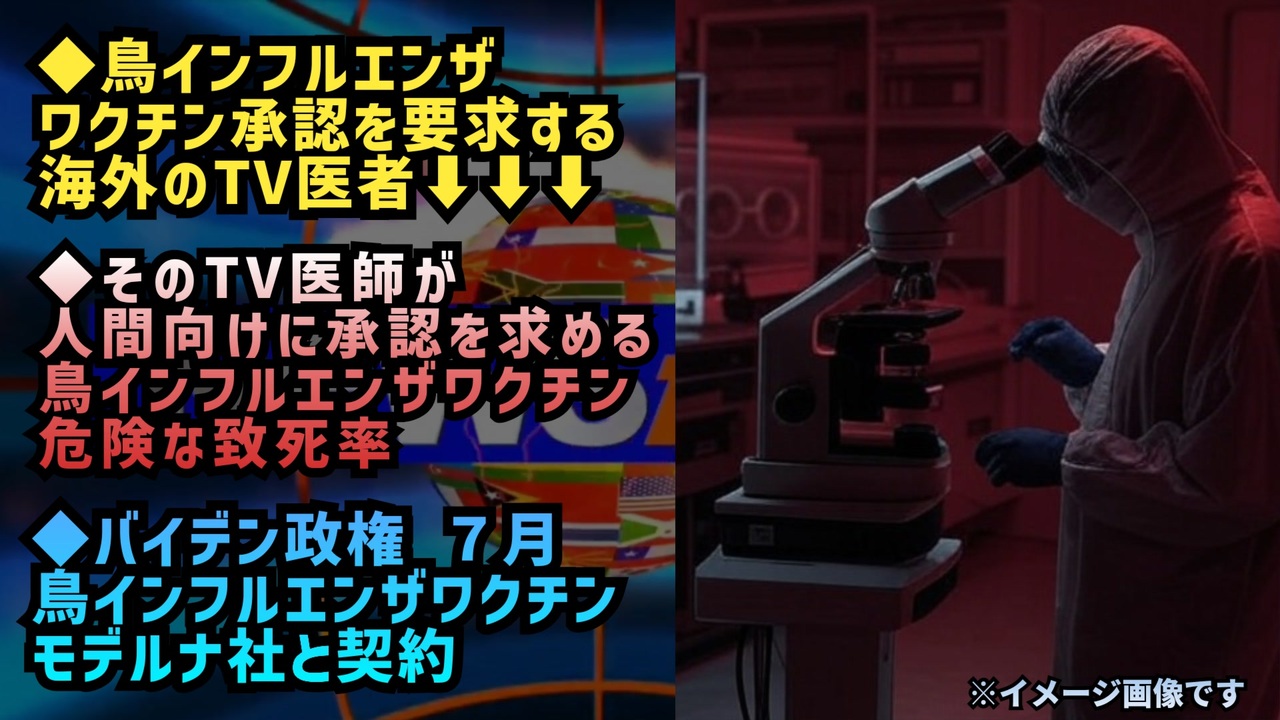 新型コロナワクチン接種は未接種と比較してコロナ感染の可能性1.85倍。接種回数1~2回で1.63倍、3~4回で2.04倍、5~7回で2.21倍<br><a href="https://x.gd/cvEem" target="_blank" rel="noopener nofollow">https://x.gd/cvEem</a><br><br><br>「今すぐFDAが鳥インフルエンザワクチンを承認すべきだ」とリアナ・ウェン医師が発言<br><br>「H5N1型(鳥インフルエンザ)に対するワクチンはすでに開発されています。バイデン政権は製造業者と契約を結び、約500万回分のワクチンを用意しました。しかし、FDA(アメリカ食品医薬品局)にこのワクチンの承認を求めていません。今すぐ承認を申請し、ワクチンを配布できる状態にするべきです」と語っています。<br><br>リアナ・ウェン医師は、早急な対応が必要だと警鐘を鳴らしています。<br><a href="https://x.gd/UvdGb" target="_blank" rel="noopener nofollow">https://x.gd/UvdGb</a><br><br><br>リアナ・ウェン医師が人間向けに承認を求める鳥インフルエンザワクチン「AUDENZ」について<br><br>彼女が人間用に承認を求めているワクチン「AUDENZ」は、製薬会社CSL Seqirusによって開発されたものです。しかし、臨床試験「Study 3」の結果では、このワクチンを接種した人の死亡率が200人に1人(0.5%)と報告されており、これはプラセボ群の死亡率(0.1%)の5倍に相当します。<br><br>このような致命的なリスクのあるワクチンが人間用として承認されるべきではありません。<br><a href="https://x.gd/ITLWh" target="_blank" rel="noopener nofollow">https://x.gd/ITLWh</a><br><br><br>バイデン政権、mRNA鳥インフルエンザワクチンについてモデルナ社と契約<br><br>ジュディ・シャーマン<br>2024 年 7 月 3 日<br><br>「驚くべきことではありませんか?彼らがどの病原体が『発生する』か、そして全員が『必要とする』であろう『ワクチン』を、6か月も前に『魔法のように予測』できるなんて。」<br><a href="https://x.gd/tUm9e" target="_blank" rel="noopener nofollow">https://x.gd/tUm9e</a><br><br><br>新型コロナワクチン<br>鳥インフルエンザワクチン<br>AUDENZ<br>CSL<br>ワクチン<br>FDA<br>バイデン政権<br>モデルナ<br>致死率<br>mRNAワクチン<br>次のパンデミック<br><br />著作権、肖像権に配慮して作成しております。<br><br>◆気になったニュースの台本!?<br>メモ代わりに作った台本をそのままあげてます<br><a href="https://keiichiro8140.hatenablog.com/." target="_blank" rel="noopener nofollow">https://keiichiro8140.hatenablog.com/.</a><br><br><br>ここからはシリーズ紹介<br><br><br>◆ ワクチン解毒・デトックス<br><a href="https://x.gd/fZweg" target="_blank" rel="noopener nofollow">https://x.gd/fZweg</a><br><br>◆ウイリアム・マキス博士のがん治療(イベルメクチン・フェンベンダゾール等)<br><a href="https://x.gd/AtFYS" target="_blank" rel="noopener nofollow">https://x.gd/AtFYS</a><br><br>◆予防接種健康被害救済制度<br><a href="https://x.gd/0xK9x" target="_blank" rel="noopener nofollow">https://x.gd/0xK9x</a><br><br>◆気になったニュース #1501~<br><br>◆ 【ショートver】気になったニュース<br><a href="https://x.gd/7MxXC" target="_blank" rel="noopener nofollow">https://x.gd/7MxXC</a><br><br>◆ 気になったニュース #1001~<br><a href="https://x.gd/Lp8gv" target="_blank" rel="noopener nofollow">https://x.gd/Lp8gv</a><br><br>◆ 気になったニュース #501~<br><a href="https://x.gd/EmbS4" target="_blank" rel="noopener nofollow">https://x.gd/EmbS4</a><br><br>◆ 気になったニュース #1~#500<br><a href="https://x.gd/uPhNb" target="_blank" rel="noopener nofollow">https://x.gd/uPhNb</a><br><br>◆ X(旧Twitter)・テレグラムで気になった情報<br><a href="https://x.gd/YG6FT" target="_blank" rel="noopener nofollow">https://x.gd/YG6FT</a><br><br>◆ 日比谷5万人パレードデ⚪生放送アーカイブ動画<br><a href="https://x.gd/3CHJv" target="_blank" rel="noopener nofollow">https://x.gd/3CHJv</a><br><br>◆日比谷5万人パレード⚪モのマイリスト作ってみました<br><a href="https://nico.ms/mylist/76828848?ref=sp_other" target="_blank" rel="noopener nofollow">https://nico.ms/mylist/76828848?ref=sp_other</a><br><br>◆3.30 令和の百姓⚪⚪<br><a href="https://www.nicovideo.jp/series/511791?ref=garage_share_other" target="_blank" rel="noopener nofollow">https://www.nicovideo.jp/series/511791?ref=garage_share_other</a><br><br>◆ 及川幸久さんの【XNEWS】シリーズ<br><a href="https://x.gd/3k78K" target="_blank" rel="noopener nofollow">https://x.gd/3k78K</a><br><br>◆これまでの動画<a href="https://x.gd/sPXoJ" target="_blank" rel="noopener nofollow">https://x.gd/sPXoJ</a><br><br>◆もしも(BAN)の時のためのマイリンク集<a href="https://lit.link/K-16_News44" target="_blank" rel="noopener nofollow">https://lit.link/K-16_News44</a><br><br>