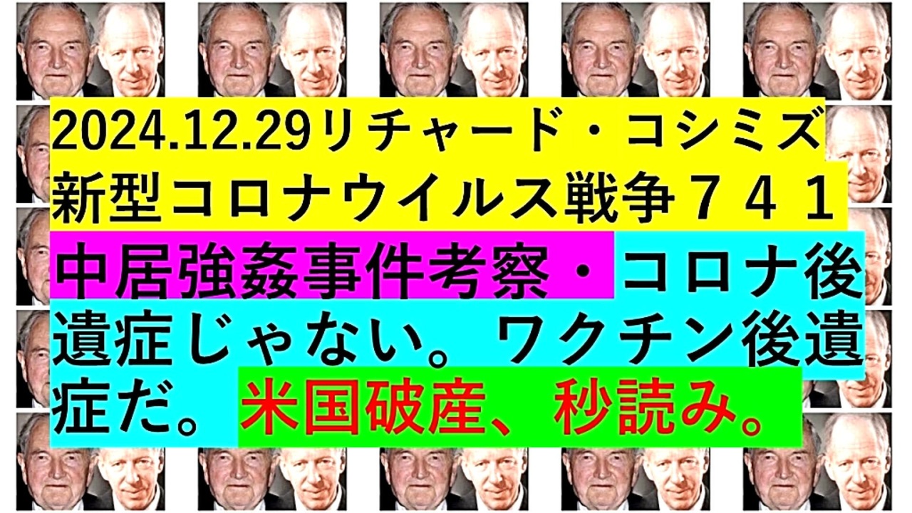 <span style="color: #cc0000;"><strong>◐【 テーマ : 新型コロナウイルス戦争⦅ 741 ⦆⦅ 暫定版 ⦆】</strong></span><br><br> <span style="color: #ff0000;"><strong>「『 中居正広 強姦事件考察 』・『 コロナ後遺症じゃない 。 ワクチン後遺症だ 』・『 米国破産、秒読み 』」</strong></span><br><br> <span style="color: #38761d;"><strong>◐ 『 リチャード・コシミズ・チャンネル⦅ ニコニコ チャンネル ⦆』</strong></span><br> <span style="color: #0000ff;"><strong><a href="https://ch.nicovideo.jp/richardkoshimizu" target="_blank" rel="noopener nofollow">https://ch.nicovideo.jp/richardkoshimizu</a></strong></span><br><br> <span style="color: #38761d;"><strong>◐ 『 リチャード・コシミズ「 ニコニコ生放送⦅ LIVE ⦆」』</strong></span><br> <span style="color: #0000ff;"><strong><a href="https://www.nicovideo.jp/user/120930363/live_programs" target="_blank" rel="noopener nofollow">https://www.nicovideo.jp/user/120930363/live_programs</a></strong></span><br><br> <span style="color: #38761d;"><strong>◐ 『 リチャード・コシミズ「 Rumble 」公式 動画ギャラリー 』</strong></span><br> <span style="color: #0000ff;"><strong><a href="https://rumble.com/user/richardkoshimizu" target="_blank" rel="noopener nofollow">https://rumble.com/user/richardkoshimizu</a></strong></span><br> <span style="color: #0000ff;"><strong><a href="https://rumble.com/user/RKVideoGallery" target="_blank" rel="noopener nofollow">https://rumble.com/user/RKVideoGallery</a></strong></span><br><br> <span style="color: #38761d;"><strong>◐『「 リチャード・コシミズ 講演会 」公式「 動画ギャラリー 」』</strong></span><br> <span style="color: #0000ff;"><strong><a href="http://www.t-sskk.com/richardkoshimizu/video-gallery/index.html" target="_blank" rel="noopener nofollow">http://www.t-sskk.com/richardkoshimizu/video-gallery/index.html</a></strong></span><br><br>