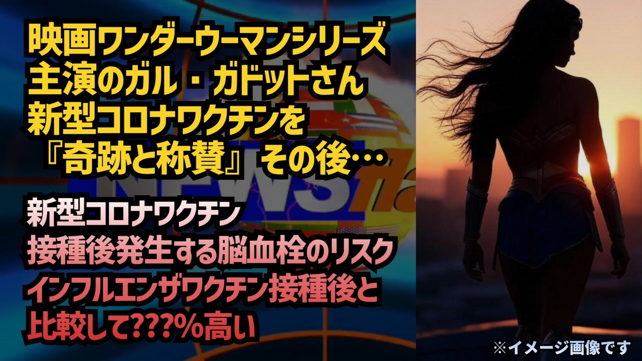 ワンダーウーマンが新型コロナワクチンを「奇跡」と称賛<br><br>しかし、その後、新型コロナワクチンの深刻な副作用として知られる頭蓋内血栓症に苦しむことに<br><br>多くの人々が彼女がこの事実を認め、他者に警鐘を鳴らすのかどうか注目しています<br>X(旧Twitter)<br><a href="https://x.gd/3HBzK" target="_blank" rel="noopener nofollow">https://x.gd/3HBzK</a><br><br>NBC<br><a href="https://x.gd/quGBD" target="_blank" rel="noopener nofollow">https://x.gd/quGBD</a><br><br><br>ワンダーウーマンの主演女優、ガル・ガドットさんは、妊娠8か月の時に脳血栓が見つかり、緊急手術を受けました。この原因は、新型コロナウイルスワクチンの接種による可能性が高いとされています。<br><br>Rogersらの研究によると、新型コロナウイルスワクチン接種後に発生する脳血栓(脳内の血栓)に関する安全性シグナルが非常に大きいことが判明しました。同研究では、新型コロナワクチン接種後に発生する脳血栓のリスクが、インフルエンザワクチン接種後と比較して112,000%高いと報告されています。<br><br>詳細はこちら:<br><a href="https://ijirms.in/index.php/ijirms/article/view/1982" target="_blank" rel="noopener nofollow">https://ijirms.in/index.php/ijirms/article/view/1982</a><br><br><a href="https://x.gd/weDZr" target="_blank" rel="noopener nofollow">https://x.gd/weDZr</a><br><br><br>新型コロナワクチン接種者において脳血栓塞栓症(脳血栓)が発生することは、決して予想外の事態ではありません。Rogersらの研究で検出された「巨大な脳血栓の安全性シグナル」がその理由を明らかにしています。<br><br>研究によれば、脳血栓(脳血栓塞栓症の有害事象)は、インフルエンザワクチン接種後と比較して、新型コロナワクチン接種後に発生する確率が112,000%も高いことが判明しました。また、新型コロナワクチンを他の全てのワクチンと比較した場合、その確率は20,700%高いとされています。新型コロナワクチン接種後、わずか3年間(36か月)で報告された脳血栓の症例数は5,137件に上ります。一方、インフルエンザワクチンでは過去34年間(408か月)でわずか52件の報告に留まっています。<br>@GalGadot<br><a href="https://x.gd/XKl5a" target="_blank" rel="noopener nofollow">https://x.gd/XKl5a</a><br><br><br>医師たちへ…どうしてこんなことができるのですか?妊婦さんの目を見て、この実験的な製品が安全だと言うなんて、どうしてそんなことができるのですか?<br>①<a href="https://x.gd/SMqwp" target="_blank" rel="noopener nofollow">https://x.gd/SMqwp</a><br>②<a href="https://x.gd/LwdqZ" target="_blank" rel="noopener nofollow">https://x.gd/LwdqZ</a><br><br>ハリウッドセレブ カマラハリス支持<br><a href="https://x.com/i/grok/share/BxeEFORdEtbTN5mTNCXLm2soS" target="_blank" rel="noopener nofollow">https://x.com/i/grok/share/BxeEFORdEtbTN5mTNCXLm2soS</a><br><br><br><br />著作権、肖像権に配慮して作成しております。<br><br>◆気になったニュースの台本!?<br>メモ代わりに作った台本をそのままあげてます<br><a href="https://keiichiro8140.hatenablog.com/." target="_blank" rel="noopener nofollow">https://keiichiro8140.hatenablog.com/.</a><br><br><br>ここからはシリーズ紹介<br><br><br>◆ ワクチン解毒・デトックス<br><a href="https://x.gd/fZweg" target="_blank" rel="noopener nofollow">https://x.gd/fZweg</a><br><br>◆ウイリアム・マキス博士のがん治療(イベルメクチン・フェンベンダゾール等)<br><a href="https://x.gd/AtFYS" target="_blank" rel="noopener nofollow">https://x.gd/AtFYS</a><br><br>◆予防接種健康被害救済制度<br><a href="https://x.gd/0xK9x" target="_blank" rel="noopener nofollow">https://x.gd/0xK9x</a><br><br>◆気になったニュース #1501~<br><br>◆ 【ショートver】気になったニュース<br><a href="https://x.gd/7MxXC" target="_blank" rel="noopener nofollow">https://x.gd/7MxXC</a><br><br>◆ 気になったニュース #1001~<br><a href="https://x.gd/Lp8gv" target="_blank" rel="noopener nofollow">https://x.gd/Lp8gv</a><br><br>◆ 気になったニュース #501~<br><a href="https://x.gd/EmbS4" target="_blank" rel="noopener nofollow">https://x.gd/EmbS4</a><br><br>◆ 気になったニュース #1~#500<br><a href="https://x.gd/uPhNb" target="_blank" rel="noopener nofollow">https://x.gd/uPhNb</a><br><br>◆ X(旧Twitter)・テレグラムで気になった情報<br><a href="https://x.gd/YG6FT" target="_blank" rel="noopener nofollow">https://x.gd/YG6FT</a><br><br>◆ 日比谷5万人パレードデ⚪生放送アーカイブ動画<br><a href="https://x.gd/3CHJv" target="_blank" rel="noopener nofollow">https://x.gd/3CHJv</a><br><br>◆日比谷5万人パレード⚪モのマイリスト作ってみました<br><a href="https://nico.ms/mylist/76828848?ref=sp_other" target="_blank" rel="noopener nofollow">https://nico.ms/mylist/76828848?ref=sp_other</a><br><br>◆3.30 令和の百姓⚪⚪<br><a href="https://www.nicovideo.jp/series/511791?ref=garage_share_other" target="_blank" rel="noopener nofollow">https://www.nicovideo.jp/series/511791?ref=garage_share_other</a><br><br>◆ 及川幸久さんの【XNEWS】シリーズ<br><a href="https://x.gd/3k78K" target="_blank" rel="noopener nofollow">https://x.gd/3k78K</a><br><br>◆これまでの動画<a href="https://x.gd/sPXoJ" target="_blank" rel="noopener nofollow">https://x.gd/sPXoJ</a><br><br>◆もしも(BAN)の時のためのマイリンク集<a href="https://lit.link/K-16_News44" target="_blank" rel="noopener nofollow">https://lit.link/K-16_News44</a><br><br>