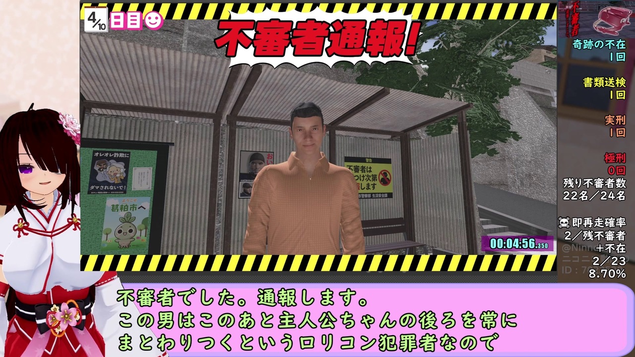 あけおめで走るゲームなのかなこれ・・・ <br><br>このゲームの初見実況→<a href="https://www.nicovideo.jp/mylist/77403237" target="_blank" rel="noopener">mylist/77403237</a><br>RTAマイリスト→<a href="https://www.nicovideo.jp/mylist/69428960" target="_blank" rel="noopener">mylist/69428960</a> <br>普通の実況等のマイリスト→<a href="https://www.nicovideo.jp/mylist/73122841" target="_blank" rel="noopener">mylist/73122841</a><br>ーーーーーーーーーーーーーーーーーーーーーーーーーーーーーーー<br><br><strong><u>◆RTAレギュレーション◆<br>・ノーマルエンドRTA<br>・開始前にオプションでデータの初期化をする<br>・計測区間:ニューゲームを押した瞬間~最後「・・・ニチャァ」のウィンドウが閉じた瞬間</u></strong><br><br>タイマーのみの無編集版→<a href="https://youtu.be/l-gOGg1uJAY" target="_blank" rel="noopener nofollow">https://youtu.be/l-gOGg1uJAY</a><br>(YouTubeに飛びます)<br><br>ーーーーーーーーーーーーーーーーーーーーーーーーーーーーーーー<br><br>不審者通報しました。:ホラーストーリー<br>このゲームのsteamストアURL<br>→<a href="https://store.steampowered.com/app/3214390/_/?l=japanese" target="_blank" rel="noopener nofollow">https://store.steampowered.com/app/3214390/_/?l=japanese</a> <br><br>ーーーーーーーーーーーーーーーーーーーーーーーーーーーーーーー<br><br>カスタムオーダーメイド3D2(COM3D2)及び<br>バーチャルアバタースタジオを使用しています。<br>今回のゆっくり以外の使用ボイス<br>→なし