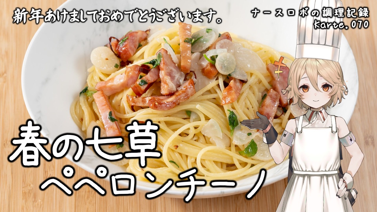 <span style="font-size: 16px;"><strong>あけましておめでとうございます。□</strong></span><br><br>Part70は春の七草を使ったペペロンチーノです!<br>明日1/7は七草粥を食べるのが一般的ですが、<br>変わり種のパスタはいかがですか?<br>今回は作りやすいペペロンチーノで作っていきます。<br>是非試してみてくださいね。<br><br>音声: VOICEVOX:ナースロボ_タイプT<br>立ち絵: 捨て犬A<br>イラスト: いらすとや<br>SE: otologic, 効果音ラボ<br>BGM: BGMer, 深 淵 (@fuka_fukashi)<br /><br>[各種リンク]<br>ニコニコ動画: <a href="http://nicovideo.jp/user/130153578" target="_blank" rel="noopener nofollow">http://nicovideo.jp/user/130153578</a><br>YouTubeメイン(料理): <a href="http://youtube.com/@cooking25euph" target="_blank" rel="noopener nofollow">http://youtube.com/@cooking25euph</a><br>YouTubeサブ(料理以外): <a href="https://youtube.com/@sub25euph" target="_blank" rel="noopener nofollow">https://youtube.com/@sub25euph</a><br>X (twitter): <a href="https://twitter.com/nico25euph" target="_blank" rel="noopener nofollow">https://twitter.com/nico25euph</a><br>Bluesky: <a href="http://nico25euph.bsky.social" target="_blank" rel="noopener nofollow">http://nico25euph.bsky.social</a><br>TikTok: <a href="http://tiktok.com/@nico25euph" target="_blank" rel="noopener nofollow">http://tiktok.com/@nico25euph</a>