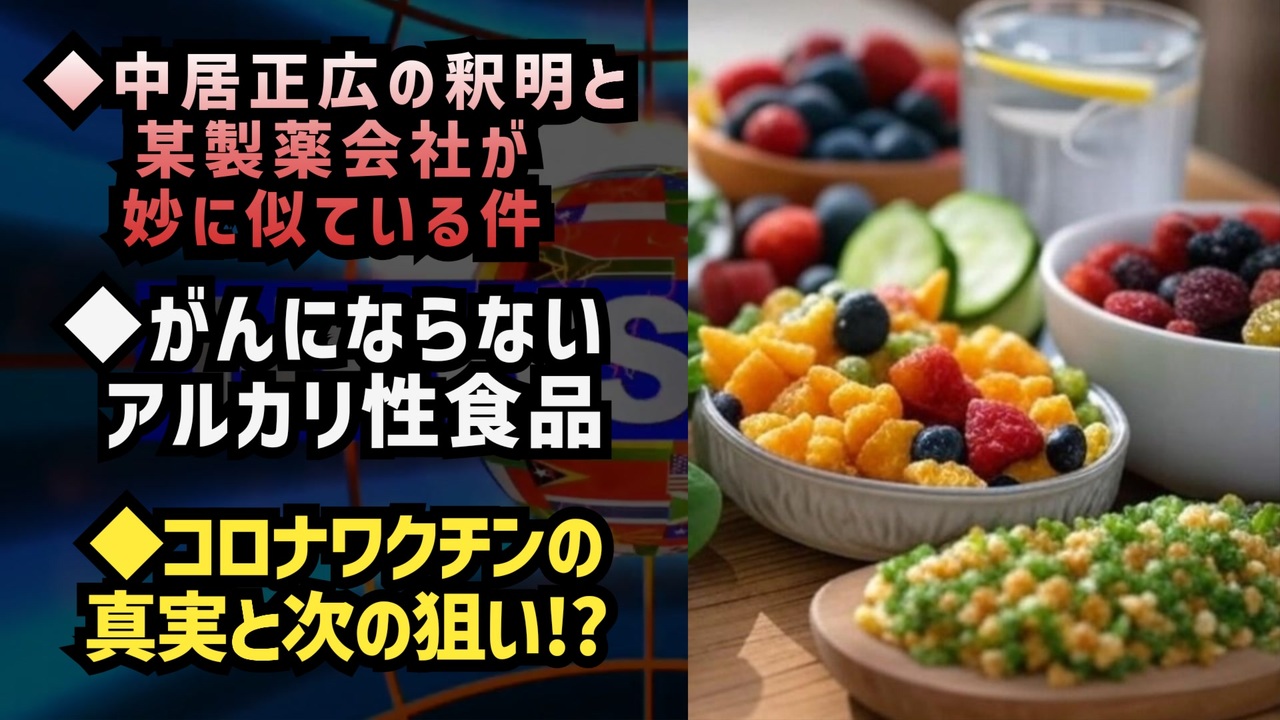 代表的なアルカリ性食品一覧<br><br>野菜 ほうれん草 ブロッコリー<br><br>キャベツアスパラガス <br><br>キュウリ セロリ<br><br>にんじん 大根 カボチャ<br><br><br>果物<br><br>レモン(酸性に見えますが体内ではアルカリ性として作用します)<br><br>グレープフルーツ ライム<br><br>アボカド バナナ<br><br>メロン(特にカンタロープやスイカ)<br><br>リンゴ 洋ナシ イチゴ<br><br><br>海藻類<br><br>昆布 わかめ <br><br>ひじき のり<br><br><br>その他<br><br>アーモンド くるみ(一部は中性に近い)<br><br>大豆製品(豆腐、納豆など)<br><br>ハーブティー オリーブオイル<br><br><br>中居正宏の釈明文。「示談したんだから問題ないんだよ」という太々しさが、あのワクチンメーカーが「厚労省が承認したんだから問題ないんだよ」という太々しさと妙にリンクして、吐き気がした。<br>どっちもズレてるし、舐め過ぎ。<br><a href="https://x.com/Trilliana_x/status/1877649723810558004?t=2umwLGLUpPx-QUBh_P94BA&s=19" target="_blank" rel="noopener nofollow">https://x.com/Trilliana_x/status/1877649723810558004?t=2umwLGLUpPx-QUBh_P94BA&s=19</a><br><br><br>中居正広さんの件、示談の意味では本人間で解決済みってことなんだろうけど、無理やり受け取らされた可能性もあるよね。<br><br>↓のような状況って何したらこんなことなるんだろ…怖過ぎる。<br><a href="https://x.com/glide_strangle/status/1877606209064452203?t=efJflugnPLhNT7sbAGEJ3A&s=19" target="_blank" rel="noopener nofollow">https://x.com/glide_strangle/status/1877606209064452203?t=efJflugnPLhNT7sbAGEJ3A&s=19</a><br><br><br>アルカリ性食品については信じるか信じないかはあなた次第でお願いします(ChatGPTに聞いてみました)<br><br><br><br>2024.1.10鹿先生 (2025?)<br>もうコロナワクチン効かないし毒だということがバレて打つ人いなくなった。<br>カリコさんは当初ワクチンとして使えないという認識だったのに、ファイザーが感染予防があると言って、全世界で打たせて、金儲けをした<br><br>コメ:<br>今後は癌が流行るから、製薬会社はそれで金儲けを考えてる<br><a href="https://x.com/fseiichizb4/status/1877663231793058027?t=dXAuyWLo8NrLC3TyAOEYcg&s=19" target="_blank" rel="noopener nofollow">https://x.com/fseiichizb4/status/1877663231793058027?t=dXAuyWLo8NrLC3TyAOEYcg&s=19</a><br><br><br><br />著作権、肖像権に配慮して作成しております。<br><br>◆気になったニュースの台本!?<br>メモ代わりに作った台本をそのままあげてます<br><a href="https://keiichiro8140.hatenablog.com/." target="_blank" rel="noopener nofollow">https://keiichiro8140.hatenablog.com/.</a><br><br><br>ここからはシリーズ紹介<br><br><br>◆ ワクチン解毒・デトックス<br><a href="https://x.gd/fZweg" target="_blank" rel="noopener nofollow">https://x.gd/fZweg</a><br><br>◆ウイリアム・マキス博士のがん治療(イベルメクチン・フェンベンダゾール等)<br><a href="https://x.gd/AtFYS" target="_blank" rel="noopener nofollow">https://x.gd/AtFYS</a><br><br>◆予防接種健康被害救済制度<br><a href="https://x.gd/0xK9x" target="_blank" rel="noopener nofollow">https://x.gd/0xK9x</a><br><br>◆気になったニュース #1501~<br><br>◆ 【ショートver】気になったニュース<br><a href="https://x.gd/7MxXC" target="_blank" rel="noopener nofollow">https://x.gd/7MxXC</a><br><br>◆ 気になったニュース #1001~<br><a href="https://x.gd/Lp8gv" target="_blank" rel="noopener nofollow">https://x.gd/Lp8gv</a><br><br>◆ 気になったニュース #501~<br><a href="https://x.gd/EmbS4" target="_blank" rel="noopener nofollow">https://x.gd/EmbS4</a><br><br>◆ 気になったニュース #1~#500<br><a href="https://x.gd/uPhNb" target="_blank" rel="noopener nofollow">https://x.gd/uPhNb</a><br><br>◆ X(旧Twitter)・テレグラムで気になった情報<br><a href="https://x.gd/YG6FT" target="_blank" rel="noopener nofollow">https://x.gd/YG6FT</a><br><br>◆ 日比谷5万人パレードデ⚪生放送アーカイブ動画<br><a href="https://x.gd/3CHJv" target="_blank" rel="noopener nofollow">https://x.gd/3CHJv</a><br><br>◆日比谷5万人パレード⚪モのマイリスト作ってみました<br><a href="https://nico.ms/mylist/76828848?ref=sp_other" target="_blank" rel="noopener nofollow">https://nico.ms/mylist/76828848?ref=sp_other</a><br><br>◆3.30 令和の百姓⚪⚪<br><a href="https://www.nicovideo.jp/series/511791?ref=garage_share_other" target="_blank" rel="noopener nofollow">https://www.nicovideo.jp/series/511791?ref=garage_share_other</a><br><br>◆ 及川幸久さんの【XNEWS】シリーズ<br><a href="https://x.gd/3k78K" target="_blank" rel="noopener nofollow">https://x.gd/3k78K</a><br><br>◆これまでの動画<a href="https://x.gd/sPXoJ" target="_blank" rel="noopener nofollow">https://x.gd/sPXoJ</a><br><br>◆もしも(BAN)の時のためのマイリンク集<a href="https://lit.link/K-16_News44" target="_blank" rel="noopener nofollow">https://lit.link/K-16_News44</a><br><br>