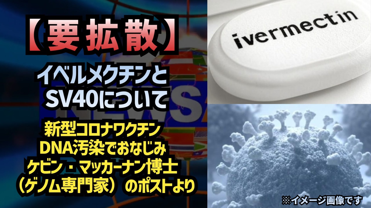 イベルメクチンとSV40の研究<br><br>イベルメクチンは、寄生虫駆除薬として知られる一方で、抗ウイルス効果も持つ薬です。特に、SV40(シミアンウイルス40)などのウイルスに対し、ウイルスが宿主細胞の核へ重要なタンパク質を運ぶ「インポーチンα/β1経路」を阻害することで、その増殖を抑える効果があります。研究では、SV40の増殖に不可欠なタンパク質「T抗原(TAg)」の核内輸送を阻害することが確認されています。この作用は、HIV-1やデングウイルスを含む多くのウイルスにも有効とされています。イベルメクチンのこうした広範な抗ウイルス効果は、新たな治療法として期待されています。<br><br>Ivermectin and SV40<br><a href="https://x.com/Kevin_McKernan/status/1877738067500372224?t=V6311Agezszf_YQHadg_hQ&s=19" target="_blank" rel="noopener nofollow">https://x.com/Kevin_McKernan/status/1877738067500372224?t=V6311Agezszf_YQHadg_hQ&s=19</a><br><br>翻訳版<br><a href="https://x.com/KEIICHIRO8140/status/1877749241377866231?t=UJxhlsVSPmuG7Of6KrdO2Q&s=19" target="_blank" rel="noopener nofollow">https://x.com/KEIICHIRO8140/status/1877749241377866231?t=UJxhlsVSPmuG7Of6KrdO2Q&s=19</a><br><br><br>「ワクチンは、SV40という物質によってP53遺伝子を抑制し、結果的にがんを引き起こすことを目的として設計されている」という主張があります。これにより、人口を減少させると同時に、数兆円規模の『化学療法・製薬業界』を生み出そうとしている、という懸念が示されています<br><br>私たちは、こうした問題が解明されるまで、「ビル・ゲイツが関与するすべてのワクチン」に対する即時の使用停止を求める必要があります<br><a href="https://x.com/liz_churchill10/status/1877758396008464441?t=tosTeffx29ktOyOHfquWzQ&s=19" target="_blank" rel="noopener nofollow">https://x.com/liz_churchill10/status/1877758396008464441?t=tosTeffx29ktOyOHfquWzQ&s=19</a><br><br><br />著作権、肖像権に配慮して作成しております。<br><br>◆気になったニュースの台本!?<br>メモ代わりに作った台本をそのままあげてます<br><a href="https://keiichiro8140.hatenablog.com/." target="_blank" rel="noopener nofollow">https://keiichiro8140.hatenablog.com/.</a><br><br><br>ここからはシリーズ紹介<br><br><br>◆ ワクチン解毒・デトックス<br><a href="https://x.gd/fZweg" target="_blank" rel="noopener nofollow">https://x.gd/fZweg</a><br><br>◆ウイリアム・マキス博士のがん治療(イベルメクチン・フェンベンダゾール等)<br><a href="https://x.gd/AtFYS" target="_blank" rel="noopener nofollow">https://x.gd/AtFYS</a><br><br>◆予防接種健康被害救済制度<br><a href="https://x.gd/0xK9x" target="_blank" rel="noopener nofollow">https://x.gd/0xK9x</a><br><br>◆気になったニュース #1501~<br><br>◆ 【ショートver】気になったニュース<br><a href="https://x.gd/7MxXC" target="_blank" rel="noopener nofollow">https://x.gd/7MxXC</a><br><br>◆ 気になったニュース #1001~<br><a href="https://x.gd/Lp8gv" target="_blank" rel="noopener nofollow">https://x.gd/Lp8gv</a><br><br>◆ 気になったニュース #501~<br><a href="https://x.gd/EmbS4" target="_blank" rel="noopener nofollow">https://x.gd/EmbS4</a><br><br>◆ 気になったニュース #1~#500<br><a href="https://x.gd/uPhNb" target="_blank" rel="noopener nofollow">https://x.gd/uPhNb</a><br><br>◆ X(旧Twitter)・テレグラムで気になった情報<br><a href="https://x.gd/YG6FT" target="_blank" rel="noopener nofollow">https://x.gd/YG6FT</a><br><br>◆ 日比谷5万人パレードデ⚪生放送アーカイブ動画<br><a href="https://x.gd/3CHJv" target="_blank" rel="noopener nofollow">https://x.gd/3CHJv</a><br><br>◆日比谷5万人パレード⚪モのマイリスト作ってみました<br><a href="https://nico.ms/mylist/76828848?ref=sp_other" target="_blank" rel="noopener nofollow">https://nico.ms/mylist/76828848?ref=sp_other</a><br><br>◆3.30 令和の百姓⚪⚪<br><a href="https://www.nicovideo.jp/series/511791?ref=garage_share_other" target="_blank" rel="noopener nofollow">https://www.nicovideo.jp/series/511791?ref=garage_share_other</a><br><br>◆ 及川幸久さんの【XNEWS】シリーズ<br><a href="https://x.gd/3k78K" target="_blank" rel="noopener nofollow">https://x.gd/3k78K</a><br><br>◆これまでの動画<a href="https://x.gd/sPXoJ" target="_blank" rel="noopener nofollow">https://x.gd/sPXoJ</a><br><br>◆もしも(BAN)の時のためのマイリンク集<a href="https://lit.link/K-16_News44" target="_blank" rel="noopener nofollow">https://lit.link/K-16_News44</a><br><br>