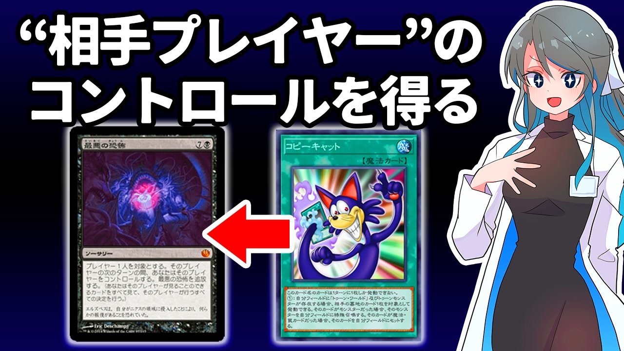 <span style="font-size: 18px;"><strong><i>“マジック&ウィザーズは実在した!! ゲームの正体は</i></strong></span><span style="color: #ff0000; font-size: 18px;"><strong><i>マジック:ザ・ギャザリング</i></strong></span><span style="font-size: 18px;"><strong><i>だ”</i></strong></span><br><span style="font-size: 10px;">※週刊少年ジャンプ1997年8号(2月3日号)より引用</span><br><br>本動画は、遊戯王が生まれるきっかけともなったTCGの元祖、マジック:ザ・ギャザリングで存在するカードや効果を、遊戯王カードに落とし込み、遊戯王プレイヤーとTCGの可能性を学んでいく温故知新な企画である。(ミナト先生の趣味ではない)<br><br>※単発ネタです。多分続かない。<br /><br>【素材・制作者様】<br><a href="https://kahaduxxxe.booth.pm/" target="_blank" rel="noopener nofollow">https://kahaduxxxe.booth.pm/</a><br><a href="https://twitter.com/akr_1020" target="_blank" rel="noopener nofollow">https://twitter.com/akr_1020</a><br>※許可を得て使用しております。<br><br>【Twitter】<br><a href="https://twitter.com/pi_ni_ki" target="_blank" rel="noopener nofollow">https://twitter.com/pi_ni_ki</a><br><br>【支援絵アルバム】<br><a href="https://note.com/pix989/n/nf5aab604fd77" target="_blank" rel="noopener nofollow">https://note.com/pix989/n/nf5aab604fd77</a>