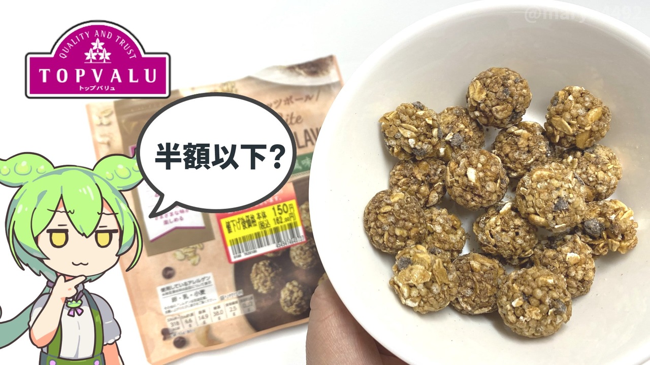 62%引きなので買ってみました、多分お菓子です。<br><br><br>【参考】<br> Nuts&Joy Nuts Bite ティラミス風味(トップバリュ) <br><a href="https://www.topvalu.net/items/detail/4549414648737/" target="_blank" rel="noopener nofollow">https://www.topvalu.net/items/detail/4549414648737/</a> <br>株式会社マルエス <br><a href="https://www.maruesu-web.co.jp/" target="_blank" rel="noopener nofollow">https://www.maruesu-web.co.jp/</a><br><br>【使用した素材】(※敬称略) <br>(合成音声)VOICEVOX/ずんだもん/四国めたん <br><a href="https://voicevox.hiroshiba.jp/" target="_blank" rel="noopener nofollow">https://voicevox.hiroshiba.jp/</a> <br>(立ち絵)坂本アヒル <br><a href="https://seiga.nicovideo.jp/seiga/im10788496?track" target="_blank" rel="noopener nofollow">https://seiga.nicovideo.jp/seiga/im10788496?track</a> <br>(楽曲)甘茶の音楽工房/「楽しい麦畑」「フルーツパフェ」「お城の舞踏会」 <br><a href="https://amachamusic.chagasi.co" target="_blank" rel="noopener nofollow">https://amachamusic.chagasi.co</a>