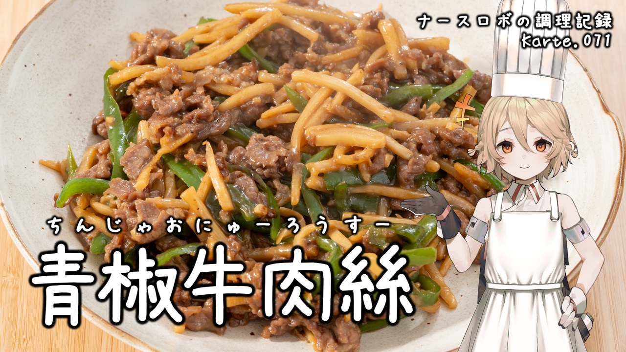 Part71はチンジャオロウスーの牛肉バージョン、青椒牛肉絲です!<br>食用の重曹を使ってぷりぷりとした牛肉に仕上げます。<br>アレンジも効きやすく、ご飯もお酒も進む味。<br>皆さんも是非作ってみてくださいね。<br><br>音声: VOICEVOX:ナースロボ_タイプT<br>立ち絵: 捨て犬A<br>イラスト: いらすとや<br>SE: otologic, 効果音ラボ<br>BGM: BGMer<br /><br>[各種リンク]<br>ニコニコ動画: <a href="http://nicovideo.jp/user/130153578" target="_blank" rel="noopener nofollow">http://nicovideo.jp/user/130153578</a><br>YouTubeメイン(料理): <a href="http://youtube.com/@cooking25euph" target="_blank" rel="noopener nofollow">http://youtube.com/@cooking25euph</a><br>YouTubeサブ(料理以外): <a href="https://youtube.com/@sub25euph" target="_blank" rel="noopener nofollow">https://youtube.com/@sub25euph</a><br>X (twitter): <a href="https://twitter.com/nico25euph" target="_blank" rel="noopener nofollow">https://twitter.com/nico25euph</a><br>Bluesky: <a href="http://nico25euph.bsky.social" target="_blank" rel="noopener nofollow">http://nico25euph.bsky.social</a><br>TikTok: <a href="http://tiktok.com/@nico25euph" target="_blank" rel="noopener nofollow">http://tiktok.com/@nico25euph</a>