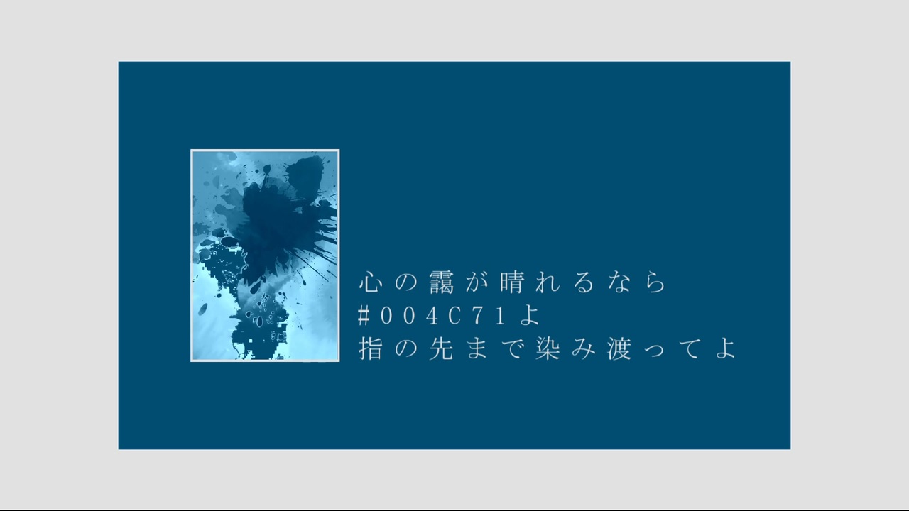 <strong>安らぎたい時に聴く曲。</strong><br><br>◇歌唱◇<br> 初音ミク<br><br>◇作曲・動画◇<br> グラスエイト <a href="https://twitter.com/glass_eight" target="_blank" rel="noopener nofollow">https://twitter.com/glass_eight</a><br><br>◇オフボーカル◇<br> <a href="https://x.gd/vTv4Xt" target="_blank" rel="noopener nofollow">https://x.gd/vTv4Xt</a><br><br>◇歌詞◇<br><br>凍晴、空を駆ける<br>北からの風が<br>頬辺を突き刺した<br>ポケットに手を逃して<br>温まったカイロに<br>目を閉じ、息をついて<br>握りしめた<br><br>時の砂が満ちるまで<br>貴方の傍に在りたいだけ<br>心の靄が晴れるなら<br>藍色よ指の先まで染み渡ってよ<br><br>一人きりは永くて<br>安息の場所で<br>永遠と見違えた<br>だが、それでも不安が拭いきれなくて<br>誰かに会いたくなる<br>空を仰ぐ<br><br>陽の光が当たるまで<br>赤い隙間を埋めたいだけ<br>見えない傷が癒えるなら<br>藍色よまだ掠れないで<br>時の砂が満ちるまで<br>貴方の傍に在りたいだけ<br>心の靄が晴れたなら<br>藍色よ道の先まで染め上げてよ<br>