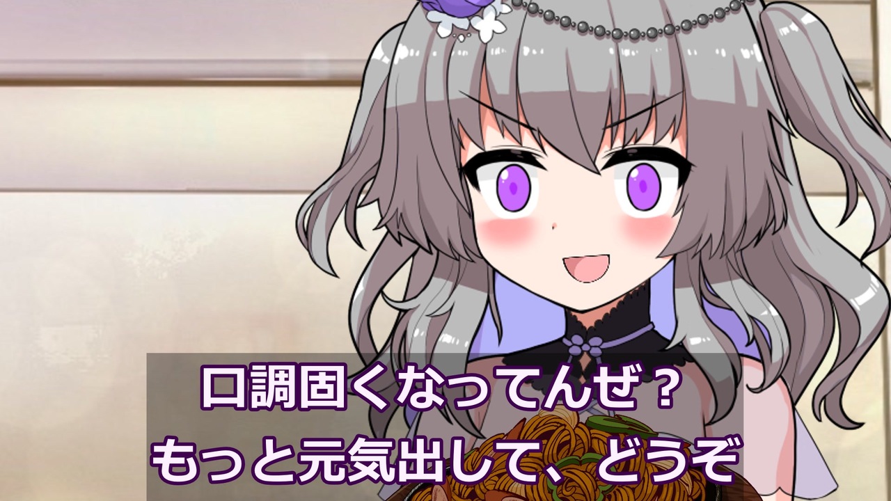 ようやく食事機能が追加されました<br>(頬張って食べてる姿が幼稚園児みたいで可愛くて仕方がない)<br><br>使用ソフト:VOICEVOX:WhiteCUL VOICEVOX:もち子(cv 明日葉よもぎ)<br>VOICEVOX:冥鳴ひまり レプリボイス:足立レイ Otologic<br>効果音ラボ VSQ plus+ AIPICT(<a href="https://aipict.com/)" target="_blank" rel="noopener nofollow">https://aipict.com/)</a><br>みんちりえ( <a href="https://min-chi.material.jp/" target="_blank" rel="noopener nofollow">https://min-chi.material.jp/</a> )<br><br>使用楽曲<br>Let’s Cooking 作:こっけ<br>スーパーでお買い物 作:カピバラっ子<br><br><a href="https://www.nicovideo.jp/watch/sm44521888" class="watch">sm44521888</a>←前 次→<a href="https://www.nicovideo.jp/watch/sm44574407" class="watch">sm44574407</a> 雪ちゃん(後輩)シリーズ→<a href="https://www.nicovideo.jp/mylist/75323148" target="_blank" rel="noopener">mylist/75323148</a><br>何か質問等ございましたらこちらへ⇒<a href="https://twitter.com/musiitakamaboko" target="_blank" rel="noopener nofollow">https://twitter.com/musiitakamaboko</a><br>ボイボ・ボイロ劇場(色々なの)→<a href="https://www.nicovideo.jp/mylist/75893506" target="_blank" rel="noopener">mylist/75893506</a> 単発ゲーム実況→<a href="https://www.nicovideo.jp/mylist/76510227" target="_blank" rel="noopener">mylist/76510227</a><br>騒音3人組実況→<a href="https://www.nicovideo.jp/mylist/76131940" target="_blank" rel="noopener">mylist/76131940</a> ゆっくり昔ばなし→<a href="https://www.nicovideo.jp/mylist/74203390" target="_blank" rel="noopener">mylist/74203390</a><br>ネタ動画→<a href="https://www.nicovideo.jp/mylist/74510113" target="_blank" rel="noopener">mylist/74510113</a> 苦行ゲーずんだもん→<a href="https://www.nicovideo.jp/mylist/74914465" target="_blank" rel="noopener">mylist/74914465</a><br>タルコフ奮闘記→<a href="https://www.nicovideo.jp/mylist/75100736" target="_blank" rel="noopener">mylist/75100736</a> マイクラゆっくり実況→<a href="https://www.nicovideo.jp/mylist/74492386" target="_blank" rel="noopener">mylist/74492386</a>