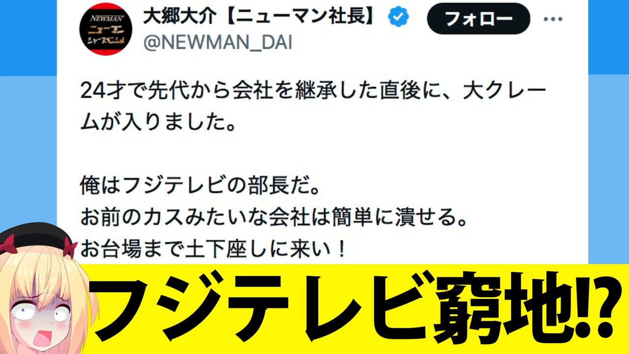 【今回の記事】 <a href="https://www.paurach.com/2025011410039/" target="_blank" rel="noopener nofollow">https://www.paurach.com/2025011410039/</a> <br>【引用元】<a href="https://x.com/NEWMAN_DAI/status/1876841742269641140" target="_blank" rel="noopener nofollow">https://x.com/NEWMAN_DAI/status/1876841742269641140</a><br />【サブチャンネル】<a href="https://www.youtube.com/channel/UCNeJoEWLt0jeZ0n5lDFalJg?sub_confirmation=1" target="_blank" rel="noopener nofollow">https://www.youtube.com/channel/UCNeJoEWLt0jeZ0n5lDFalJg?sub_confirmation=1</a> <br><br>【素材など、よくお世話になっているサイト(敬称略)】<br>BGMer <a href="https://bgmer.net" target="_blank" rel="noopener nofollow">https://bgmer.net</a><br>いらすとや <a href="https://www.irasutoya.com/" target="_blank" rel="noopener nofollow">https://www.irasutoya.com/</a><br>イラストAC <a href="https://www.ac-illust.com/" target="_blank" rel="noopener nofollow">https://www.ac-illust.com/</a><br>photoAC <a href="https://www.photo-ac.com/" target="_blank" rel="noopener nofollow">https://www.photo-ac.com/</a><br>効果音ラボ <a href="https://soundeffect-lab.info/" target="_blank" rel="noopener nofollow">https://soundeffect-lab.info/</a><br>DOVA-SYNDROME <a href="https://dova-s.jp/" target="_blank" rel="noopener nofollow">https://dova-s.jp/</a><br>甘茶の音楽工房 <a href="http://amachamusic.chagasi.com/index.html" target="_blank" rel="noopener nofollow">http://amachamusic.chagasi.com/index.html</a><br>魔王魂 <a href="https://maoudamashii.jokersounds.com/" target="_blank" rel="noopener nofollow">https://maoudamashii.jokersounds.com/</a><br>ニコニ・コモンズ <a href="https://commons.nicovideo.jp/" target="_blank" rel="noopener nofollow">https://commons.nicovideo.jp/</a><br><br>★BGM★<br>Happy Smile Paura - Music by Mixtery<br><a href="https://mix-mastery.stores.jp" target="_blank" rel="noopener nofollow">https://mix-mastery.stores.jp</a><br> ※本動画ではパウラちゃんねる専用BGMを使用しています。 <br><br>#パウラちゃんねる <br><br>当チャンネルはAmazon.co.jpを宣伝しリンクすることによって紹介料を獲得できる手段を提供することを目的に設定されたアフィリエイトプログラムである、Amazonアソシエイト・プログラムの参加者です。