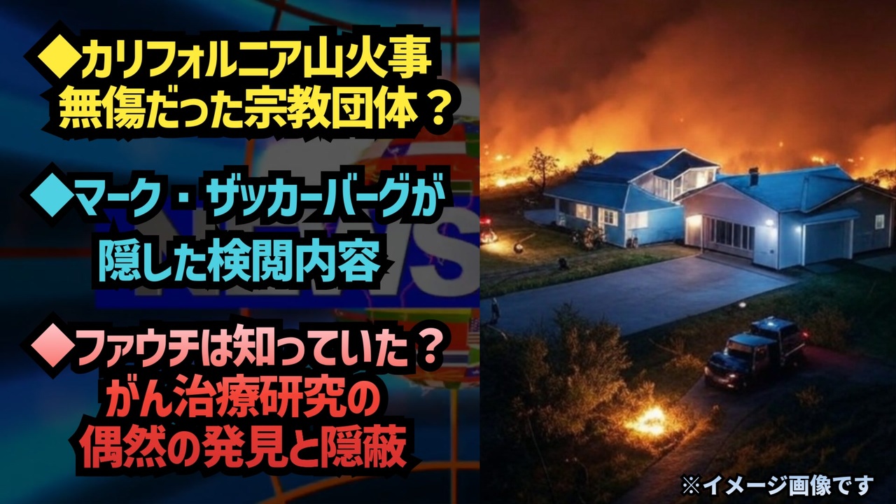 カリフォルニアにあるサイエントロジー教会の村はこうなってるんですよ。コレで全ておわかりですよね?<br><a href="https://x.gd/mRKb7" target="_blank" rel="noopener nofollow">https://x.gd/mRKb7</a><br><br><br>マーク・ザッカーバーグがフェイスブックで検閲(言論統制)していた内容が明らかに<br><br>・自然免疫がある<br><br>・ビタミンDは免疫系を助ける<br><br>・ワクチンは実験的なもの<br><br>・ワクチンは危険<br><br>・ワクチンは効果なし<br><br>・イベルメクチンはコロナに有効<br><br>・マスクは効果無し <br><br>・ロックダウンは効果なし<br><br>・アメリカの実験室から持ち込まれた<br><br>・PCR発明者は特定に使うなと言った<br><a href="https://x.gd/uI1Cy" target="_blank" rel="noopener nofollow">https://x.gd/uI1Cy</a><br><br><br>「ある女性科学者が、がんをマウスに注射して研究をしていたそうです。そのマウスたちが腸内寄生虫に感染してしまい、研究が危機にさらされました。そのとき彼女は、フェンベンダゾールという薬を使って寄生虫を治療しました。すると、驚くことに、マウスのがんまで治ってしまったのです。」<br><br>ファウチ博士はこのことを知っています<br><a href="https://x.gd/ZcQsU" target="_blank" rel="noopener nofollow">https://x.gd/ZcQsU</a><br><br><br>「ケビン・マッカーナン氏は、デル・ビッグツリー氏に対し、ファイザー製のmRNAコロナワクチンの一部のバイアルを検査したところ、『5000億個のSV40プロモーター』が含まれていたと語りました。」<br><a href="https://x.gd/RMxBV" target="_blank" rel="noopener nofollow">https://x.gd/RMxBV</a><br><br><br>元FBI長官は、9/11は米国政府の最高レベルで計画されたものであると認めた<br><br>オクラホマシティ爆破事件、JFK、RFK暗殺、世界貿易センター、軍、CiA、政治家による児童性的人身⚫︎買はすべて大規模な隠蔽工作<br><br>飛行機がビルを倒壊させたのではない<br>意図的に爆破された<br><br>これは、米国領土内での米国人に対する米国政フによるテロ攻撃だった <br><a href="https://x.gd/aJlZi" target="_blank" rel="noopener nofollow">https://x.gd/aJlZi</a><br><br><br>東北有志医師の会x国民連合 合同年末スペシャルより<br><br>HPVワクチンの頃からDNA汚染が存在していた。当時の医療従事者、ジャーナリストは知っていた。<br>①<a href="https://x.gd/ud5M0" target="_blank" rel="noopener nofollow">https://x.gd/ud5M0</a><br>②<a href="https://x.gd/IJyRD" target="_blank" rel="noopener nofollow">https://x.gd/IJyRD</a><br><br><br>ワクチン<br>SV40<br>mRNAワクチン<br>HPVワクチン<br>DNA汚染<br>フェンベンダゾール<br>9.11<br>サイエントロジー<br>カリフォルニア山火事<br>検閲<br>マーク・ザッカーバーグ<br><br><br />著作権、肖像権に配慮して作成しております。<br><br>◆気になったニュースの台本!?<br>メモ代わりに作った台本をそのままあげてます<br><a href="https://keiichiro8140.hatenablog.com/." target="_blank" rel="noopener nofollow">https://keiichiro8140.hatenablog.com/.</a><br><br><br>ここからはシリーズ紹介<br><br><br>◆ ワクチン解毒・デトックス<br><a href="https://x.gd/fZweg" target="_blank" rel="noopener nofollow">https://x.gd/fZweg</a><br><br>◆ウイリアム・マキス博士のがん治療(イベルメクチン・フェンベンダゾール等)<br><a href="https://x.gd/AtFYS" target="_blank" rel="noopener nofollow">https://x.gd/AtFYS</a><br><br>◆予防接種健康被害救済制度<br><a href="https://x.gd/0xK9x" target="_blank" rel="noopener nofollow">https://x.gd/0xK9x</a><br><br>◆気になったニュース #1501~<br><br>◆ 【ショートver】気になったニュース<br><a href="https://x.gd/7MxXC" target="_blank" rel="noopener nofollow">https://x.gd/7MxXC</a><br><br>◆ 気になったニュース #1001~<br><a href="https://x.gd/Lp8gv" target="_blank" rel="noopener nofollow">https://x.gd/Lp8gv</a><br><br>◆ 気になったニュース #501~<br><a href="https://x.gd/EmbS4" target="_blank" rel="noopener nofollow">https://x.gd/EmbS4</a><br><br>◆ 気になったニュース #1~#500<br><a href="https://x.gd/uPhNb" target="_blank" rel="noopener nofollow">https://x.gd/uPhNb</a><br><br>◆ X(旧Twitter)・テレグラムで気になった情報<br><a href="https://x.gd/YG6FT" target="_blank" rel="noopener nofollow">https://x.gd/YG6FT</a><br><br>◆ 日比谷5万人パレードデ⚪生放送アーカイブ動画<br><a href="https://x.gd/3CHJv" target="_blank" rel="noopener nofollow">https://x.gd/3CHJv</a><br><br>◆日比谷5万人パレード⚪モのマイリスト作ってみました<br><a href="https://nico.ms/mylist/76828848?ref=sp_other" target="_blank" rel="noopener nofollow">https://nico.ms/mylist/76828848?ref=sp_other</a><br><br>◆3.30 令和の百姓⚪⚪<br><a href="https://www.nicovideo.jp/series/511791?ref=garage_share_other" target="_blank" rel="noopener nofollow">https://www.nicovideo.jp/series/511791?ref=garage_share_other</a><br><br>◆ 及川幸久さんの【XNEWS】シリーズ<br><a href="https://x.gd/3k78K" target="_blank" rel="noopener nofollow">https://x.gd/3k78K</a><br><br>◆これまでの動画<a href="https://x.gd/sPXoJ" target="_blank" rel="noopener nofollow">https://x.gd/sPXoJ</a><br><br>◆もしも(BAN)の時のためのマイリンク集<a href="https://lit.link/K-16_News44" target="_blank" rel="noopener nofollow">https://lit.link/K-16_News44</a><br><br>