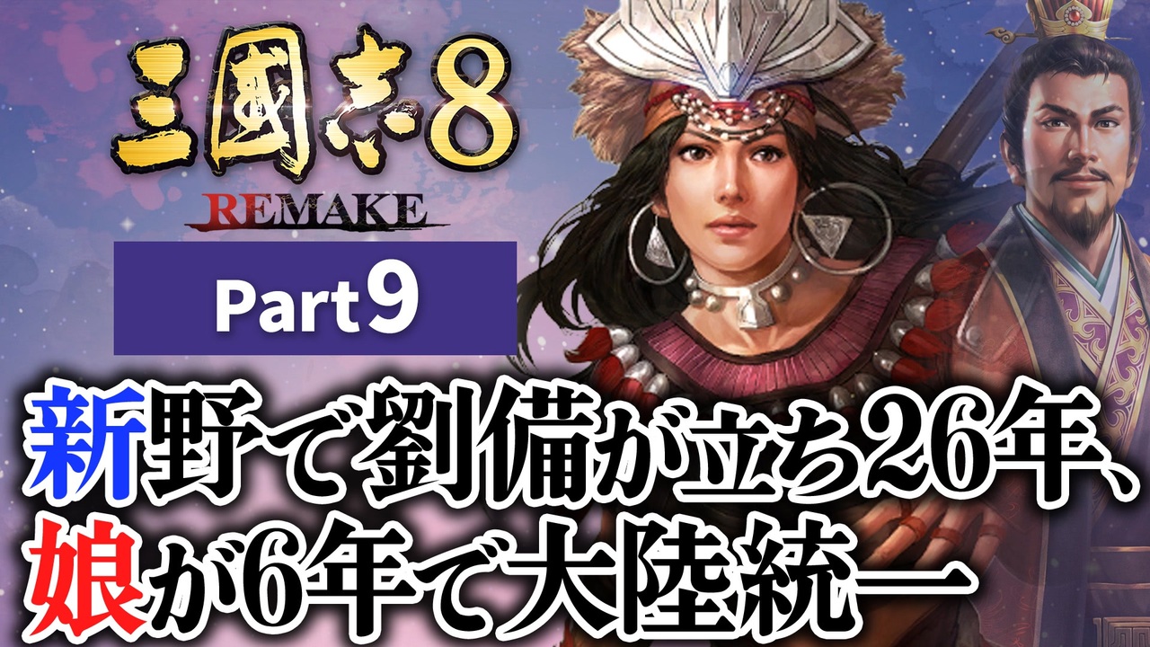 次:part10 ▶ <a href="https://www.nicovideo.jp/watch/sm44553996" class="watch">sm44553996</a><br>前:part08 ▶<a href="https://www.nicovideo.jp/watch/sm44532159" class="watch">sm44532159</a><br>最初:先行part1▶<a href="https://www.nicovideo.jp/watch/sm44223701" class="watch">sm44223701</a><br><br>【目次】<br><a href="#" class="seekTime" data-seekTime="0:00" onclick="seekNicoPlayer('#0:00'); return false;">#0:00</a> はじめに <br><a href="#" class="seekTime" data-seekTime="0:30" onclick="seekNicoPlayer('#0:30'); return false;">#0:30</a> あらすじ茶番 <br><a href="#" class="seekTime" data-seekTime="4:30" onclick="seekNicoPlayer('#4:30'); return false;">#4:30</a> プレイ本編<br><br>※あれ、投稿が遅いぞと感じられた方は、<br>下記にあるアシェのXにて報告をしていますので、<br>そちらをご確認ください。<br>――――――――――――――――――――――――――――――――――――――<br><『三國志8 REMAKE』製品情報> <br>対応ハード :PlayStation®5/PlayStation®4/Nintendo Switch™/Windows®(Steam®) <br>発売日 :2024年10月24日 <br>ジャンル :歴史シミュレーションゲーム <br>公式サイト <a href="https://www.gamecity.ne.jp/sangokushi8-re/" target="_blank" rel="noopener nofollow">https://www.gamecity.ne.jp/sangokushi8-re/</a><br><br> ©2001-2024 コーエーテクモゲームス All rights reserved.<br>――――――――――――――――――――――――――――――――――――――<br>BGM(チャンネル用エンディングテーマ):若林タカツグ<br>▶ X:<a href="https://twitter.com/cocoa2448" target="_blank" rel="noopener nofollow">https://twitter.com/cocoa2448</a><br>▶ youtube:<a href="https://youtube.com/@Takatsugu" target="_blank" rel="noopener nofollow">https://youtube.com/@Takatsugu</a><br>――――――――――――――――――――――――――――――――――――――<br>⚒️ 使用アプリ・ツール <br>⚒️ゆっくりムービーメーカー4<br>――――――――――――――――――――――――――――――――――――――<br>□ SNS □<br>▶ X(アシェ):<a href="https://twitter.com/AcierRoi" target="_blank" rel="noopener nofollow">https://twitter.com/AcierRoi</a><br>▶ X(レシル):<a href="https://twitter.com/reciru" target="_blank" rel="noopener nofollow">https://twitter.com/reciru</a><br>――――――――――――――――――――――――――――――――――――――<br>#三國志 #三国志 #三國志8リメイク
