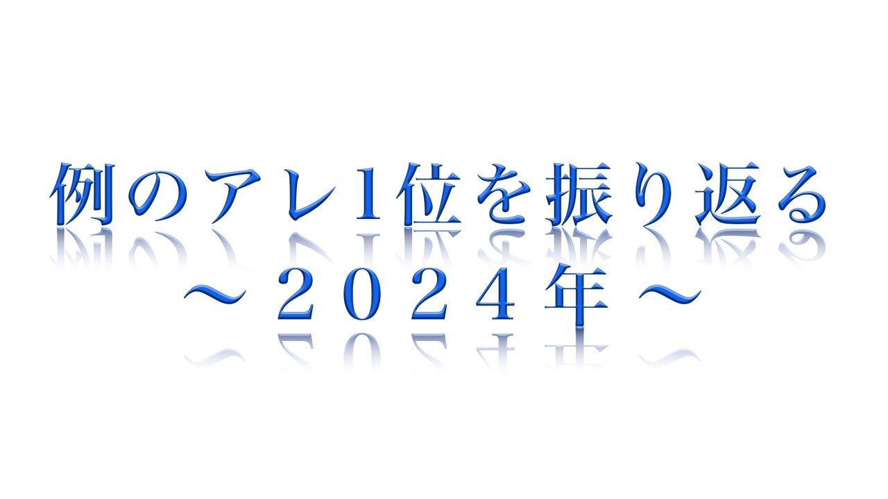 初投稿です。かつてこのシリーズを作っていたゴミカスクソガイジニート(<a href="https://www.nicovideo.jp/user/1155018" target="_blank" rel="noopener">user/1155018</a>)兄貴とは別人<br>過去ログファイルがない以上集計が面倒だったので、今のところ2025年度以降の制作は考えていません。<br><br>1位リスト <a href="https://www.nicovideo.jp/mylist/77510779" target="_blank" rel="noopener">mylist/77510779</a><br><br>2023 ?<br>2022 ?<br>2021 <a href="https://www.nicovideo.jp/watch/sm39832606" class="watch">sm39832606</a><br>2020 <a href="https://www.nicovideo.jp/watch/sm38051332" class="watch">sm38051332</a><br>2019 <a href="https://www.nicovideo.jp/watch/sm36161623" class="watch">sm36161623</a><br>2018 <a href="https://www.nicovideo.jp/watch/sm34408209" class="watch">sm34408209</a><br>2017 <a href="https://www.nicovideo.jp/watch/sm32524855" class="watch">sm32524855</a><br>2016 <a href="https://www.nicovideo.jp/watch/sm32507365" class="watch">sm32507365</a><br>2015 <a href="https://www.nicovideo.jp/watch/sm27932674" class="watch">sm27932674</a><br><br>いいねボタンのメッセージに2024年の総評を書きました。<br><br>前回動画までとの違い:<br>1. ランキング過去ログファイルが昨年から提供廃止になったので、ニコニコチャートとニコログからデータを拝借<br>2. 1の関係で、タグ別ランキングなどは廃止<br>3. ジャンル全体ランキング・投稿者名を記載<br>4. ランキング集計時点で固定していてもいなくても「例のアレ」タグがついていて、かつ「その他」ジャンルの動画であることが選定基準。この点以外の基準は前任者のものと同じはず<br>5. リアルタイムで集計していなかったので削除・非公開動画あり<br><br>Q. この動画は1位取ってたんじゃ?<br>A. 集計時点が0時なので、それ以外の時刻で1位を取っているかどうかについては考慮していません。<br>Q. 元動画が見れない<br>A. 他のサイトや再投稿からいくつか引っ張ってきているので、その場合はGoogle検索してください。<br><br><a target="_blank" href="https://qa.nicovideo.jp/faq/show/19424?site_domain=default" style="font-size: 13px;color: #657586; text-decoration: underline; line-height: 1.4">この動画は投稿者によって修正されました</a>