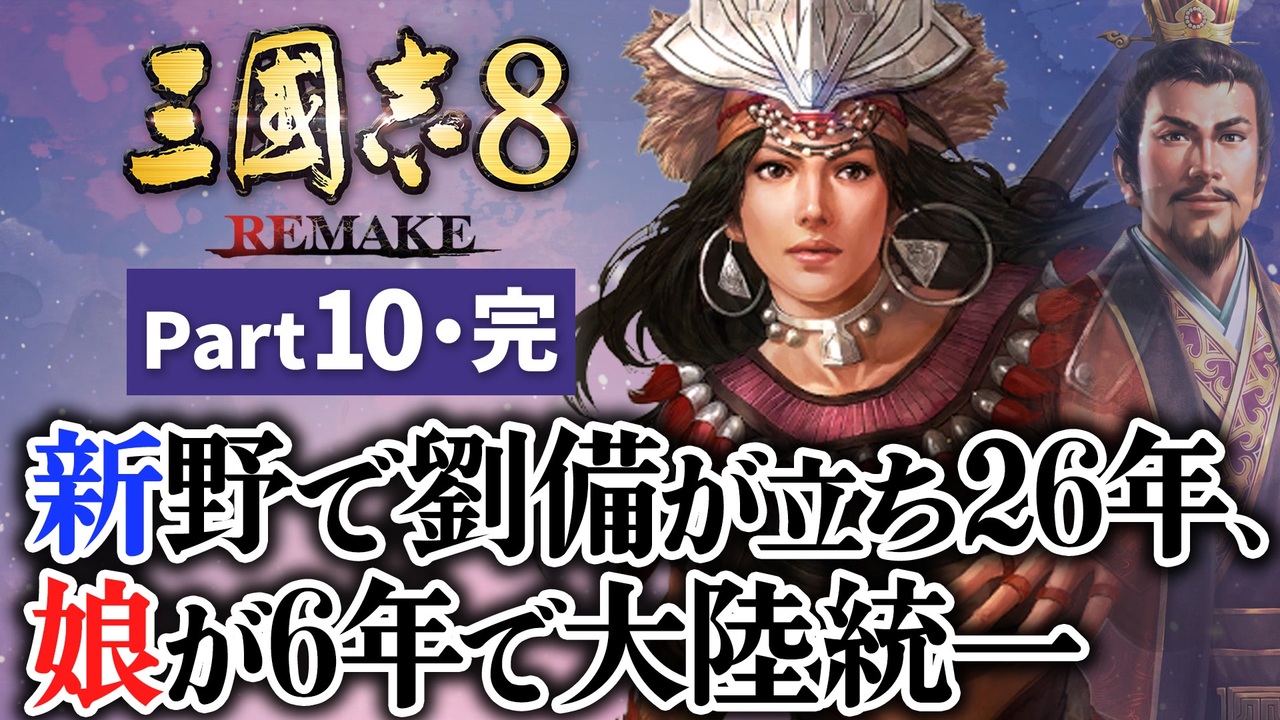 次:総集編▶<a href="https://www.nicovideo.jp/watch/sm44561575" class="watch">sm44561575</a><br>前:part09 ▶<a href="https://www.nicovideo.jp/watch/sm44542836" class="watch">sm44542836</a><br>最初:先行part1▶<a href="https://www.nicovideo.jp/watch/sm44223701" class="watch">sm44223701</a><br><br>【目次】<br><a href="#" class="seekTime" data-seekTime="0:00" onclick="seekNicoPlayer('#0:00'); return false;">#0:00</a> はじめに <br><a href="#" class="seekTime" data-seekTime="0:30" onclick="seekNicoPlayer('#0:30'); return false;">#0:30</a> プレイ本編 <br><a href="#" class="seekTime" data-seekTime="19:05" onclick="seekNicoPlayer('#19:05'); return false;">#19:05</a> ストーリー茶番<br><br>※あれ、投稿が遅いぞと感じられた方は、<br>下記にあるアシェのXにて報告をしていますので、<br>そちらをご確認ください。<br>――――――――――――――――――――――――――――――――――――――<br><『三國志8 REMAKE』製品情報> <br>対応ハード :PlayStation®5/PlayStation®4/Nintendo Switch™/Windows®(Steam®) <br>発売日 :2024年10月24日 <br>ジャンル :歴史シミュレーションゲーム <br>公式サイト <a href="https://www.gamecity.ne.jp/sangokushi8-re/" target="_blank" rel="noopener nofollow">https://www.gamecity.ne.jp/sangokushi8-re/</a><br><br> ©2001-2024 コーエーテクモゲームス All rights reserved.<br>――――――――――――――――――――――――――――――――――――――<br>BGM(チャンネル用エンディングテーマ):若林タカツグ<br>▶ X:<a href="https://twitter.com/cocoa2448" target="_blank" rel="noopener nofollow">https://twitter.com/cocoa2448</a><br>▶ youtube:<a href="https://youtube.com/@Takatsugu" target="_blank" rel="noopener nofollow">https://youtube.com/@Takatsugu</a><br>――――――――――――――――――――――――――――――――――――――<br>⚒️ 使用アプリ・ツール <br>⚒️ゆっくりムービーメーカー4<br>――――――――――――――――――――――――――――――――――――――<br>□ SNS □<br>▶ X(アシェ):<a href="https://twitter.com/AcierRoi" target="_blank" rel="noopener nofollow">https://twitter.com/AcierRoi</a><br>▶ X(レシル):<a href="https://twitter.com/reciru" target="_blank" rel="noopener nofollow">https://twitter.com/reciru</a><br>――――――――――――――――――――――――――――――――――――――<br>#三國志 #三国志 #三國志8リメイク