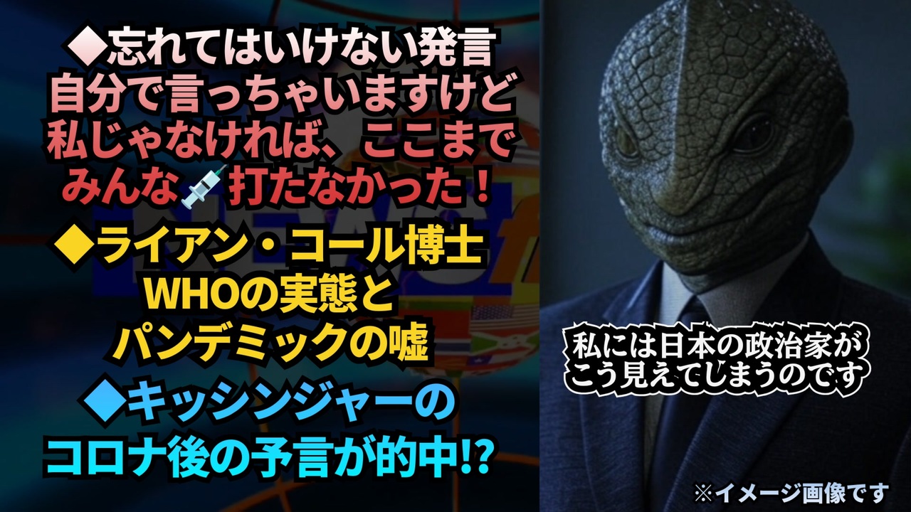 忘れてはいけない発言<br>自分で言っちゃいますけど 私じゃなければ、ここまでみんな打たなかった!<br><br>ワクチン行政を自画自賛「※※※※(ワクチン担当大臣)でなかったら…」 産経ニュース<br>2021/09/12 <br><br><a href="https://x.com/TsutomuIkarashi/status/1880308749128393162?t=fg8cjqVI-VKTONszreM_gA&s=19" target="_blank" rel="noopener nofollow">https://x.com/TsutomuIkarashi/status/1880308749128393162?t=fg8cjqVI-VKTONszreM_gA&s=19</a><br><br><a href="https://www.sankei.com/article/20210912-52YDVN4TYBJ43JD57YYBEHQHIA/" target="_blank" rel="noopener nofollow">https://www.sankei.com/article/20210912-52YDVN4TYBJ43JD57YYBEHQHIA/</a><br><br><br>ライアン・コール博士は、WHOがビル・ゲイツ財団や製薬業界、中国共産党などの影響を受けていると批判。サル痘のパンデミック宣言は不必要な恐怖を煽るものであり、多くの国では脅威にならないと主張する。莫大な資金が北欧の製薬会社の天然痘ワクチンに流れ、無駄に使われていると指摘。人々を恐怖に閉じ込める心理作戦に対抗し、健康的な生活を送り、自立した思考を持つべきだと訴えた。<br><a href="https://x.com/newstart_2024/status/1879201895773806637?t=GJGd29rrhBOFl7gcw4CdeA&s=19" target="_blank" rel="noopener nofollow">https://x.com/newstart_2024/status/1879201895773806637?t=GJGd29rrhBOFl7gcw4CdeA&s=19</a><br><br><br>キッシンジャー 「コロナ後の 新世界秩序の確立に失敗した場合、世界が火の海になる可能性がある」<br><br>キッシンジャーの予告通りか?<br><a href="https://x.com/hima03hima11/status/1878010594605117525?t=hAh3c8hayzQNQXfr2mLcbA&s=19" target="_blank" rel="noopener nofollow">https://x.com/hima03hima11/status/1878010594605117525?t=hAh3c8hayzQNQXfr2mLcbA&s=19</a><br><br><br><br>WHO ライアンコール博士 ヘンリー・キッシンジャー 日本のワクチン政策 新型コロナウイルス パンデミック ビタミンD 免疫力 人生を楽しむ 人を愛する 自分の頭で考える <br><br><br />著作権、肖像権に配慮して作成しております。<br><br>◆気になったニュースの台本!?<br>メモ代わりに作った台本をそのままあげてます<br><a href="https://keiichiro8140.hatenablog.com/." target="_blank" rel="noopener nofollow">https://keiichiro8140.hatenablog.com/.</a><br><br><br>ここからはシリーズ紹介<br><br><br>◆ ワクチン解毒・デトックス<br><a href="https://x.gd/fZweg" target="_blank" rel="noopener nofollow">https://x.gd/fZweg</a><br><br>◆ウイリアム・マキス博士のがん治療(イベルメクチン・フェンベンダゾール等)<br><a href="https://x.gd/AtFYS" target="_blank" rel="noopener nofollow">https://x.gd/AtFYS</a><br><br>◆予防接種健康被害救済制度<br><a href="https://x.gd/0xK9x" target="_blank" rel="noopener nofollow">https://x.gd/0xK9x</a><br><br>◆気になったニュース #1501~<br><br>◆ 【ショートver】気になったニュース<br><a href="https://x.gd/7MxXC" target="_blank" rel="noopener nofollow">https://x.gd/7MxXC</a><br><br>◆ 気になったニュース #1001~<br><a href="https://x.gd/Lp8gv" target="_blank" rel="noopener nofollow">https://x.gd/Lp8gv</a><br><br>◆ 気になったニュース #501~<br><a href="https://x.gd/EmbS4" target="_blank" rel="noopener nofollow">https://x.gd/EmbS4</a><br><br>◆ 気になったニュース #1~#500<br><a href="https://x.gd/uPhNb" target="_blank" rel="noopener nofollow">https://x.gd/uPhNb</a><br><br>◆ X(旧Twitter)・テレグラムで気になった情報<br><a href="https://x.gd/YG6FT" target="_blank" rel="noopener nofollow">https://x.gd/YG6FT</a><br><br>◆ 日比谷5万人パレードデ⚪生放送アーカイブ動画<br><a href="https://x.gd/3CHJv" target="_blank" rel="noopener nofollow">https://x.gd/3CHJv</a><br><br>◆日比谷5万人パレード⚪モのマイリスト作ってみました<br><a href="https://nico.ms/mylist/76828848?ref=sp_other" target="_blank" rel="noopener nofollow">https://nico.ms/mylist/76828848?ref=sp_other</a><br><br>◆3.30 令和の百姓⚪⚪<br><a href="https://www.nicovideo.jp/series/511791?ref=garage_share_other" target="_blank" rel="noopener nofollow">https://www.nicovideo.jp/series/511791?ref=garage_share_other</a><br><br>◆ 及川幸久さんの【XNEWS】シリーズ<br><a href="https://x.gd/3k78K" target="_blank" rel="noopener nofollow">https://x.gd/3k78K</a><br><br>◆これまでの動画<a href="https://x.gd/sPXoJ" target="_blank" rel="noopener nofollow">https://x.gd/sPXoJ</a><br><br>◆もしも(BAN)の時のためのマイリンク集<a href="https://lit.link/K-16_News44" target="_blank" rel="noopener nofollow">https://lit.link/K-16_News44</a><br><br>