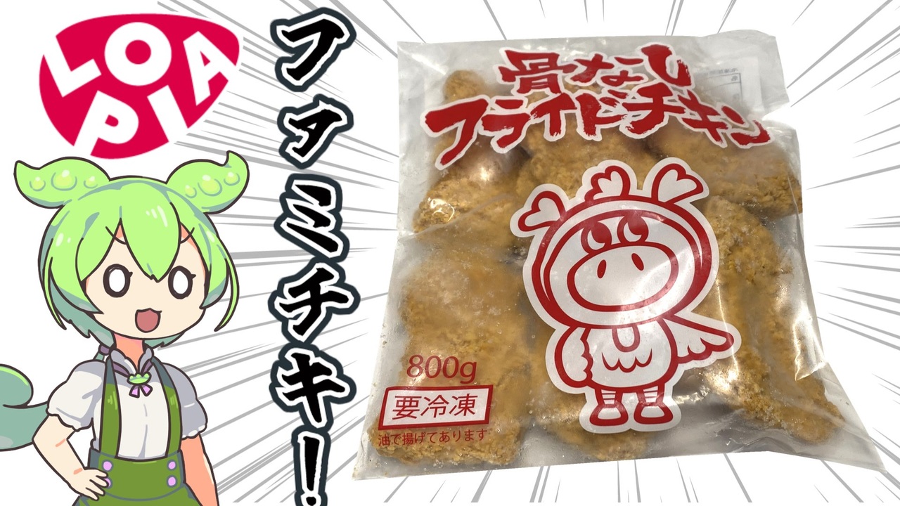ロピアの、冷凍:骨なしフライドチキンです。 <br>800gとビッグサイズ、家庭の冷凍庫ではやや扱いが難しいですが <br>安くて量があります。 気になるお味のほうは… <br><br><br><br>【関連動画】 <br>ファミリーマートのピザまんとファミチキでつくる <br>「ファミチキホットサンド」2024.10.23 <br><a href="https://www.nicovideo.jp/watch/sm44243414" target="_blank" rel="noopener nofollow">https://www.nicovideo.jp/watch/sm44243414</a><br><br>【参考】 <br>株式会社 ロピア<br> <a href="https://lopia.jp/" target="_blank" rel="noopener nofollow">https://lopia.jp/</a><br> OICグループ <br><a href="https://oicgroup.co.jp/" target="_blank" rel="noopener nofollow">https://oicgroup.co.jp/</a> <br>株式会社 ユーラス<br> <a href="https://euras-global.com/" target="_blank" rel="noopener nofollow">https://euras-global.com/</a><br><br>【使用した素材】(※敬称略) <br>(合成音声)VOICEVOX/ずんだもん/春日部つむぎ<br> <a href="https://voicevox.hiroshiba.jp/" target="_blank" rel="noopener nofollow">https://voicevox.hiroshiba.jp/</a> <br>(立ち絵)坂本アヒル <br><a href="https://seiga.nicovideo.jp/seiga/im10788496?track" target="_blank" rel="noopener nofollow">https://seiga.nicovideo.jp/seiga/im10788496?track</a> <br>(楽曲)甘茶の音楽工房/「楽しい麦畑」「フルーツパフェ」「お城の舞踏会」 <br><a href="https://amachamusic.chagasi.co" target="_blank" rel="noopener nofollow">https://amachamusic.chagasi.co</a>