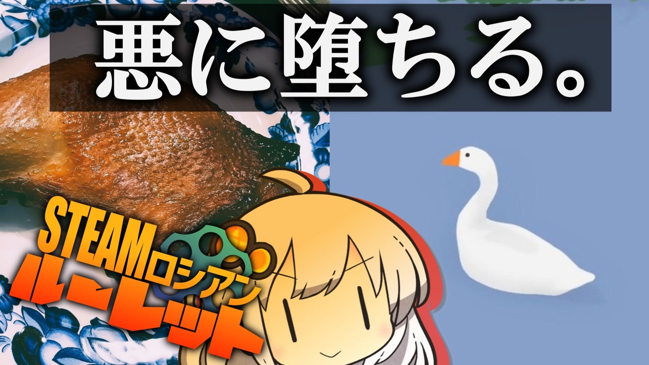 <strong>悪に堕ちる。欲望のために。</strong><br><br><span style="color: #cc0000; font-size: 18px;"><strong>コラボ企画『steamロシアンルーレット』動画</strong></span><br><span style="color: #990000;">企画動画マイリスト</span><a href="https://www.nicovideo.jp/mylist/77509786" target="_blank" rel="noopener">mylist/77509786</a><br><br>開催日:1月24日(金)~1月31日(金)<br>主催:かじき<br>企画参加メンバー(敬称略)<br>AKAK-_-47 <a href="https://www.nicovideo.jp/user/33752635" target="_blank" rel="noopener">user/33752635</a><br>えどきだんすけ<a href="https://www.nicovideo.jp/user/41359372" target="_blank" rel="noopener">user/41359372</a><br>ココアとささみ<a href="https://www.nicovideo.jp/user/91819931" target="_blank" rel="noopener">user/91819931</a><br>しろいろ<a href="https://www.nicovideo.jp/user/122080776" target="_blank" rel="noopener">user/122080776</a><br>なんか物体<a href="https://www.nicovideo.jp/user/630726" target="_blank" rel="noopener">user/630726</a><br>ムギチョコ<a href="https://www.nicovideo.jp/user/392213" target="_blank" rel="noopener">user/392213</a><br>蒸し板かまぼこ<a href="https://www.nicovideo.jp/user/126772119" target="_blank" rel="noopener">user/126772119</a><br><br>steamストアページ<br><a href="https://store.steampowered.com/app/837470/Untitled_Goose_Game/?l=japanese" target="_blank" rel="noopener nofollow">https://store.steampowered.com/app/837470/Untitled_Goose_Game/?l=japanese</a><br><br><br><br>使用楽曲サイト/作曲者様(敬称略)<br>DOVA-SYNDROME <br>魔王魂<br>上海アリス幻樂団<br>効果音ラボ<br>陸上自衛隊HP<br><a href="https://www.mod.go.jp/gsdf/index.html" target="_blank" rel="noopener nofollow">https://www.mod.go.jp/gsdf/index.html</a><br><br>part1集→<a href="https://www.nicovideo.jp/mylist/72155412" target="_blank" rel="noopener">mylist/72155412</a><br><br>松嘩りすく 兄口誘太郎 ディアちゃん クロワちゃん ピエール・クラウン@COEIROINK<br>WhiteCUL ずんだもん 青山龍星 中国うさぎ@VOICEVOX<br>紲星あかり 結月ゆかり 琴葉葵 @A.I.VOICE<br>AquesTalk(通称:ゆっくりボイス)<br><br>youtube<br><a href="https://www.youtube.com/@kajikiCh" target="_blank" rel="noopener nofollow">https://www.youtube.com/@kajikiCh</a><br>ツイッター<br><a href="https://twitter.com/kajiki000" target="_blank" rel="noopener nofollow">https://twitter.com/kajiki000</a><br><br><a target="_blank" href="https://qa.nicovideo.jp/faq/show/19424?site_domain=default" style="font-size: 13px;color: #657586; text-decoration: underline; line-height: 1.4">この動画は投稿者によって修正されました</a>