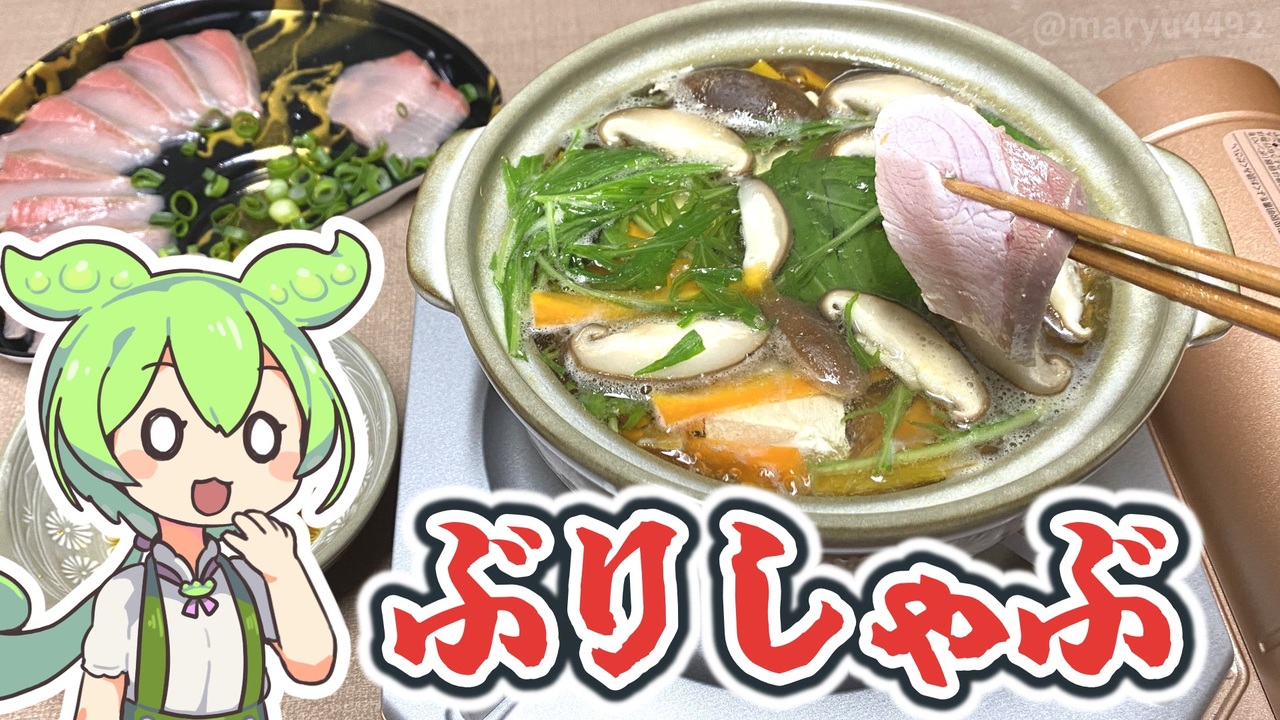冬の味覚と言えばブリ。<br>今回は食べたことがない「ぶりしゃぶ」に挑戦します。<br><br><br><br>【関連動画】 <br>トップバリュの黄色いヤツ「味付けぽん酢(137円)」2023.11.13<br><a href="https://www.nicovideo.jp/watch/sm43009321" target="_blank" rel="noopener nofollow">https://www.nicovideo.jp/watch/sm43009321</a><br><br>【参考】 <br>ひらひら大根のブリしゃぶ(ミツカン)<br> <a href="https://www.mizkan.co.jp/ouchirecipe/recipe/?menu_id=4560" target="_blank" rel="noopener nofollow">https://www.mizkan.co.jp/ouchirecipe/recipe/?menu_id=4560</a> <br>北海道日高産だし昆布(トップバリュ) <br><a href="https://www.topvalu.net/items/detail/4549414661620/" target="_blank" rel="noopener nofollow">https://www.topvalu.net/items/detail/4549414661620/</a> <br>味付けぽん酢(トップバリュ) <br><a href="https://www.topvalu.net/items/detail/4901810892129/" target="_blank" rel="noopener nofollow">https://www.topvalu.net/items/detail/4901810892129/</a> <br>ノンアルコールビールテイスト0.00%(トップバリュ) <br><a href="https://www.topvalu.net/items/detail/4549414652390/" target="_blank" rel="noopener nofollow">https://www.topvalu.net/items/detail/4549414652390/</a> <br>旬のおいしさが1年中味わえる完全養殖“黒瀬ぶり” <br>|前編|天然種苗に依存しないブリ養殖を確立(ニッスイ) <br><a href="https://www.nissui.co.jp/innovative_food_solutions/002.html" target="_blank" rel="noopener nofollow">https://www.nissui.co.jp/innovative_food_solutions/002.html</a> <br>ブリの旬は夏? 最新の養殖技術が変える魚の食べ時 2014.08.29(日本経済新聞) <br><a href="https://www.nikkei.com/article/DGXMZO76227110X20C14A8000000/" target="_blank" rel="noopener nofollow">https://www.nikkei.com/article/DGXMZO76227110X20C14A8000000/</a><br> ブリの旬は冬だけじゃない! 夏でも美味な<br>「完全養殖 黒瀬ぶり」を堪能2024.07.16(dancyu) <br><a href="https://dancyu.jp/read/2024_00008881.html" target="_blank" rel="noopener nofollow">https://dancyu.jp/read/2024_00008881.html</a><br><br>【使用した素材】(※敬称略) <br>(合成音声)VOICEVOX/ずんだもん/四国めたん VOICEPEAK/フリモメン<br> <a href="https://voicevox.hiroshiba.jp/" target="_blank" rel="noopener nofollow">https://voicevox.hiroshiba.jp/</a><br> <a href="https://www.ah-soft.com/voice/" target="_blank" rel="noopener nofollow">https://www.ah-soft.com/voice/</a> <br>(立ち絵1)坂本アヒル <br><a href="https://seiga.nicovideo.jp/seiga/im10788496?track" target="_blank" rel="noopener nofollow">https://seiga.nicovideo.jp/seiga/im10788496?track</a> <br>(立ち絵2)AHS公式サイト <br><a href="https://www.ah-soft.com/" target="_blank" rel="noopener nofollow">https://www.ah-soft.com/</a><br>(楽曲)甘茶の音楽工房/「楽しい麦畑」「フルーツパフェ」「お城の舞踏会」 <br><a href="https://amachamusic.chagasi.co" target="_blank" rel="noopener nofollow">https://amachamusic.chagasi.co</a>